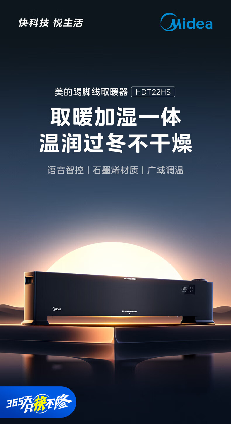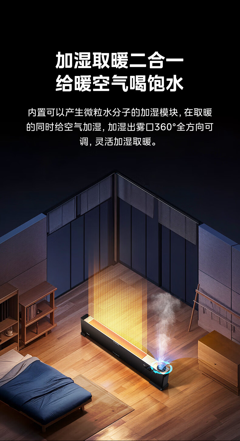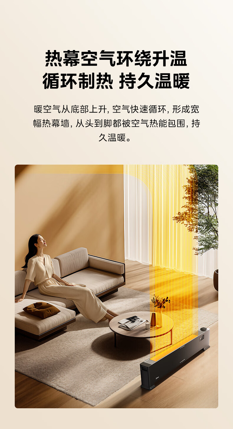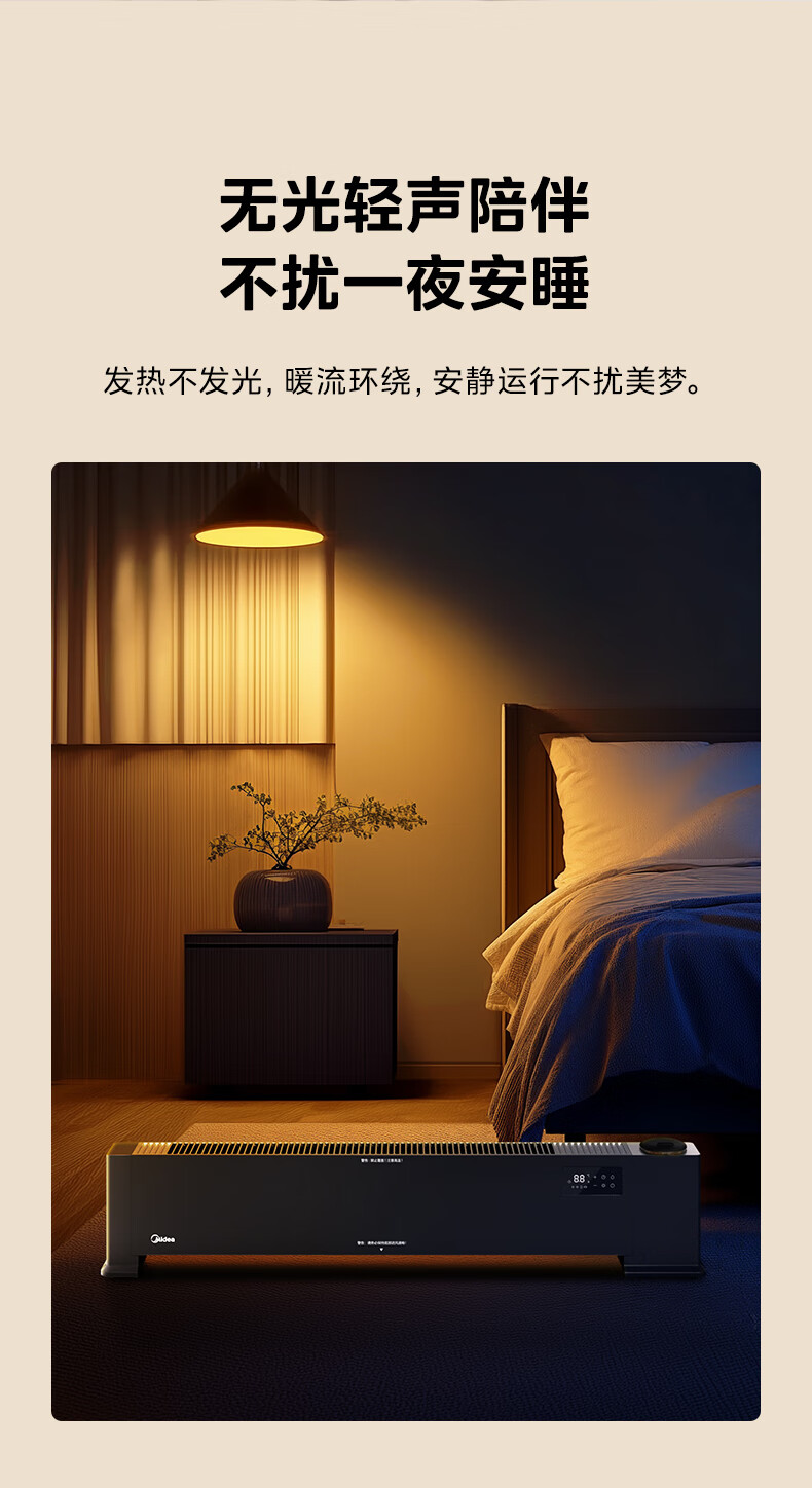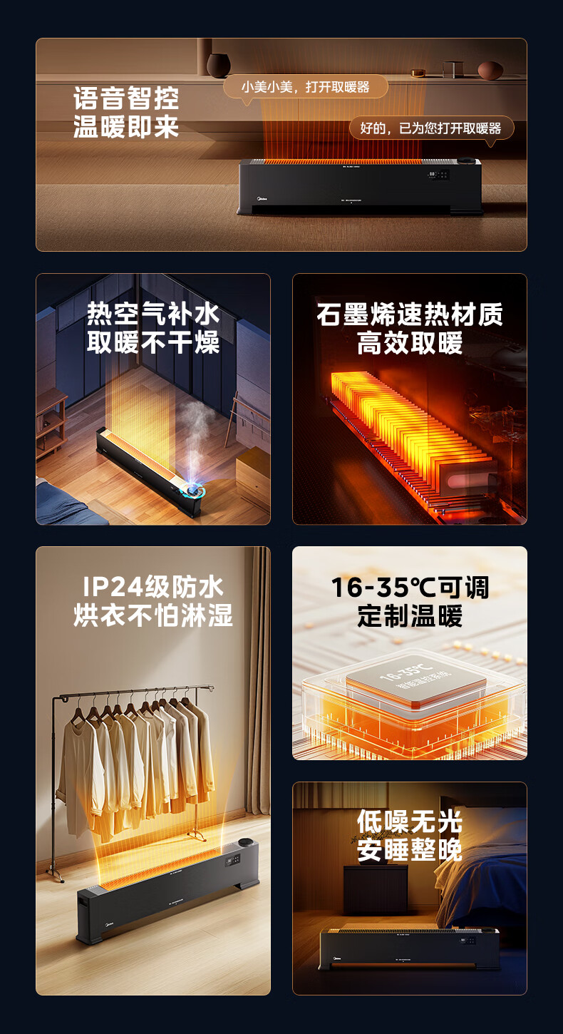 美的(Midea)【语音加湿】石墨烯踢脚线取暖器/家用电热电暖器/浴室电暖气/全屋升温速热烤火炉遥控省电HDT22HS
