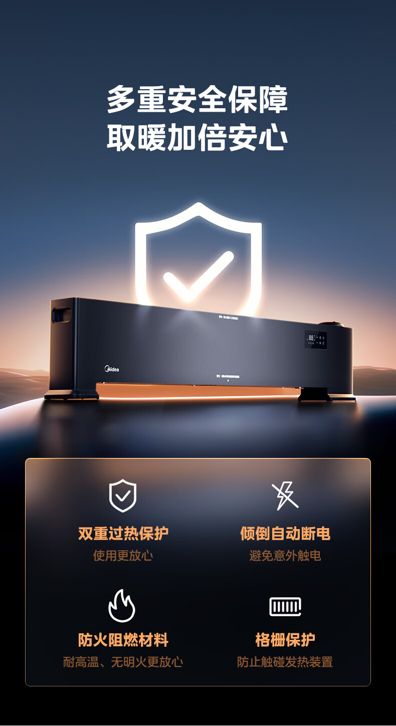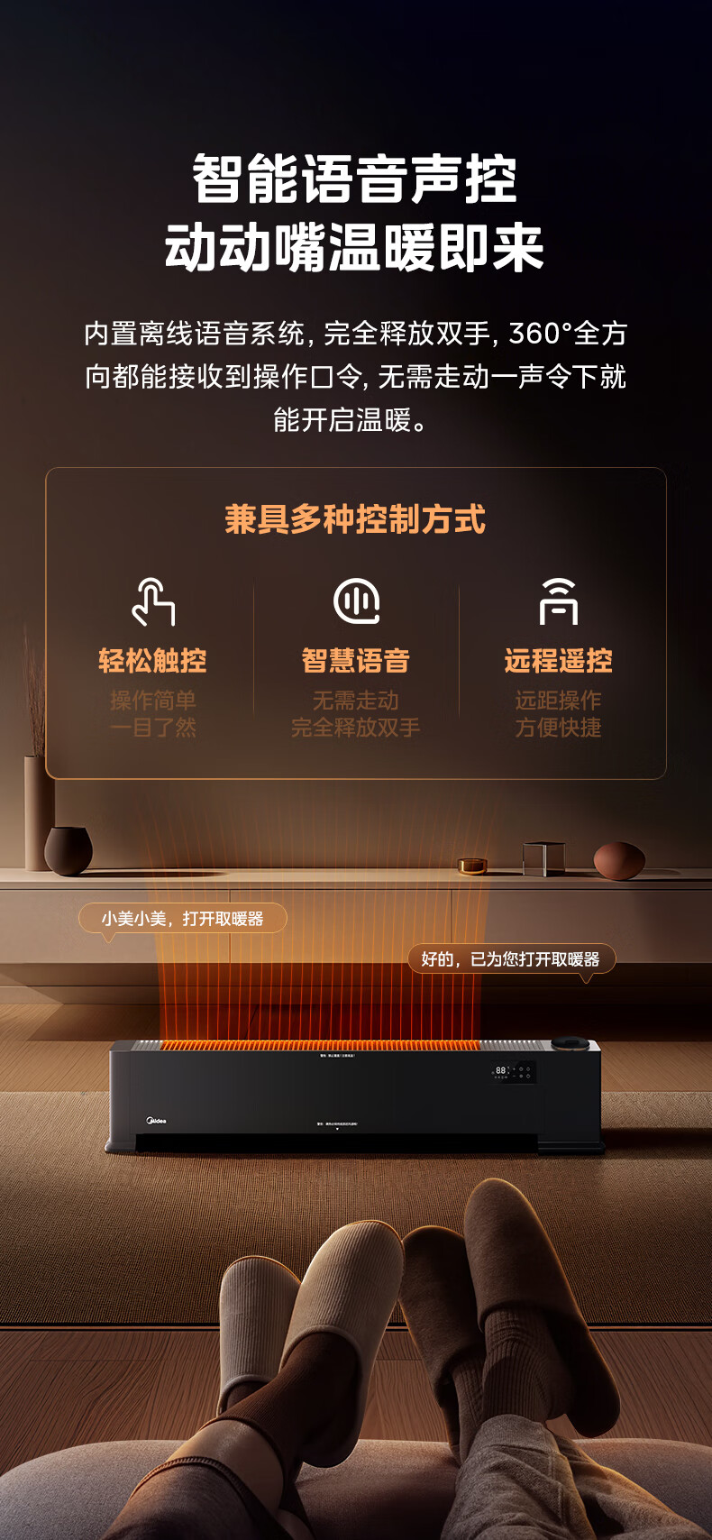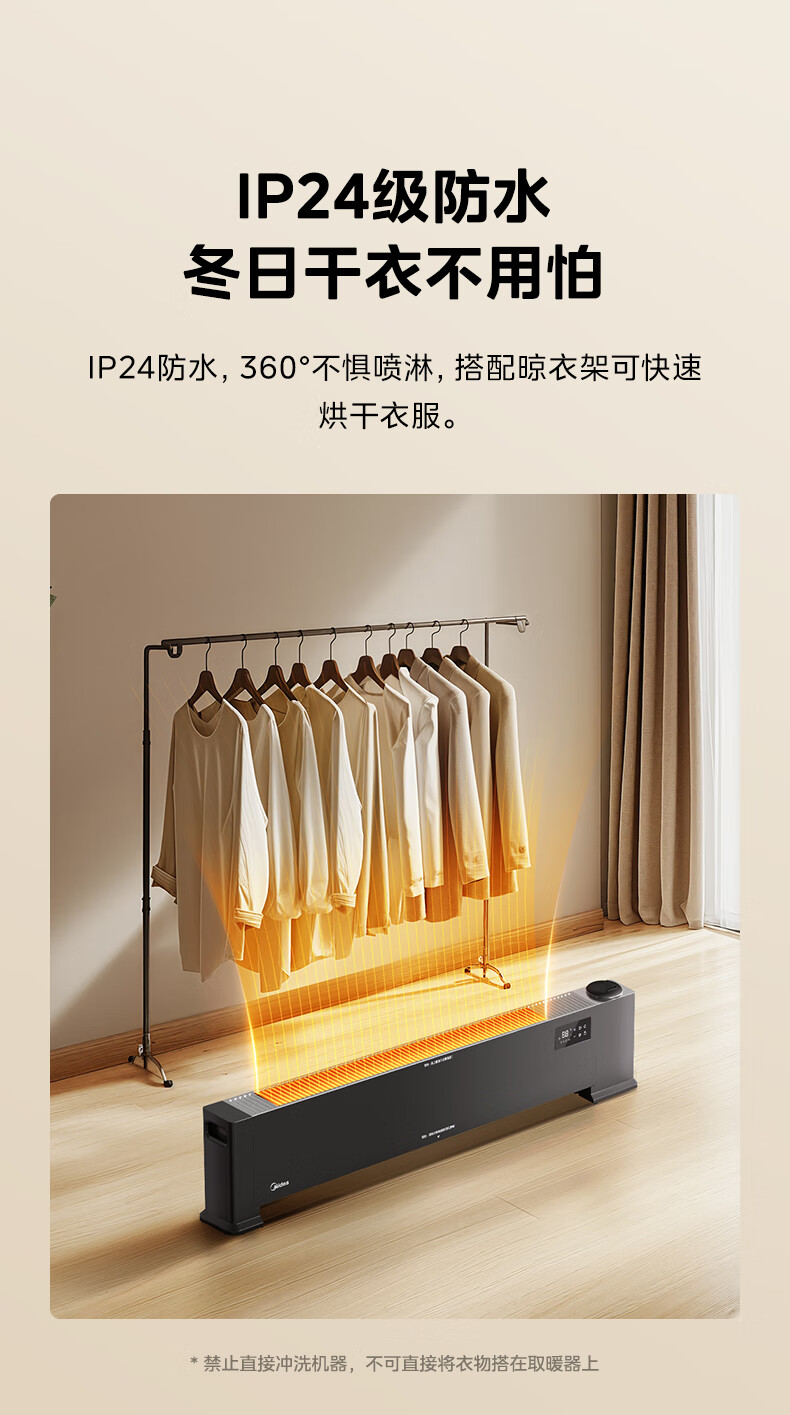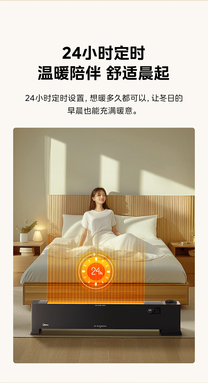 美的(Midea)【语音加湿】石墨烯踢脚线取暖器/家用电热电暖器/浴室电暖气/全屋升温速热烤火炉遥控省电HDT22HS