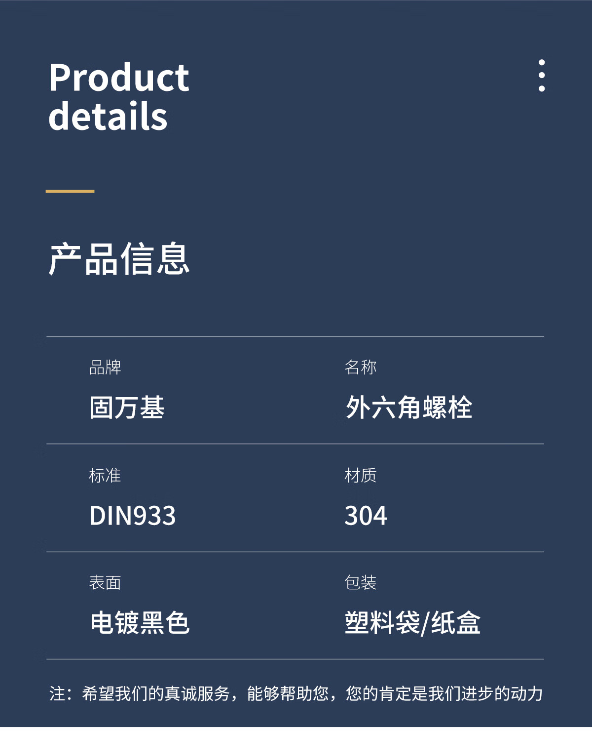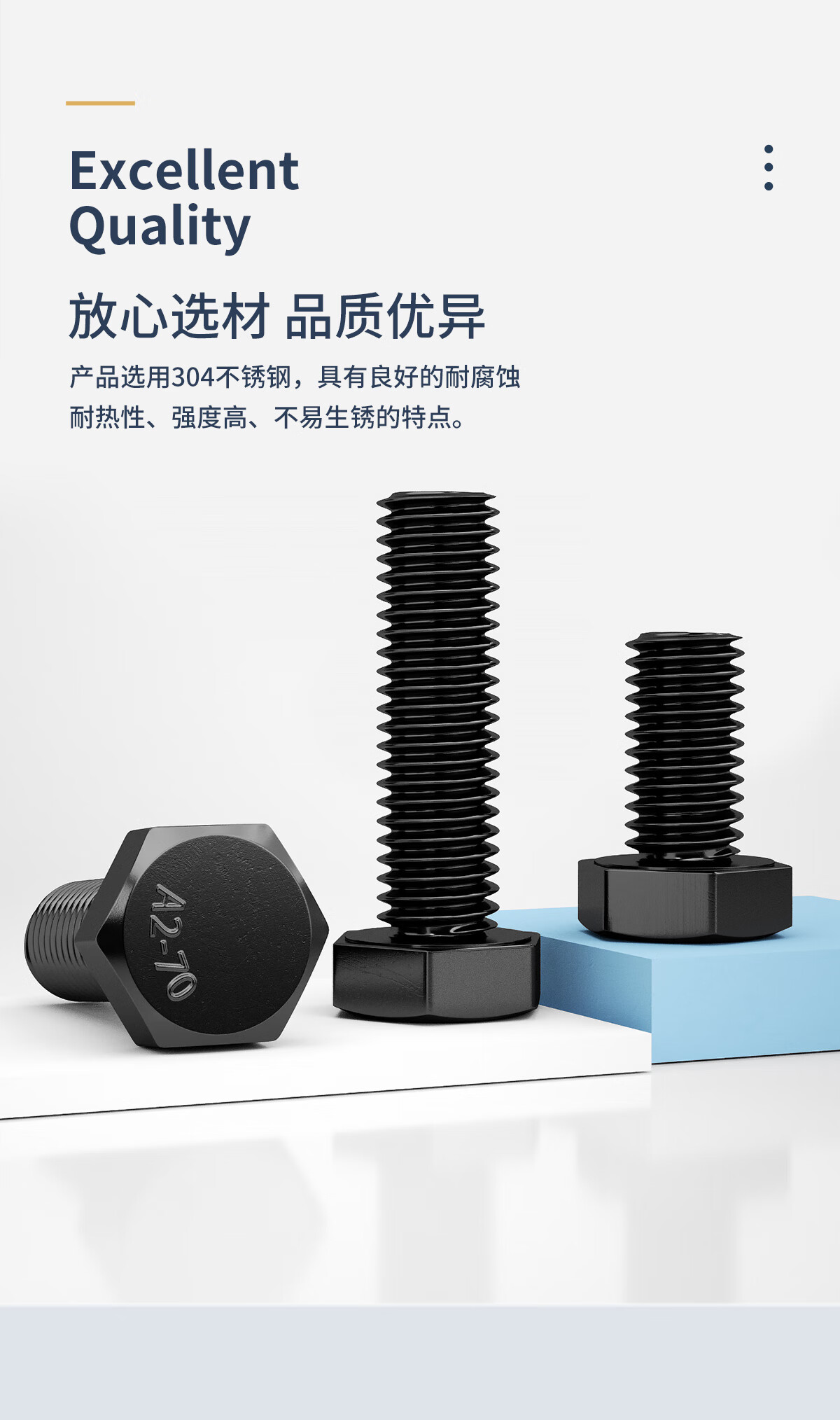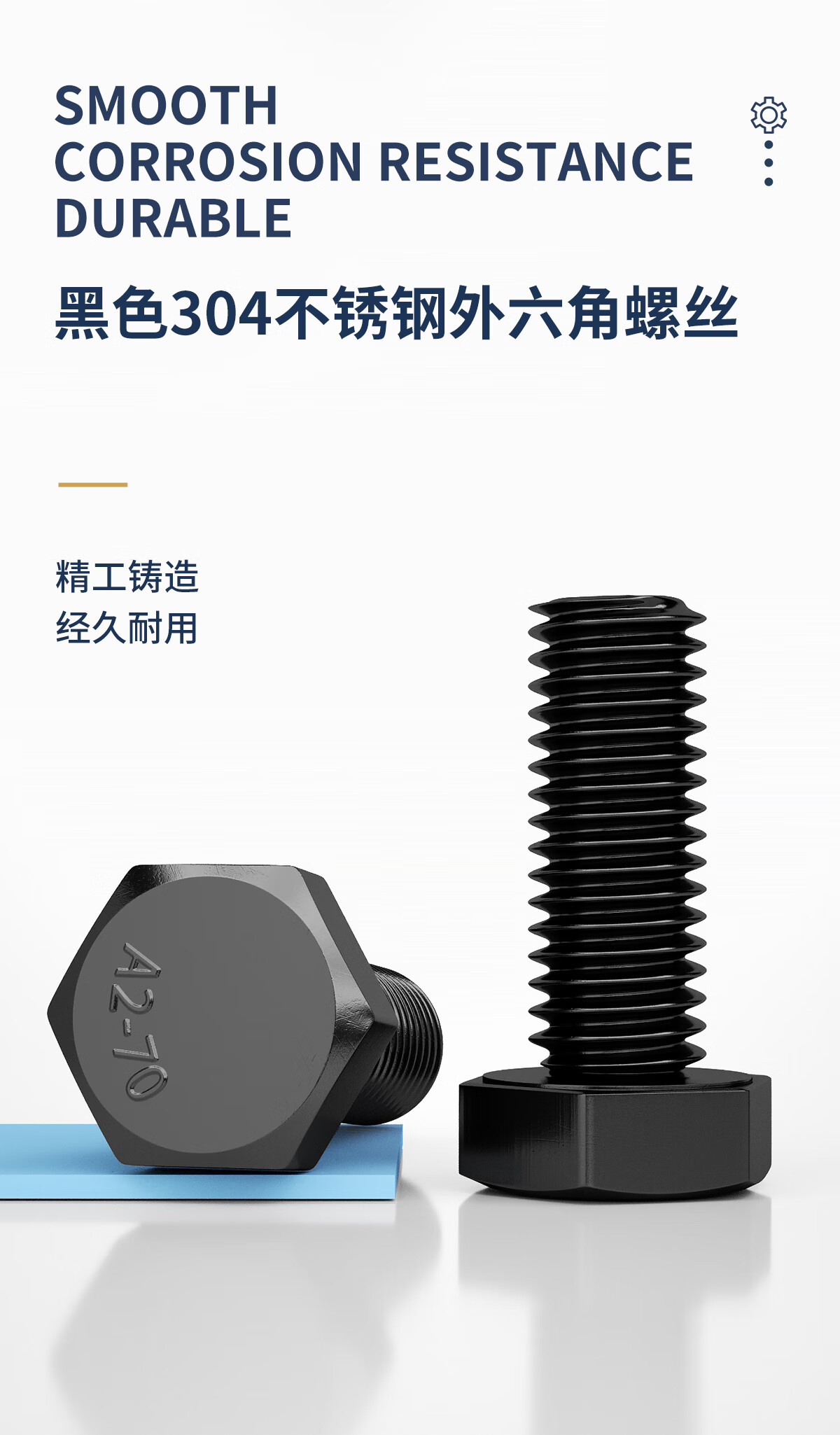 固万基(GUWANJI)304黑色不锈钢外六角螺栓大全DIN933加长螺杆螺丝钉M3-M12 M3x8[100个]