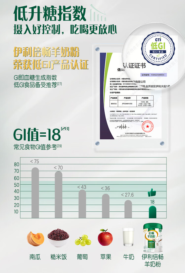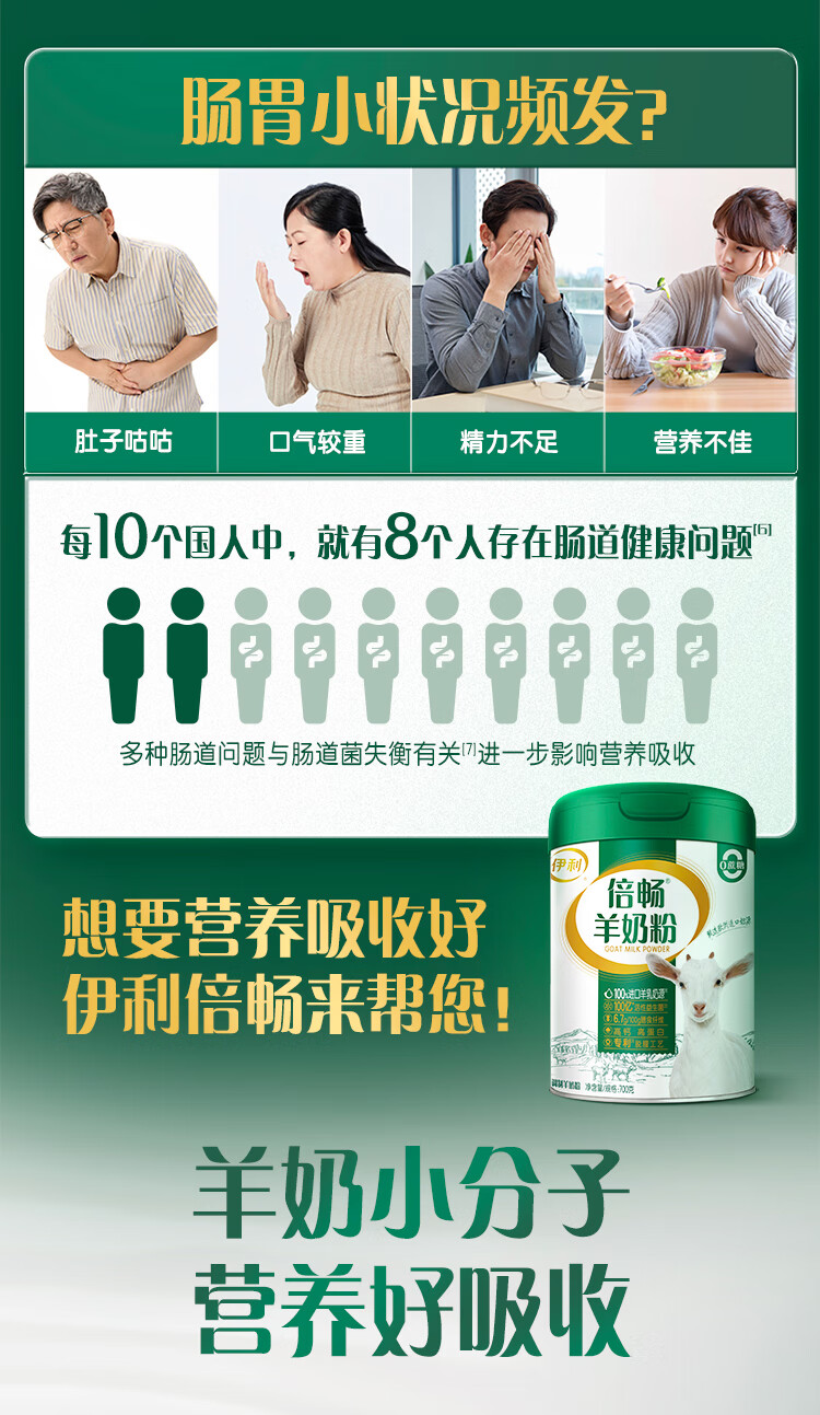 伊利倍畅羊奶粉700g 中老年成人全家营养高钙0蔗糖纯羊乳过节送礼 倍畅700g1罐+高钙高铁800g