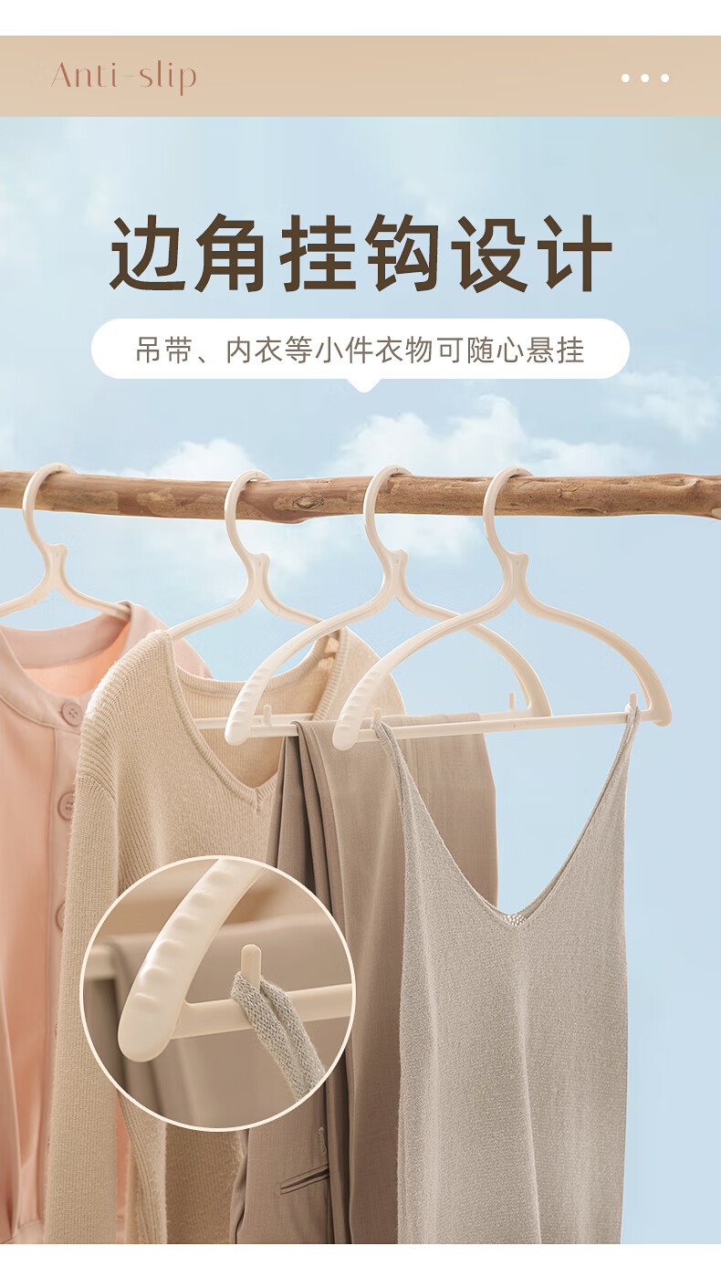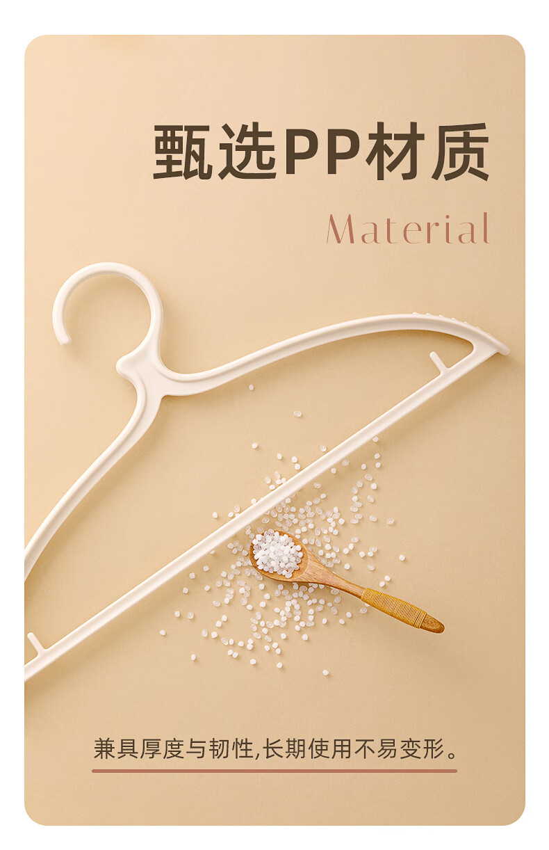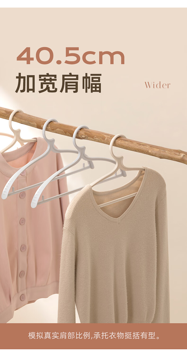 茶花(CHAHUA)衣架无痕家用晾衣服撑子防肩角滑挂晒衣撑凉衣架子收纳宽肩 5支 米色