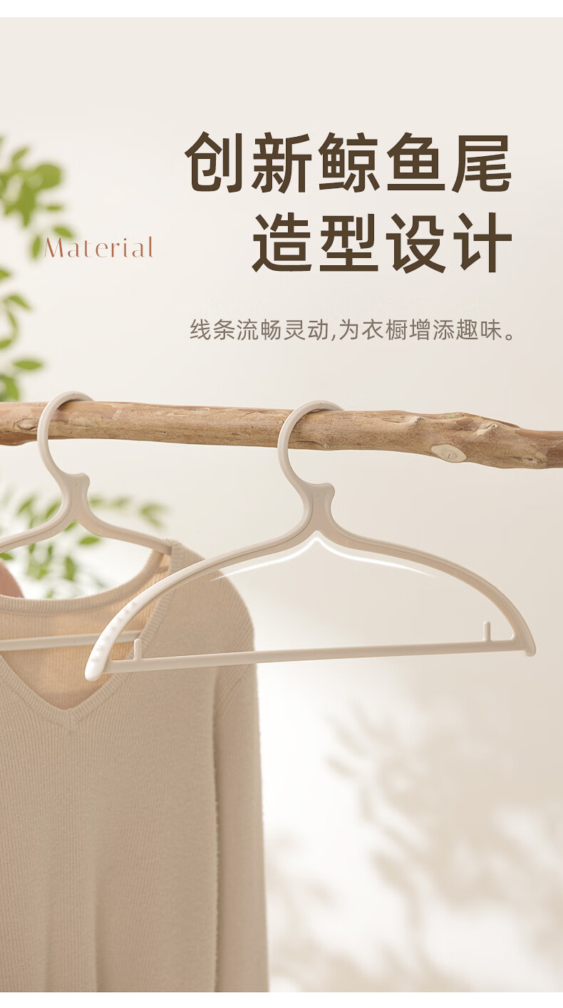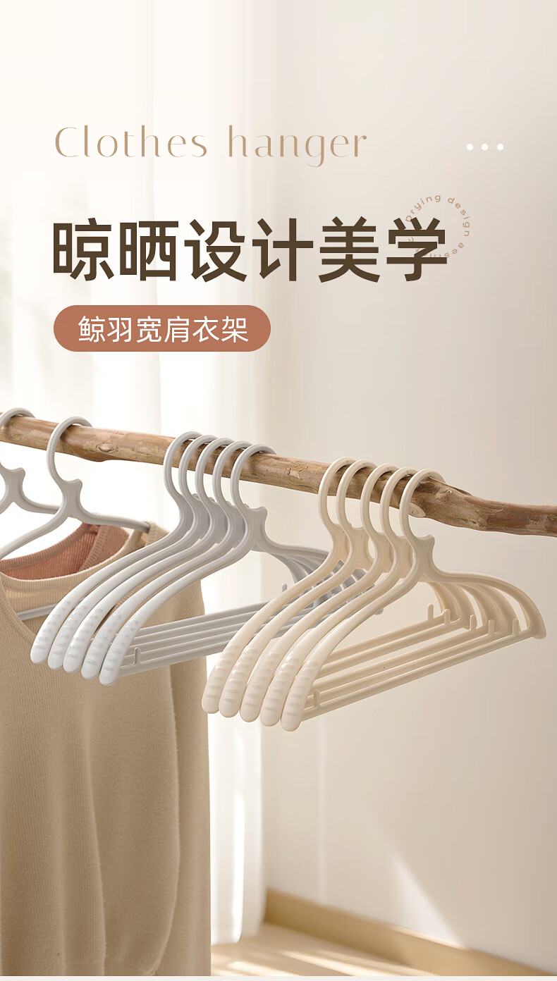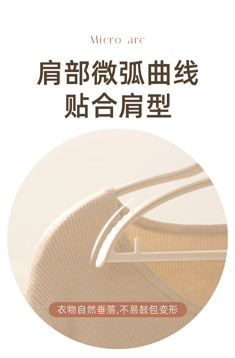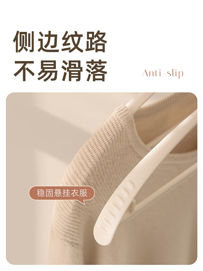 茶花(CHAHUA)衣架无痕家用晾衣服撑子防肩角滑挂晒衣撑凉衣架子收纳宽肩 5支 米色
