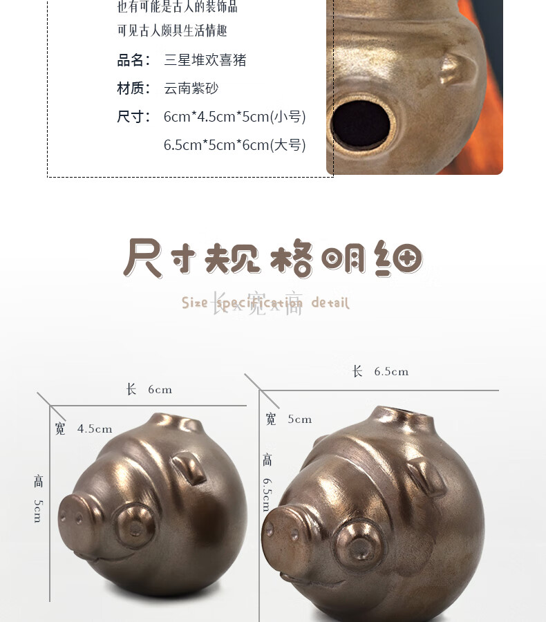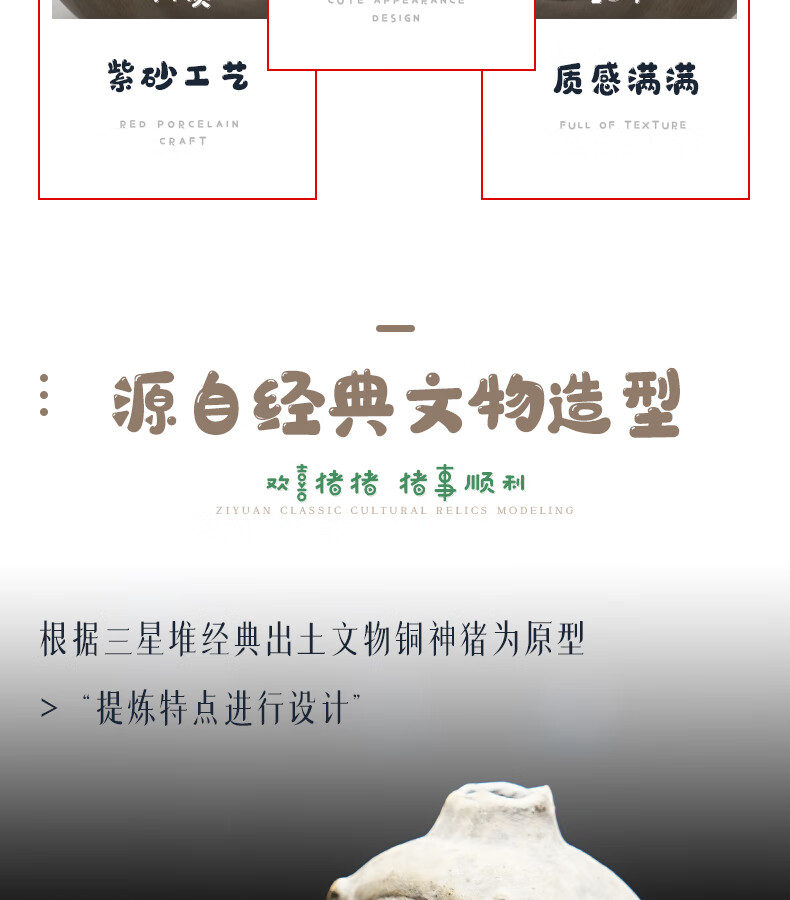 三星堆博物馆文创陶猪欢喜猪高端茶宠摆件云南紫砂茶宠非遗手作高级感手办桌面摆件伴手礼玄关摆件创意生日礼物 非遗手作紫砂欢喜猪茶宠摆件