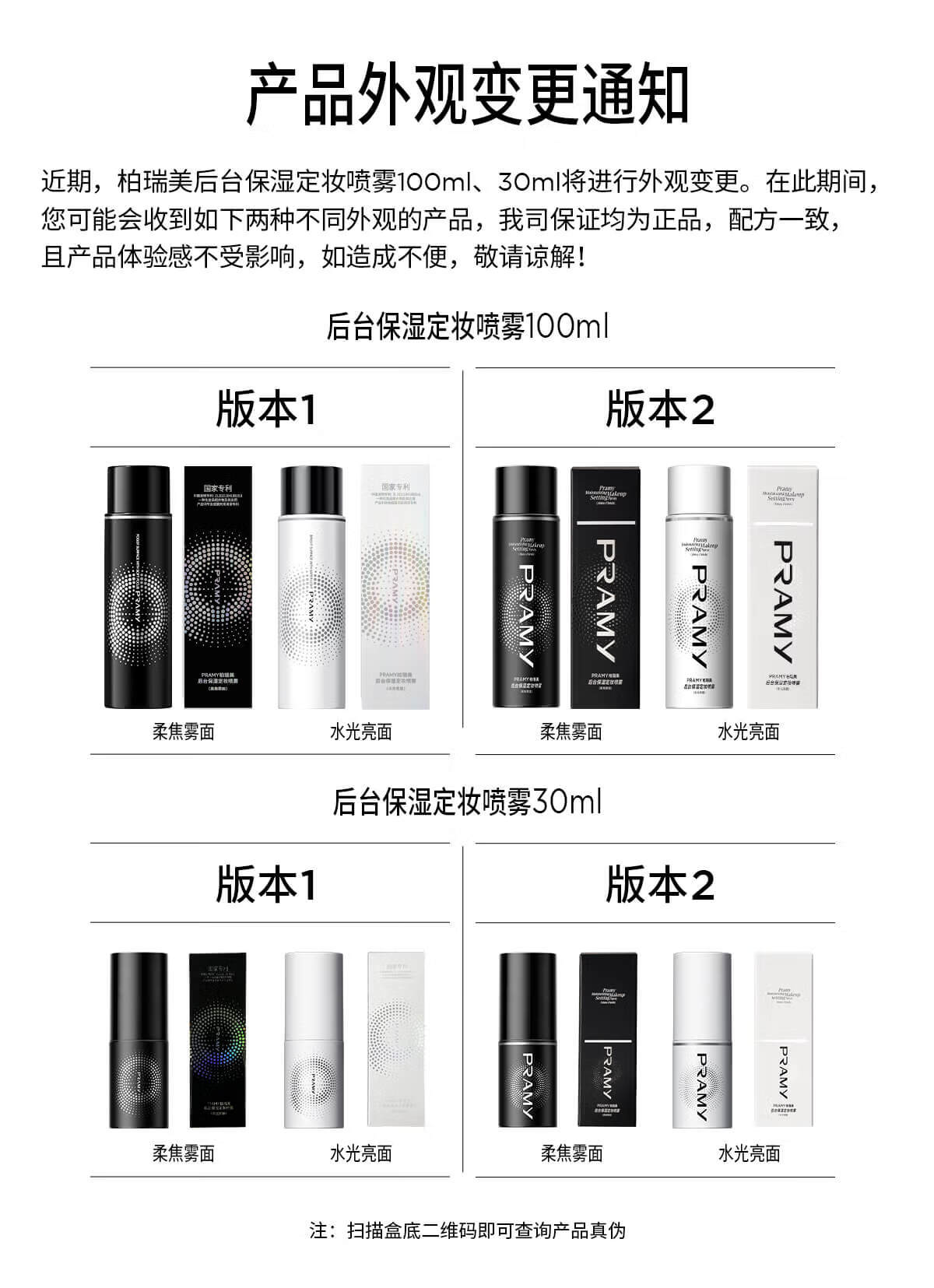 柏瑞美(PRAMY)定妆喷雾经典款成膜长时持妆保湿防蹭白瓶100ml节日礼物送女友