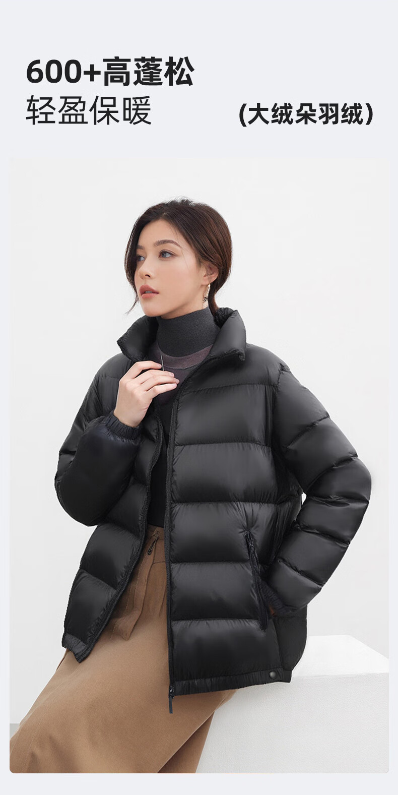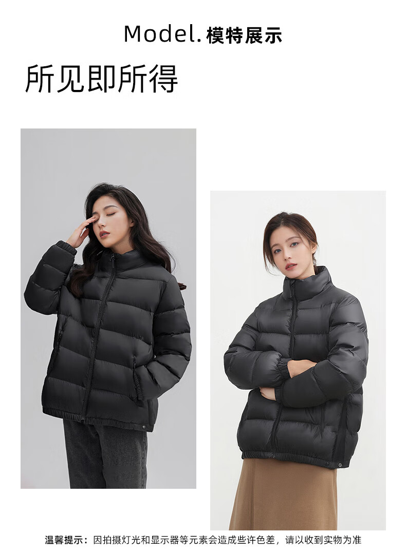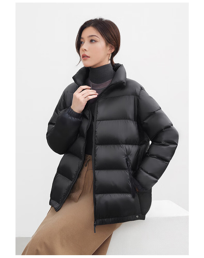 鸭鸭(YAYA)品牌2025羽绒服女新款鸭绒面包服立领秋冬潮流气质百搭保暖外套女 摩卡黑 S 【100-120斤】