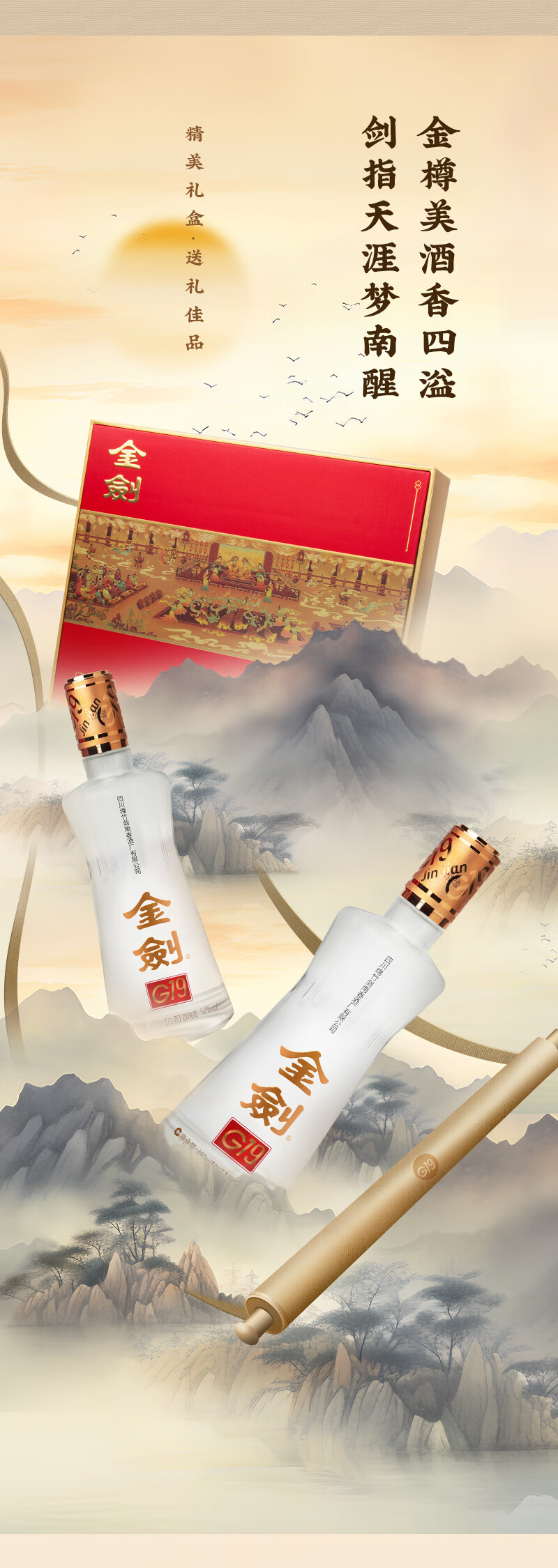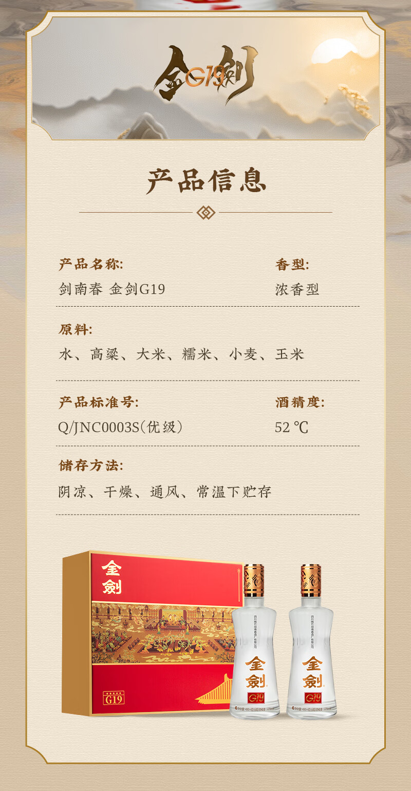 剑南春 高度白酒 浓香型礼盒装白酒 2025年 500mL 6瓶 52度金剑窖龄60整箱