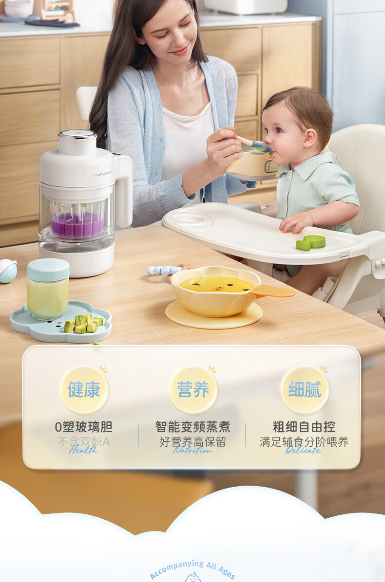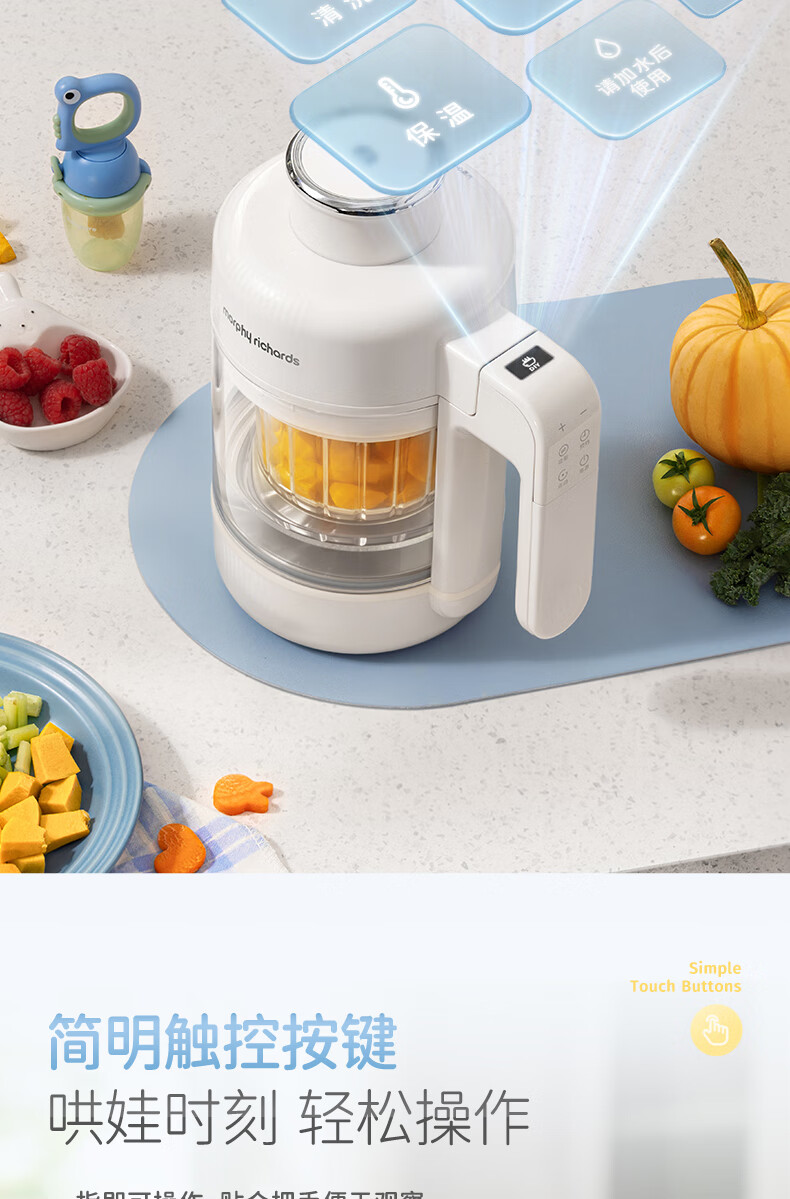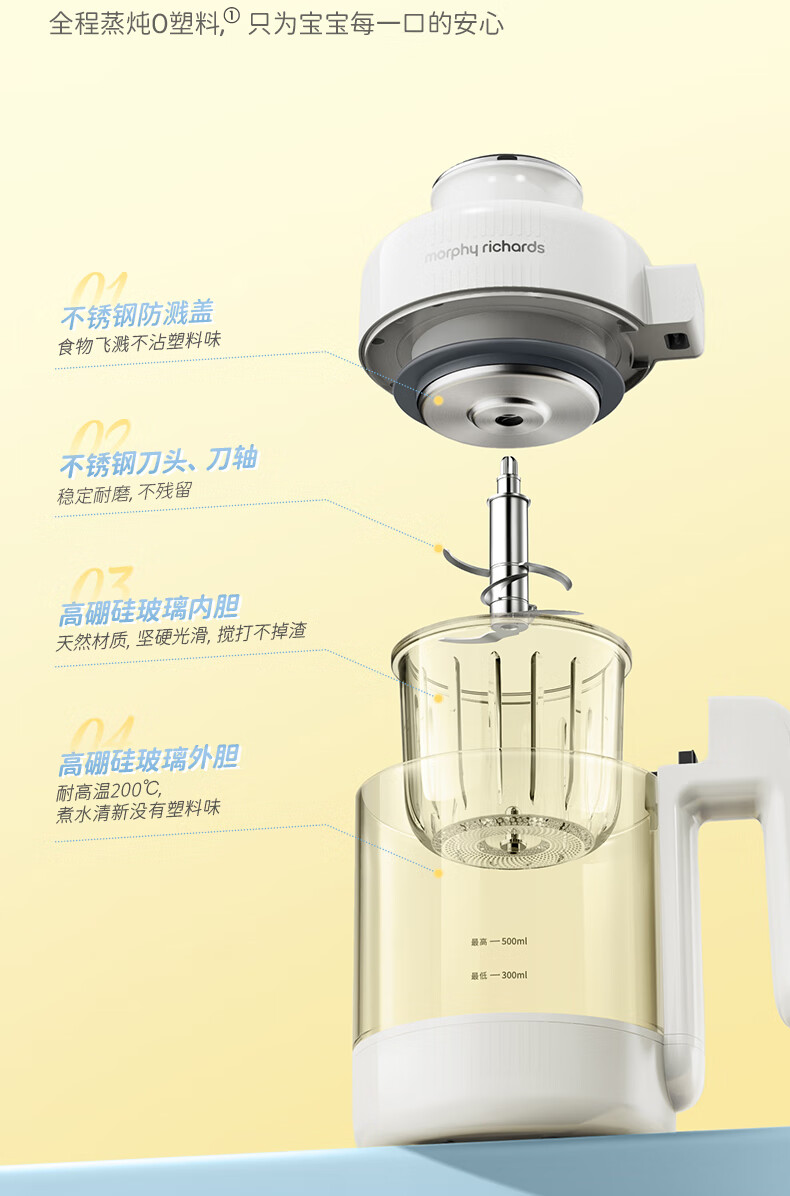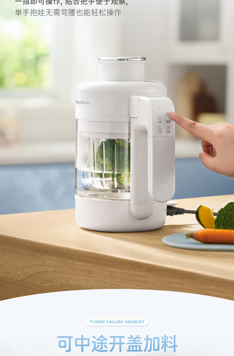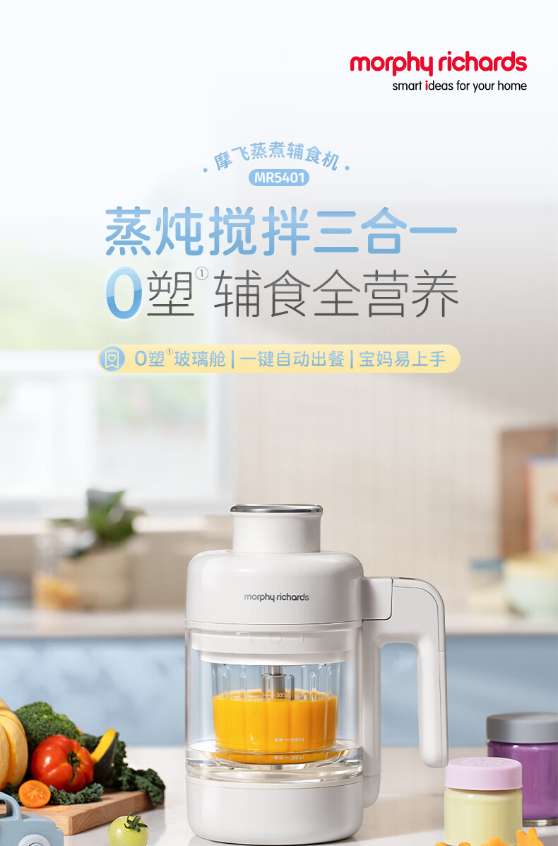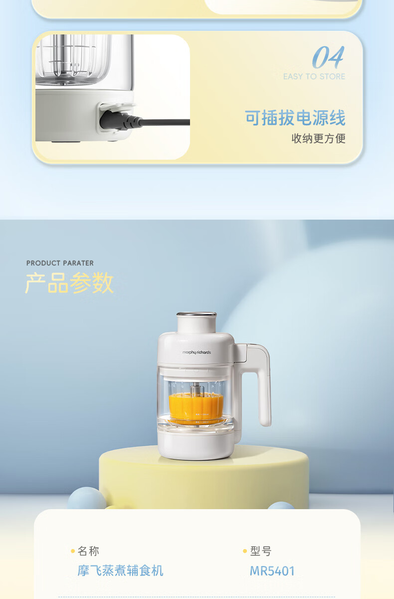 摩飞电器(Morphyrichards)婴儿辅食机绞肉机家用小型多功能打泥宝宝料理机蒸炖搅拌一体MR5401 椰奶白 0.3L