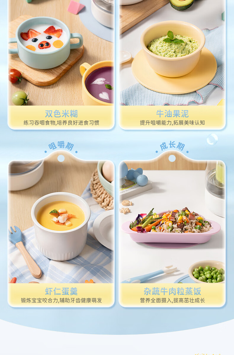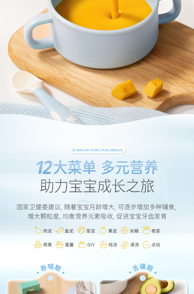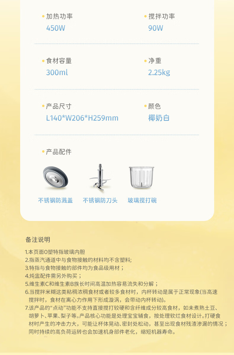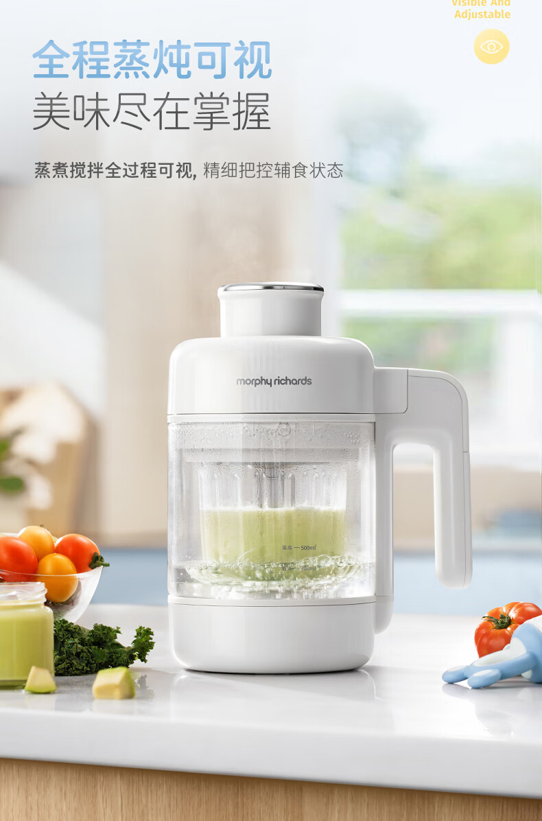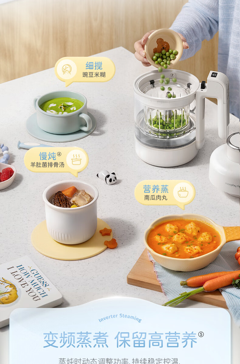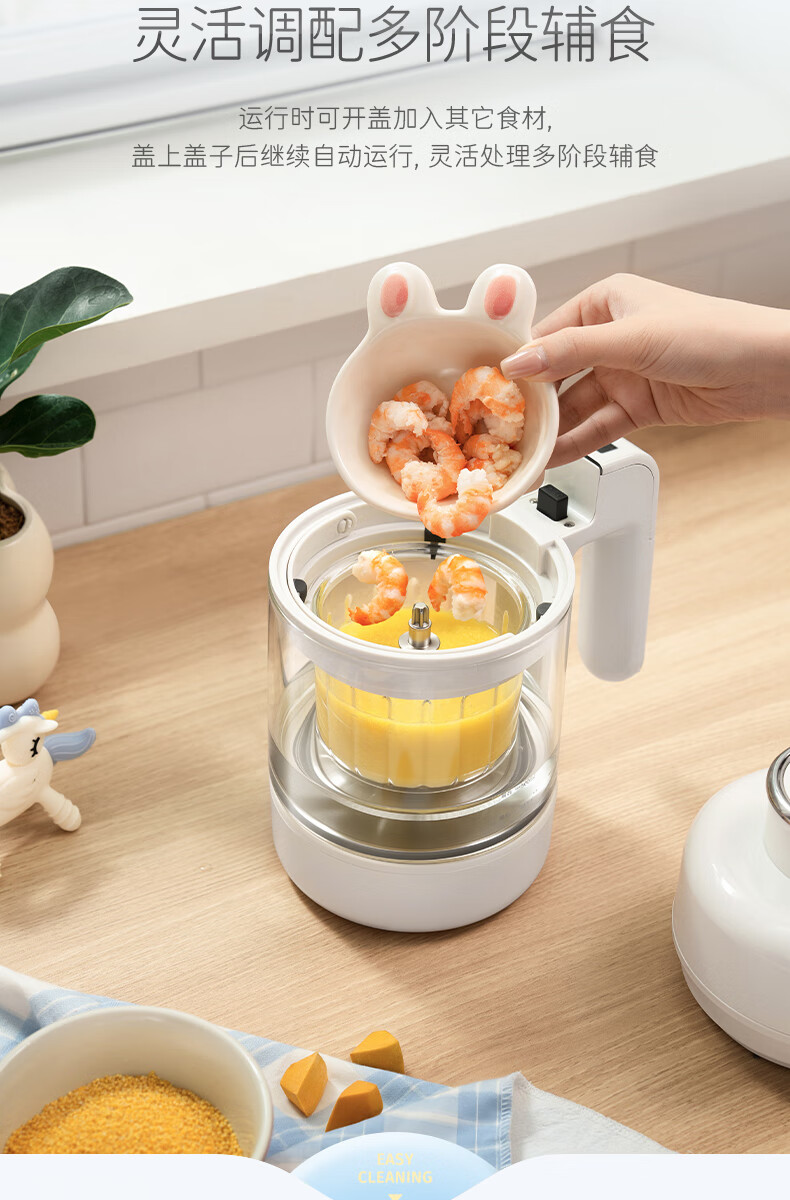 摩飞电器(Morphyrichards)婴儿辅食机绞肉机家用小型多功能打泥宝宝料理机蒸炖搅拌一体MR5401 椰奶白 0.3L