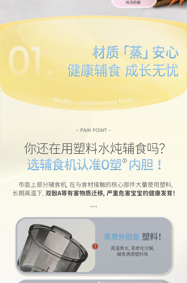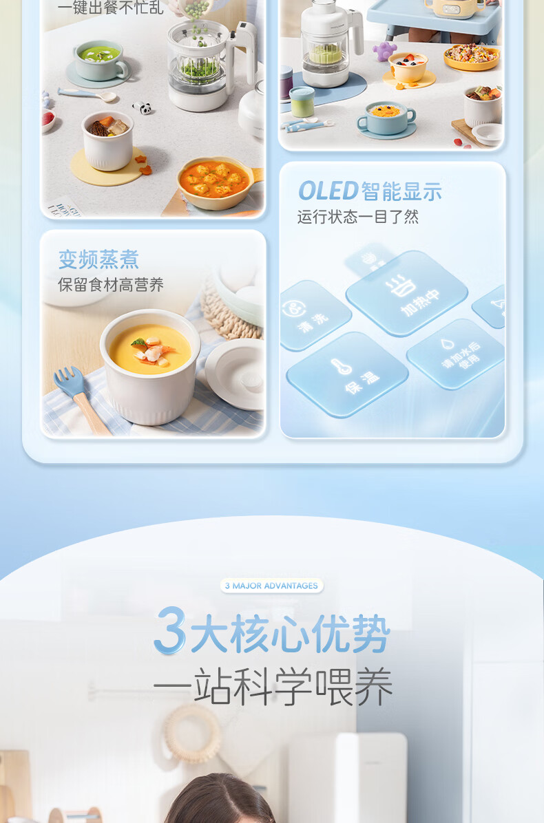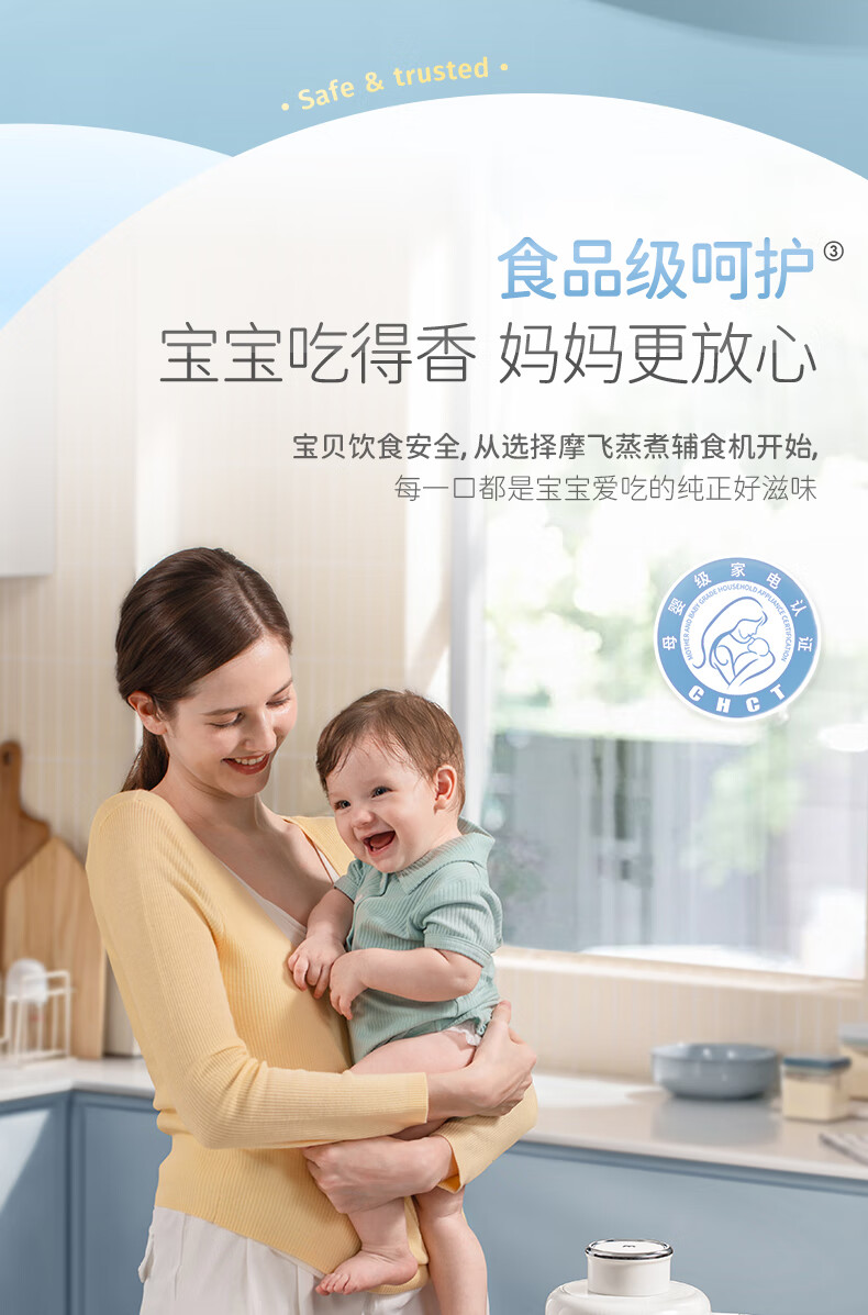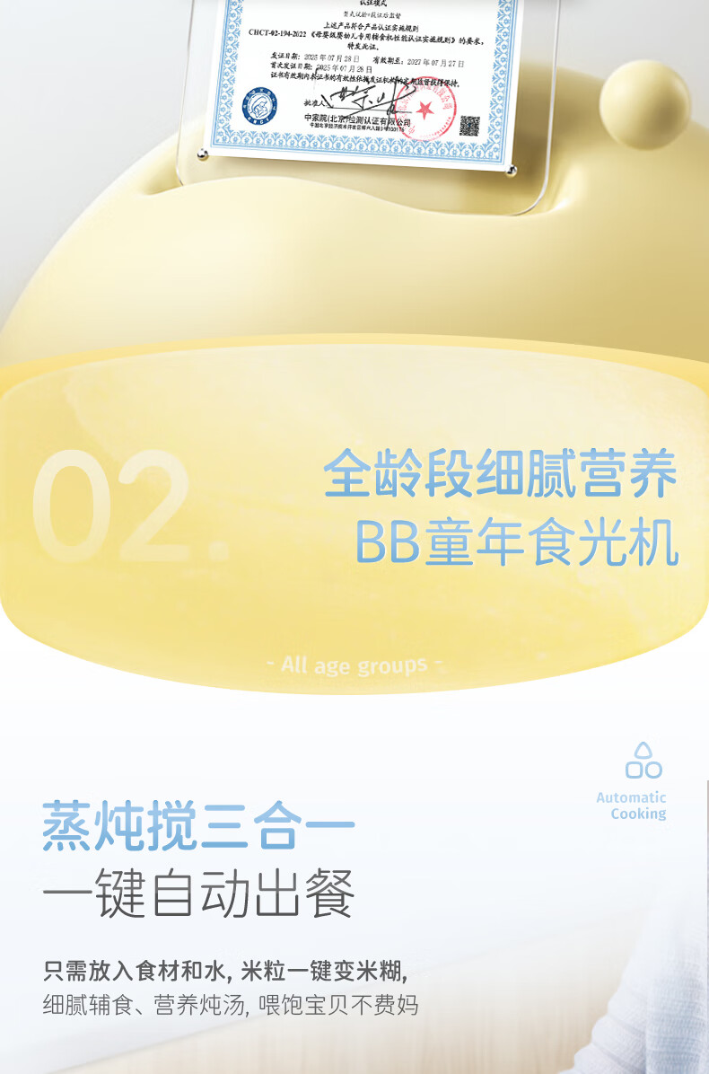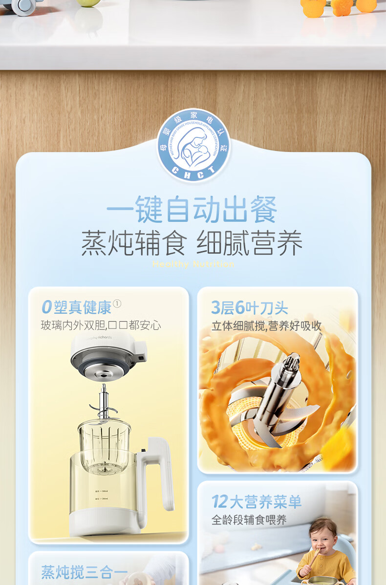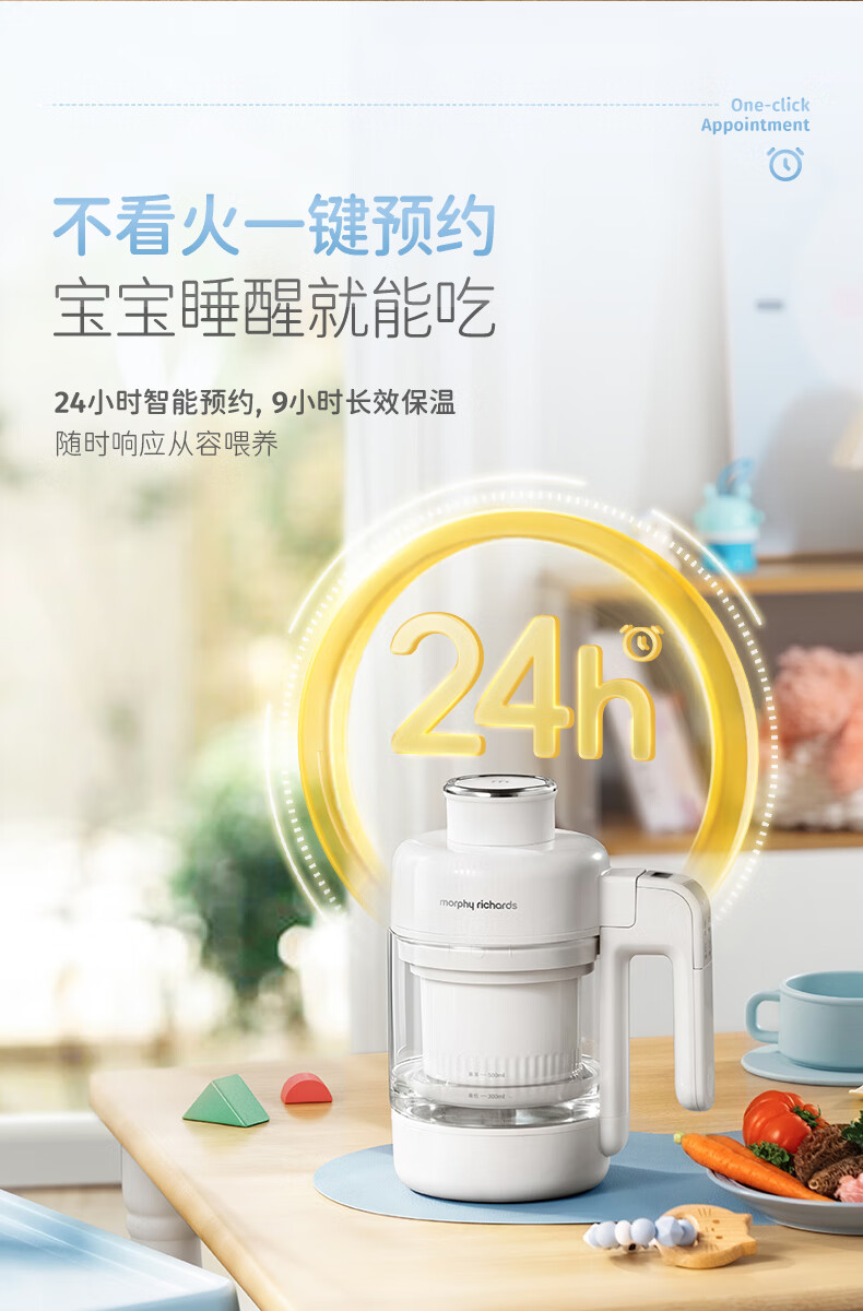 摩飞电器(Morphyrichards)婴儿辅食机绞肉机家用小型多功能打泥宝宝料理机蒸炖搅拌一体MR5401 椰奶白 0.3L