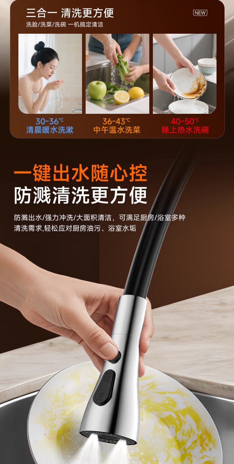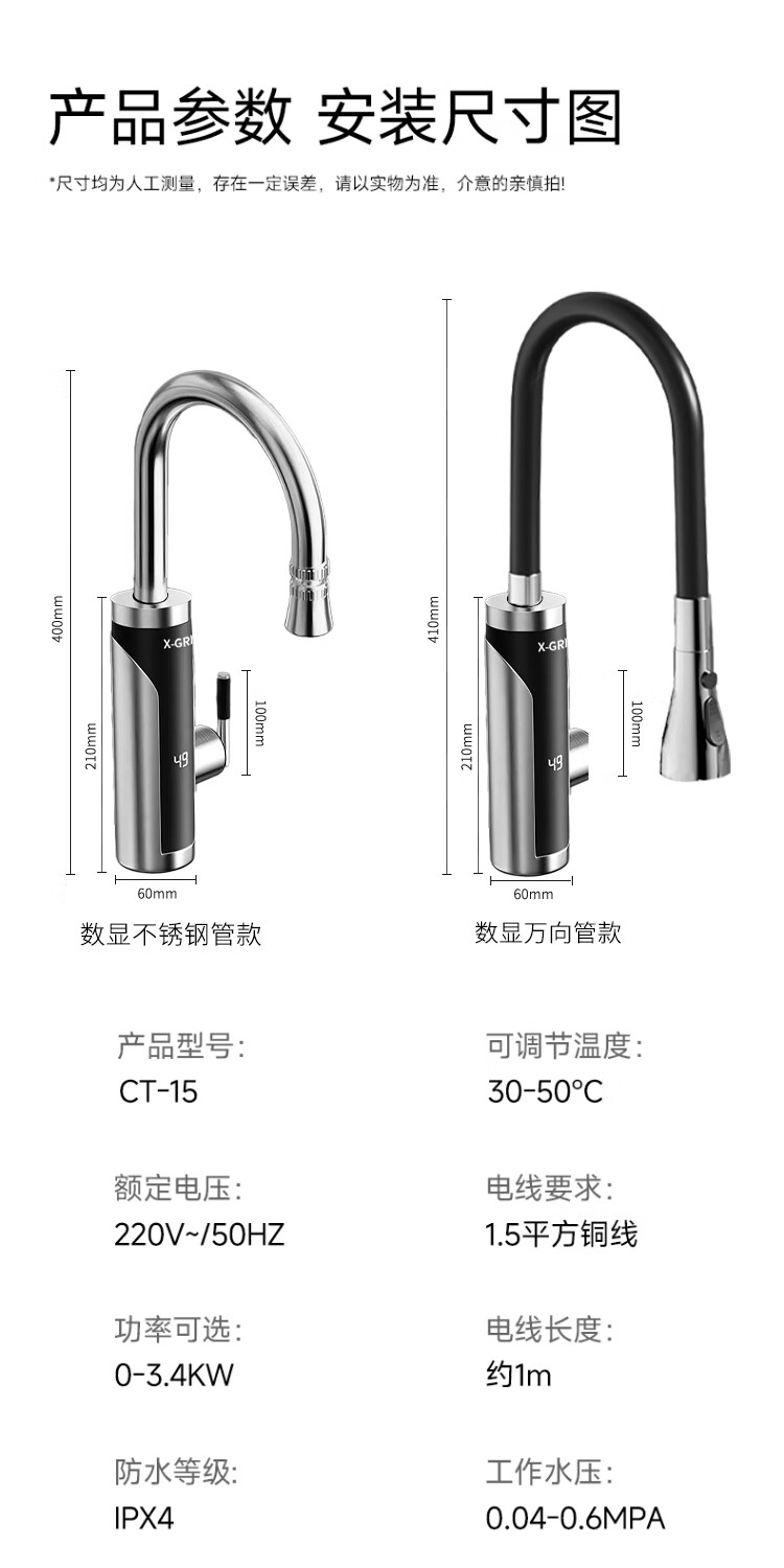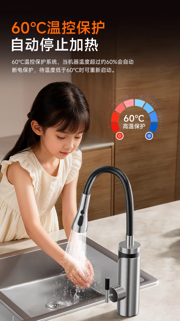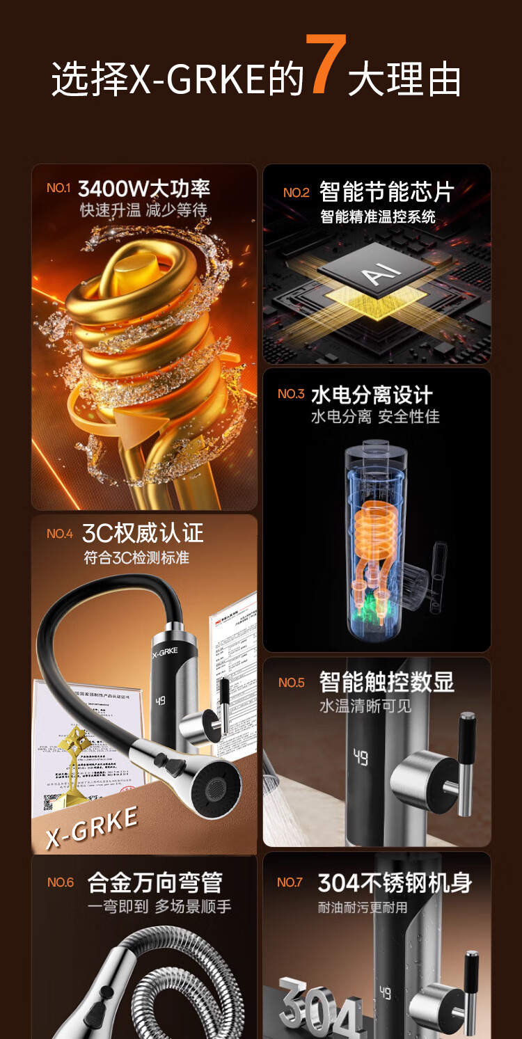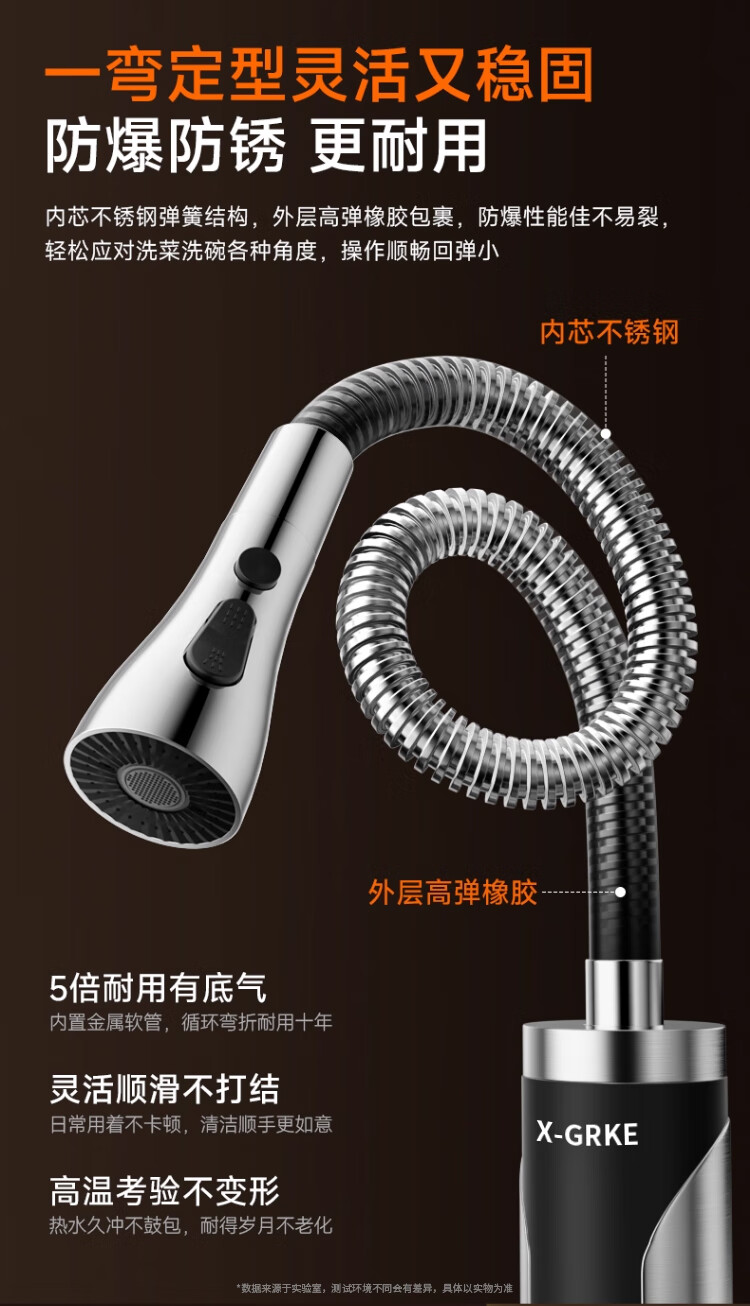 X-GRKE【德国】电热水龙头即热式万向机械臂智能变频数显防漏电快速热水专用304不锈钢厨房热水冷热两用 304不锈钢【万向管】漏保+1.1米线+置物架 万向喷头+进水管+漏保插头+置物架