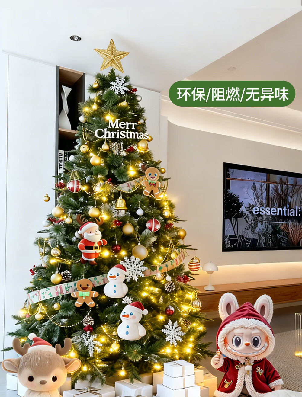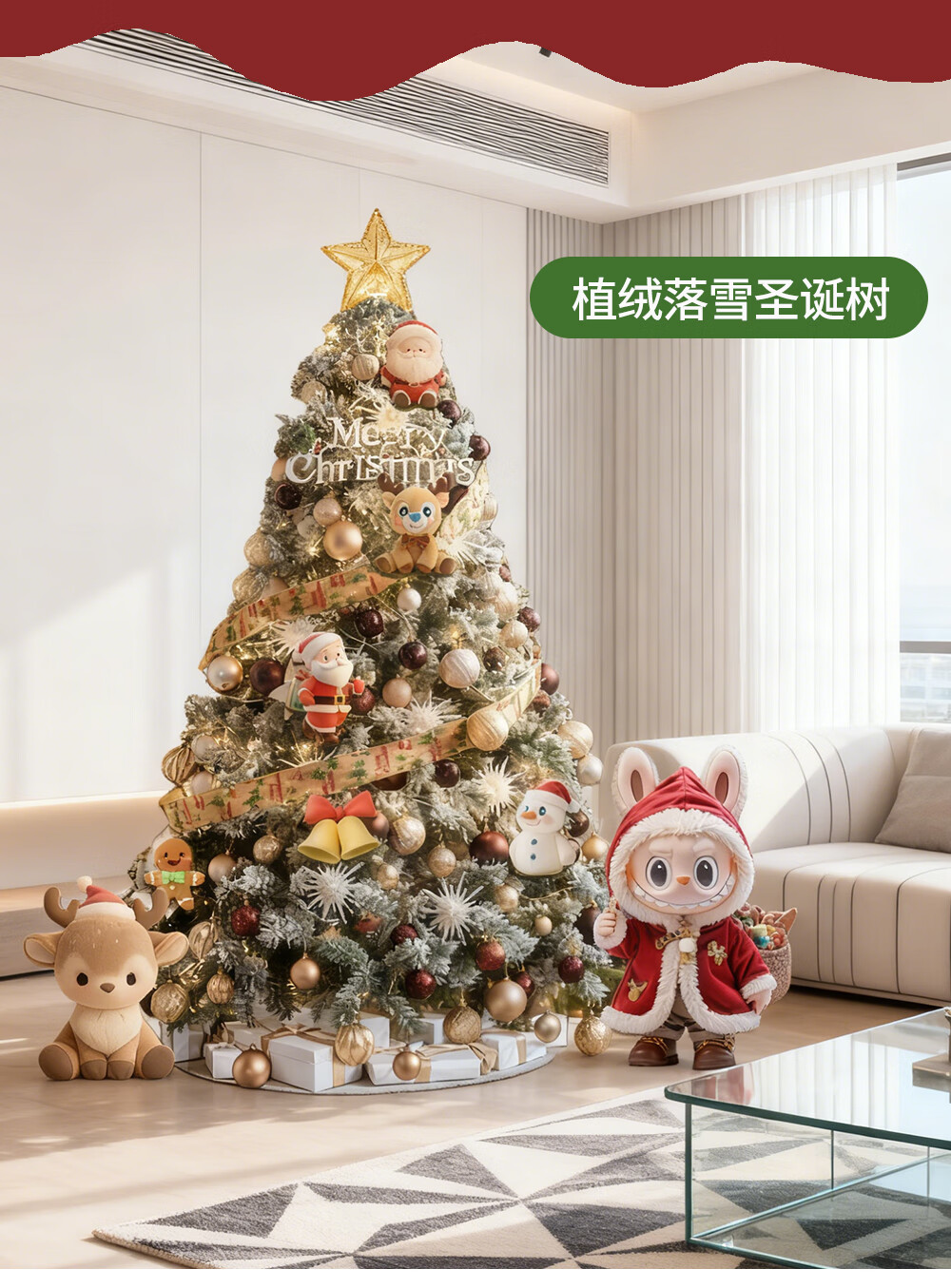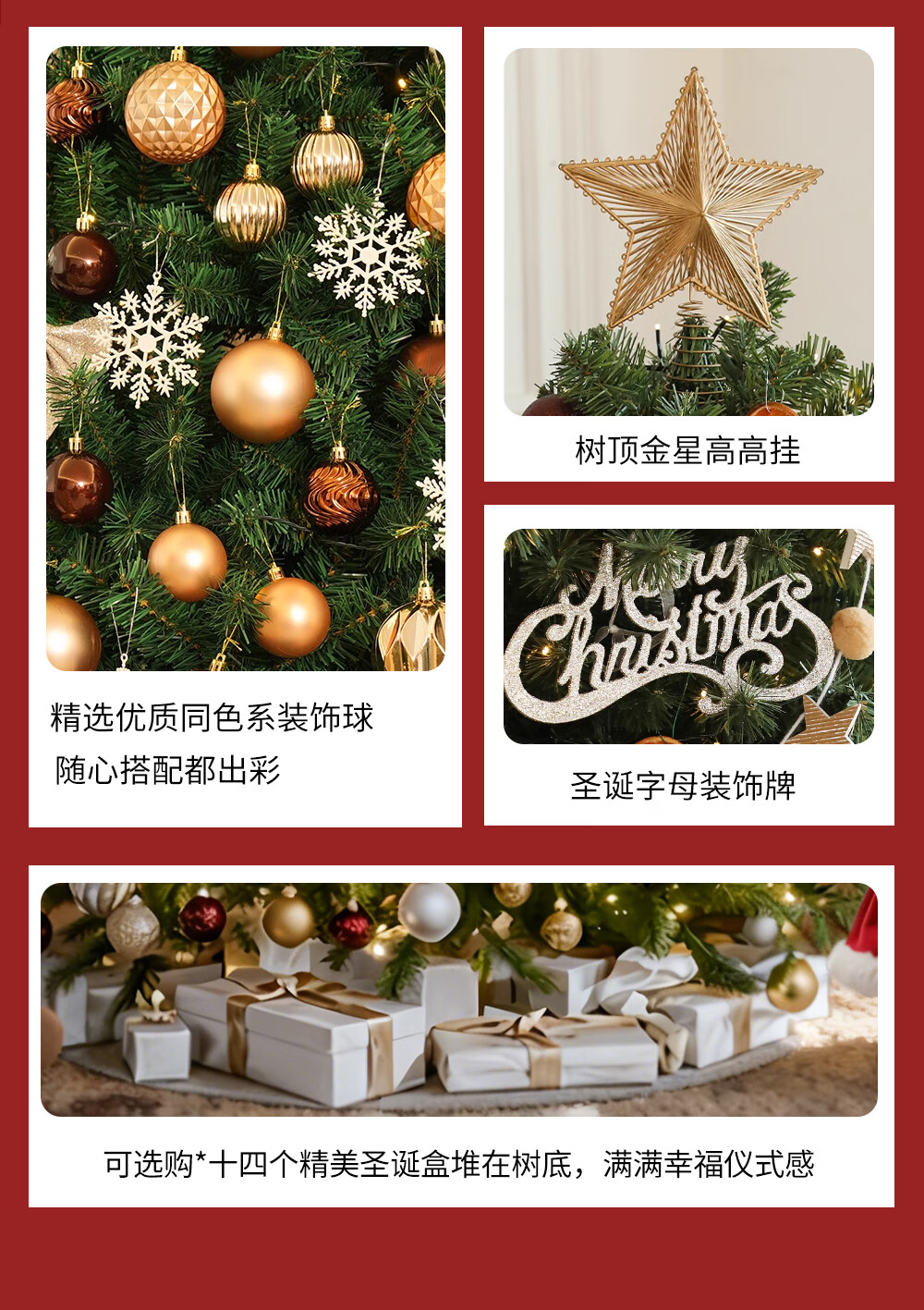 新圣诞树装饰客厅商场店铺家用落雪圣诞节日氛围布置儿童套餐全套 次日达/1.8米圣诞树装饰全套