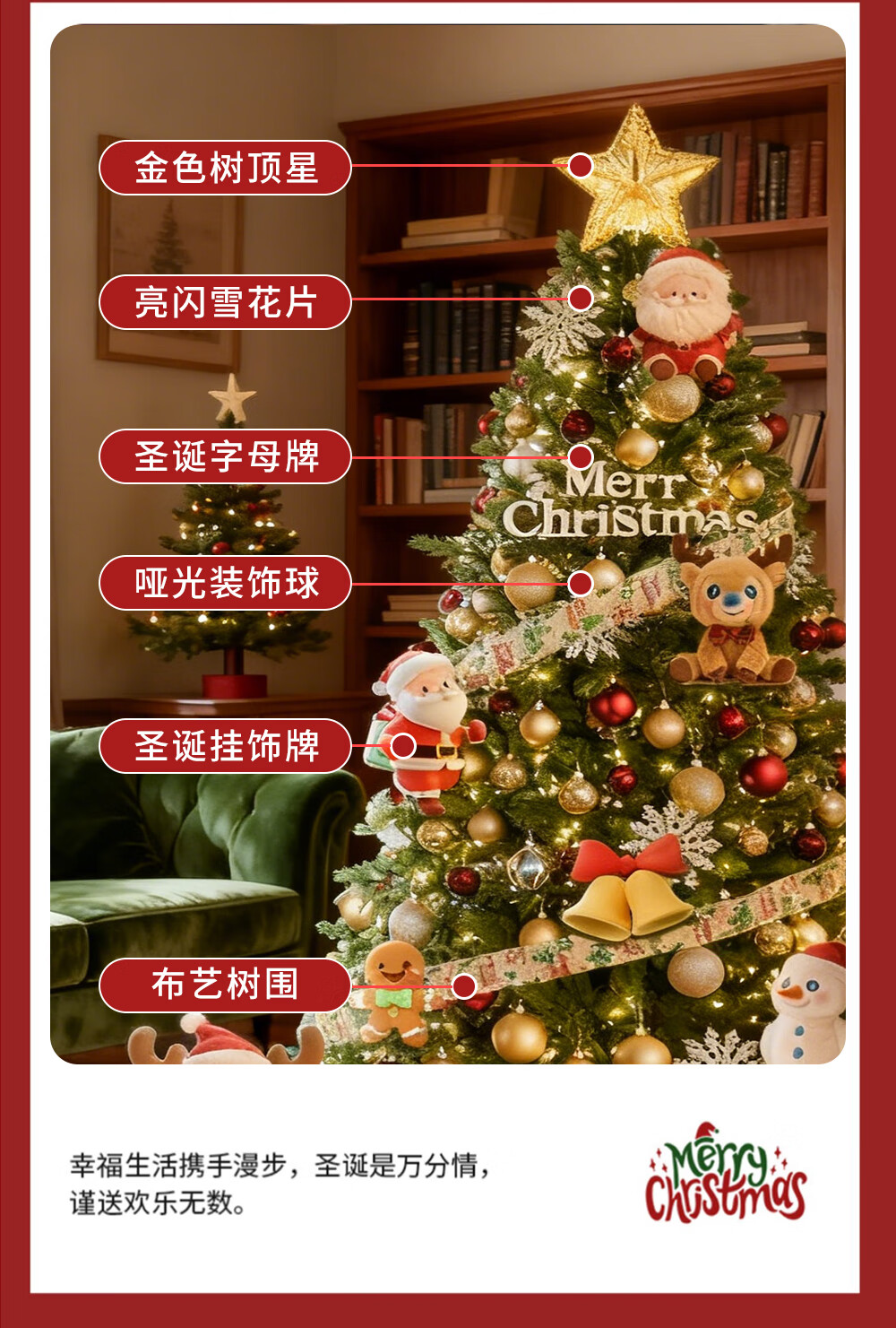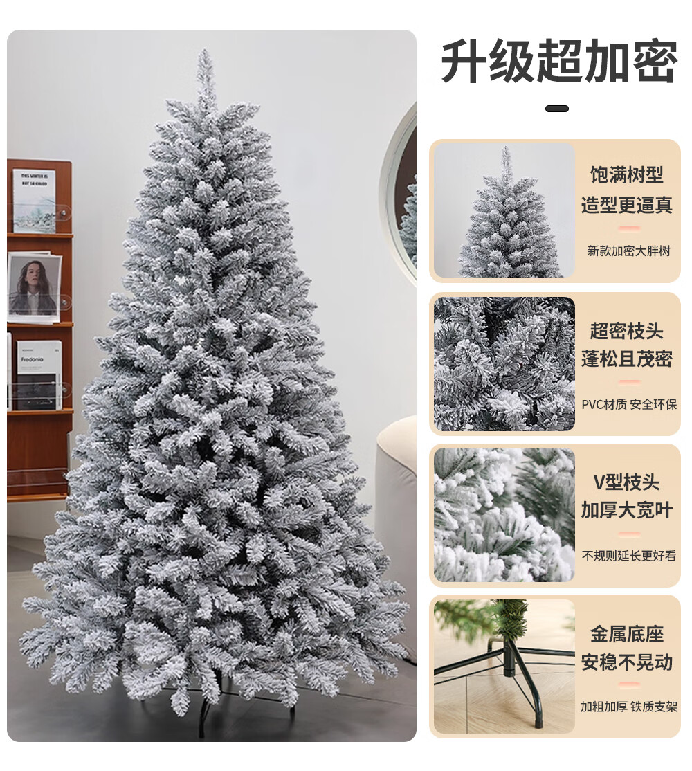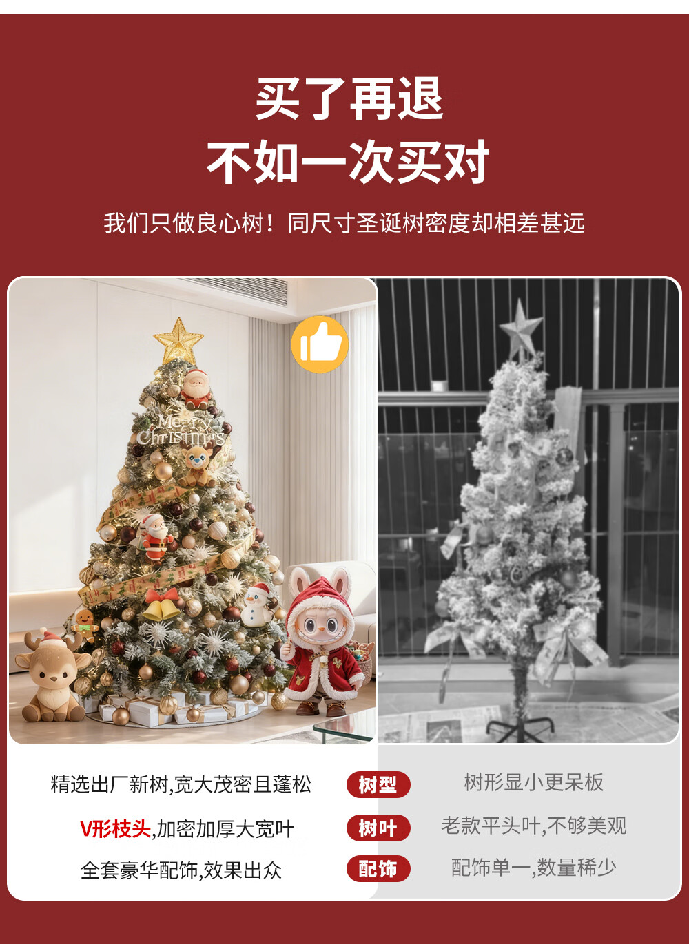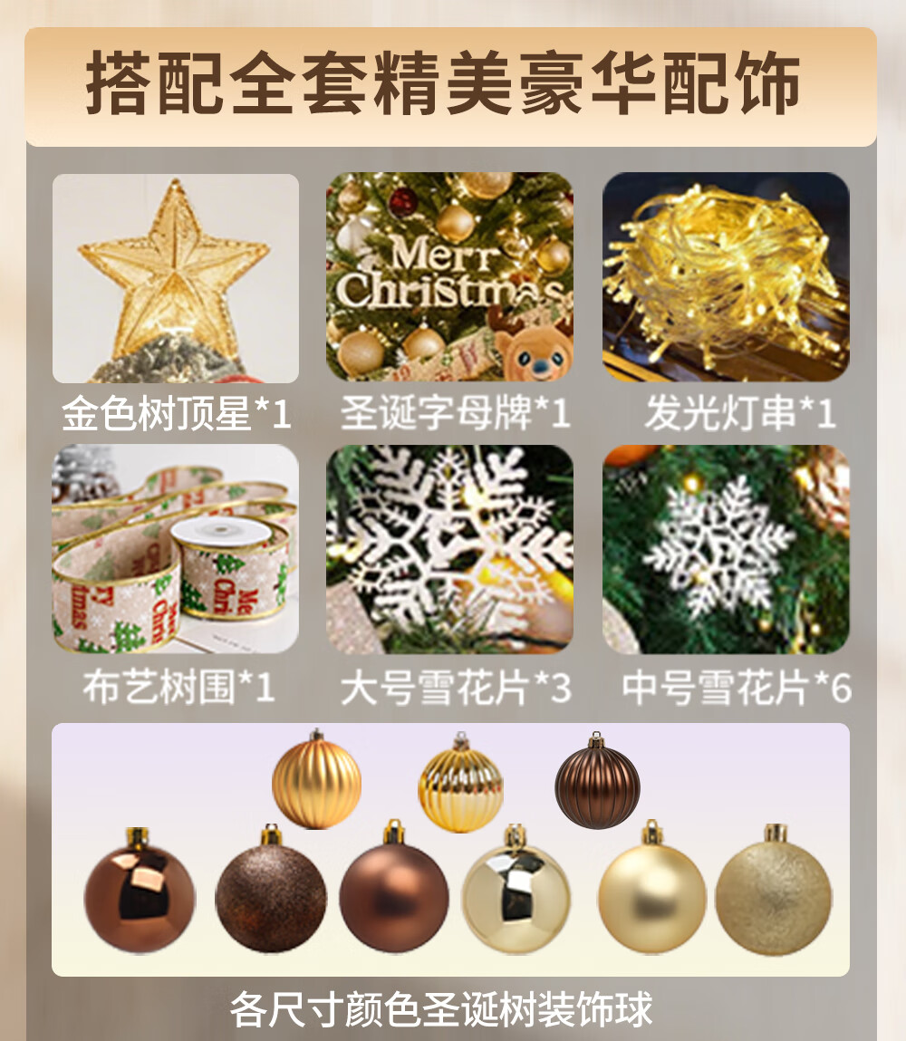 新圣诞树装饰客厅商场店铺家用落雪圣诞节日氛围布置儿童套餐全套 次日达/1.8米圣诞树装饰全套