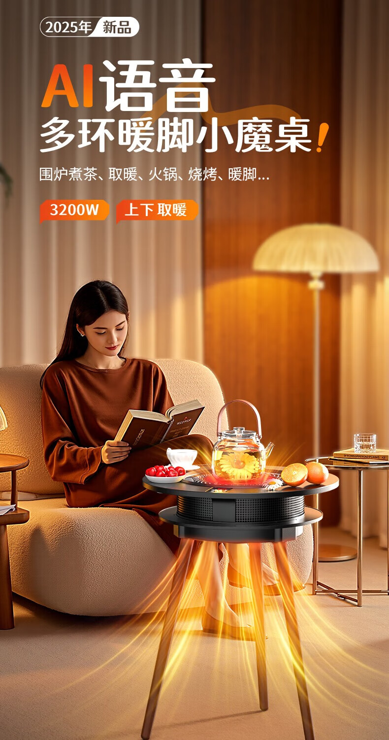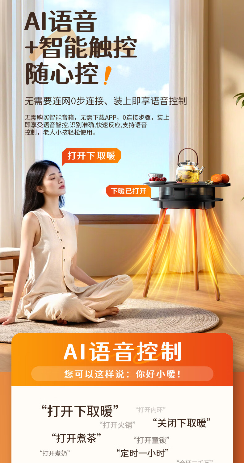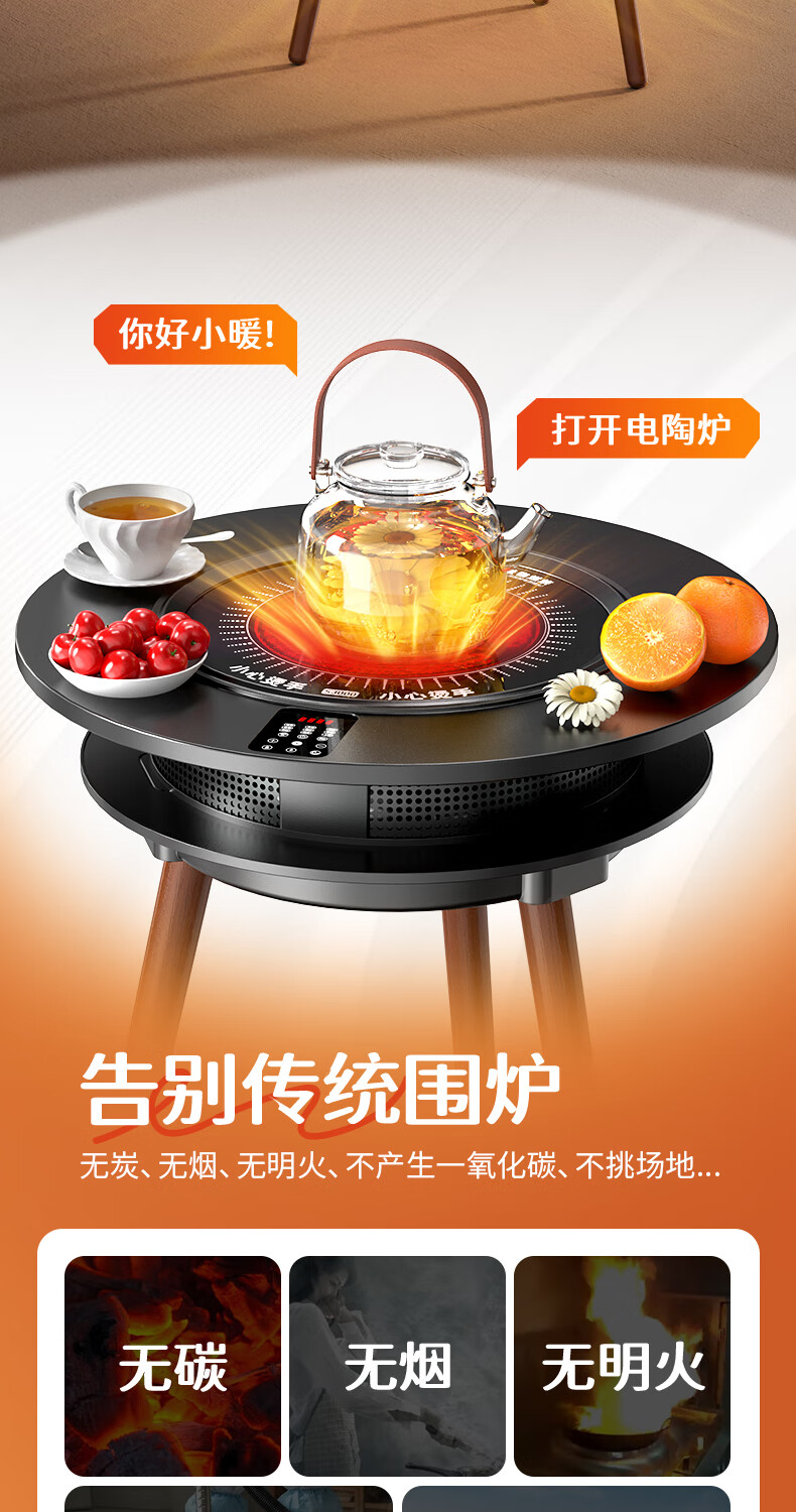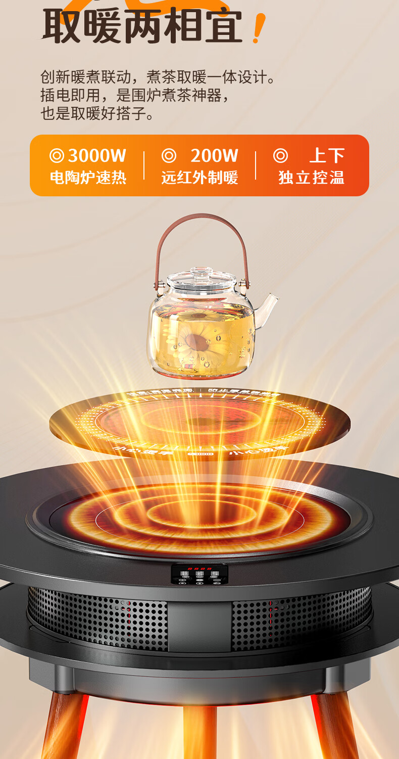 探长火锅款3000W大功率电陶炉围炉煮茶取暖器茶几式电暖桌家用保温电暖器多功能智能语音款 3000W大功率火锅款【围炉煮茶】