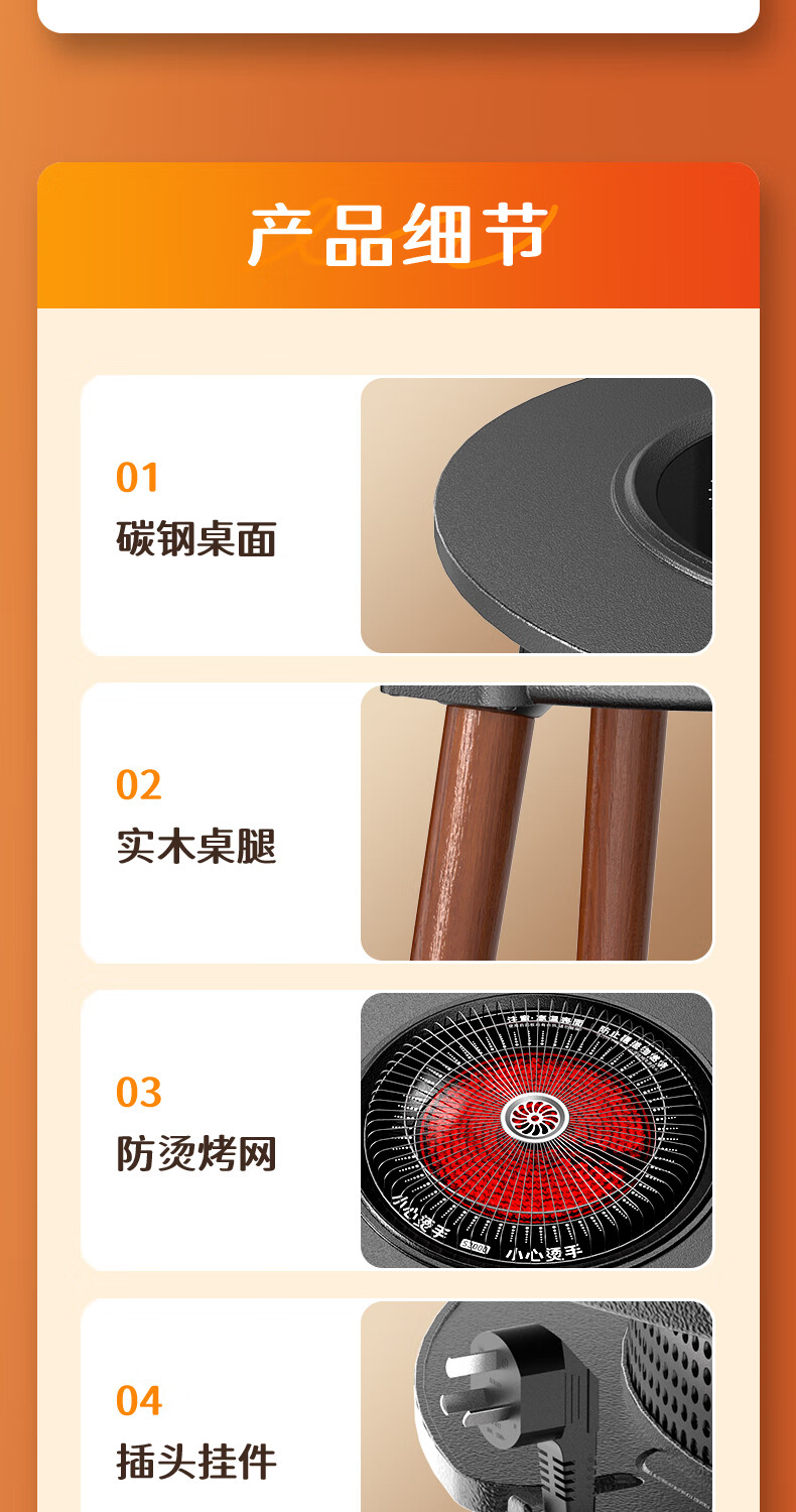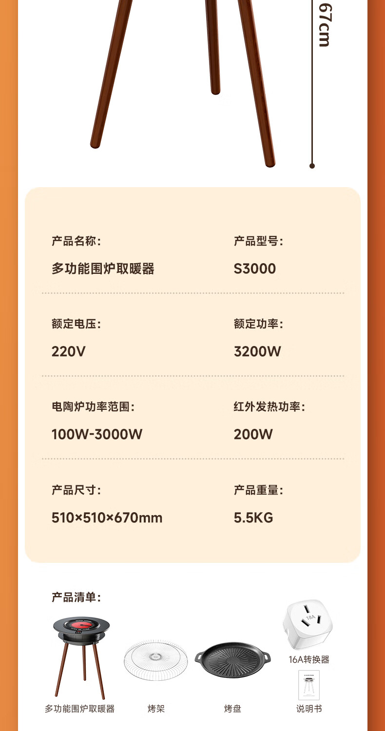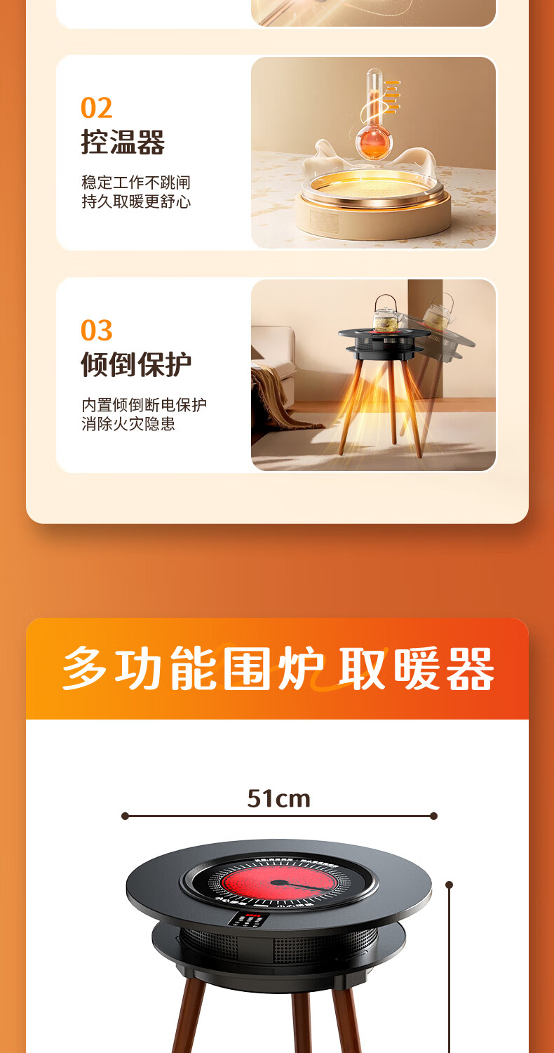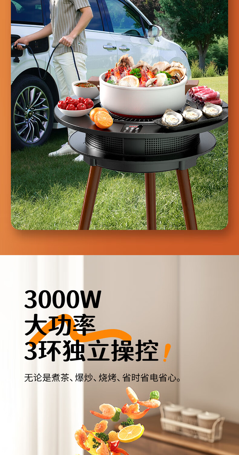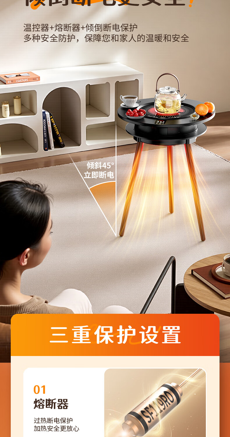 探长火锅款3000W大功率电陶炉围炉煮茶取暖器茶几式电暖桌家用保温电暖器多功能智能语音款 3000W大功率火锅款【围炉煮茶】