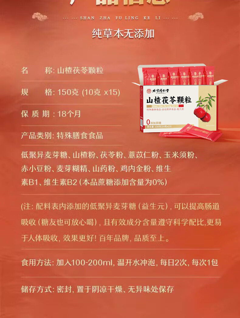 朕皇山楂茯苓颗粒祛湿减肥排毒瘦肚子中药祛湿气重湿疹健脾开胃湿阻脾 【健牌祛湿调肠胃】 150g*1盒 体验装