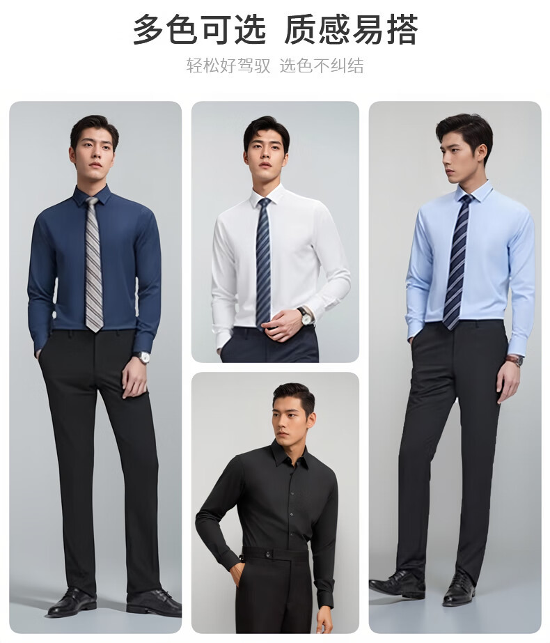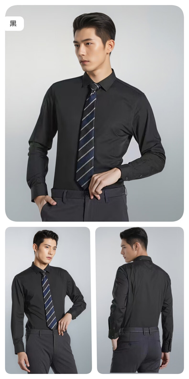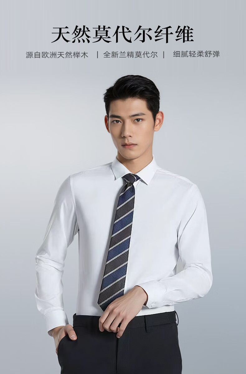 伯曼春秋男士纯色长袖衬衫莫代尔男长袖衬衣商务正装职业微弹衬衫 藏蓝色2484 44