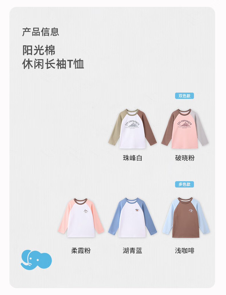 丽婴房丽婴房T恤儿童长袖上衣男童女童长袖T恤儿童T恤秋季儿童卫衣新款 湖青蓝 120 cm