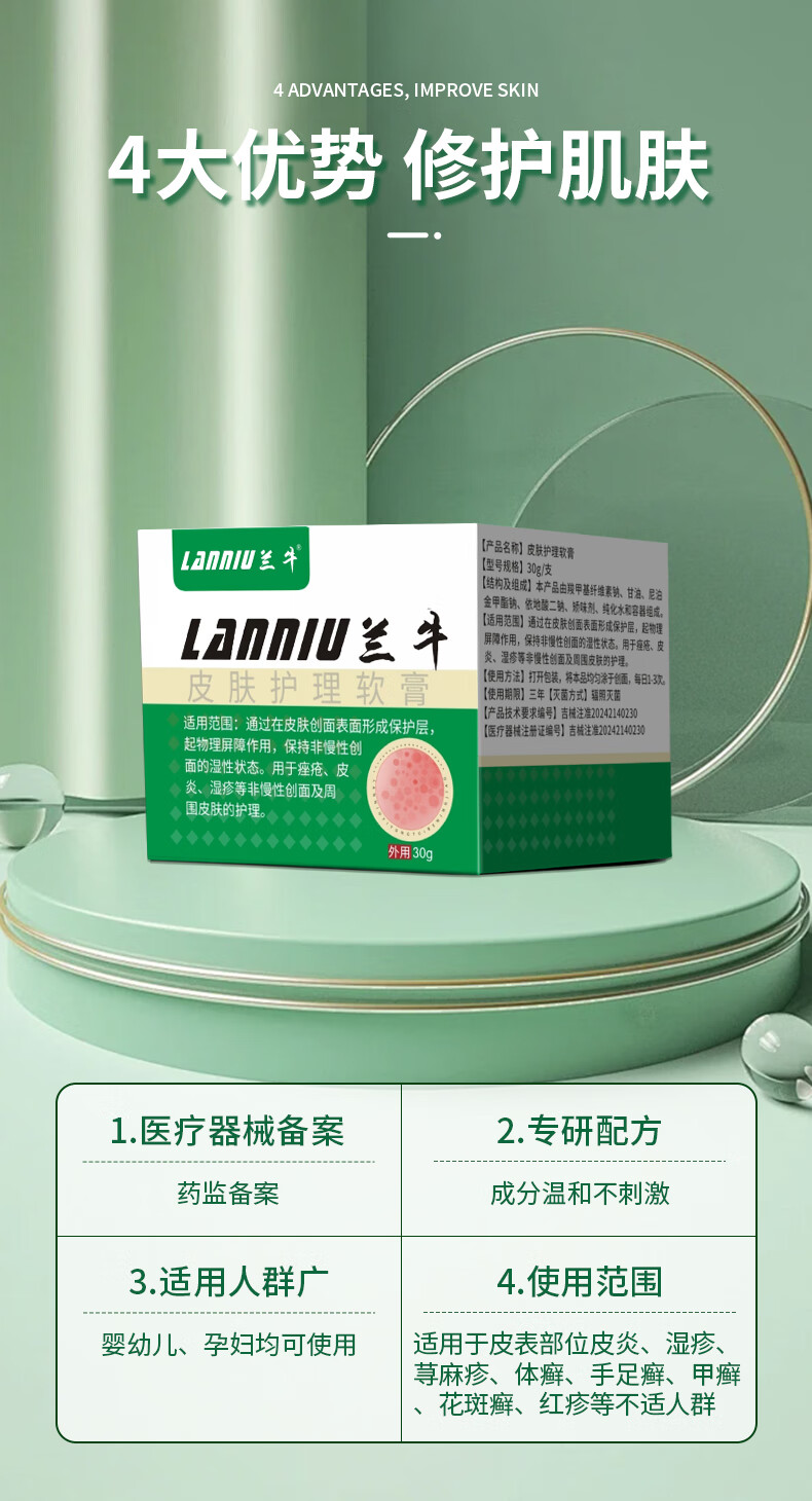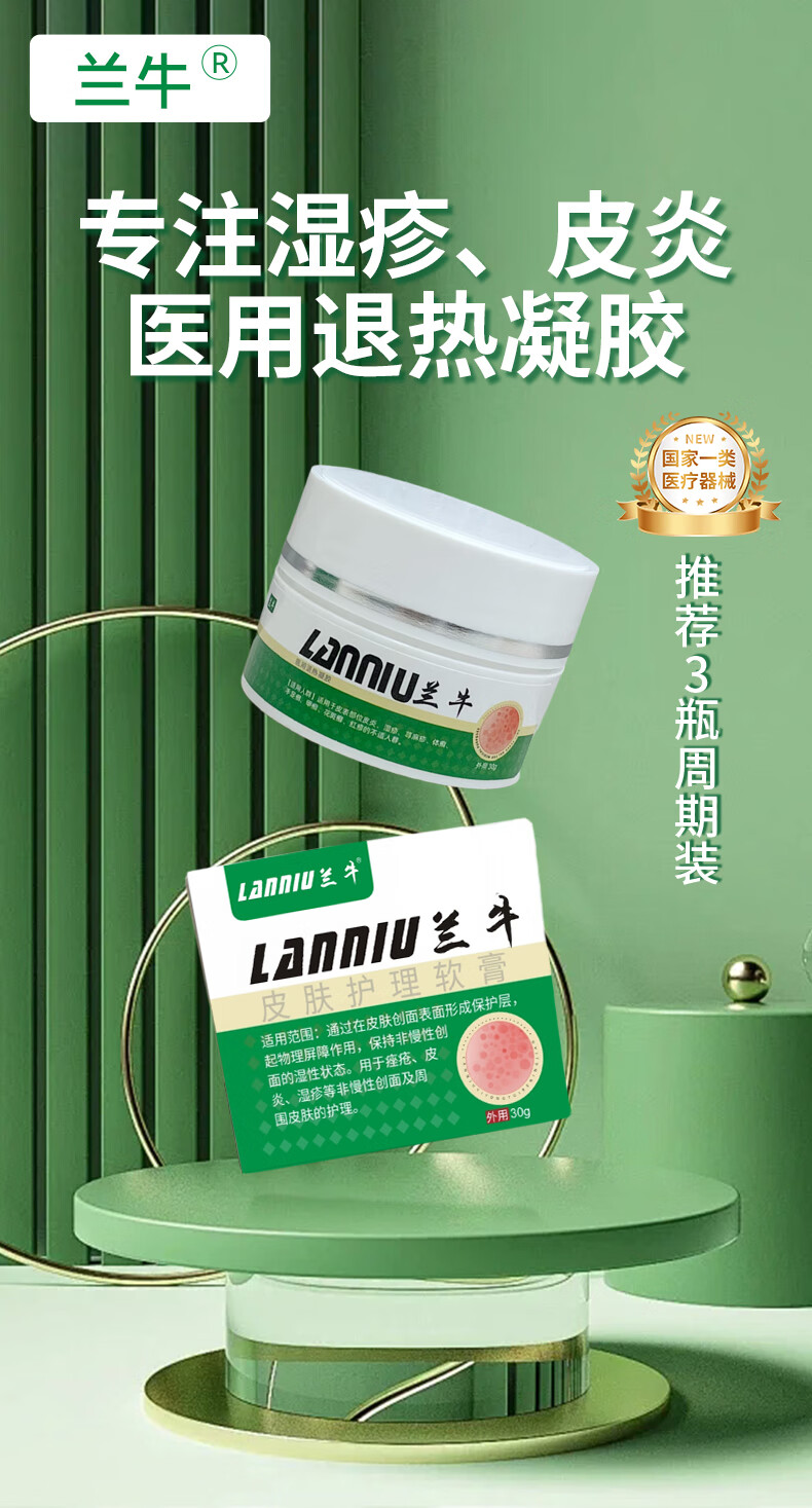 兰牛湿疹软膏医用凝胶皮炎尿布疹红屁股淹脖子口水疹奶癣痒子孕妇婴 五瓶平均每瓶82.8【巩固装】