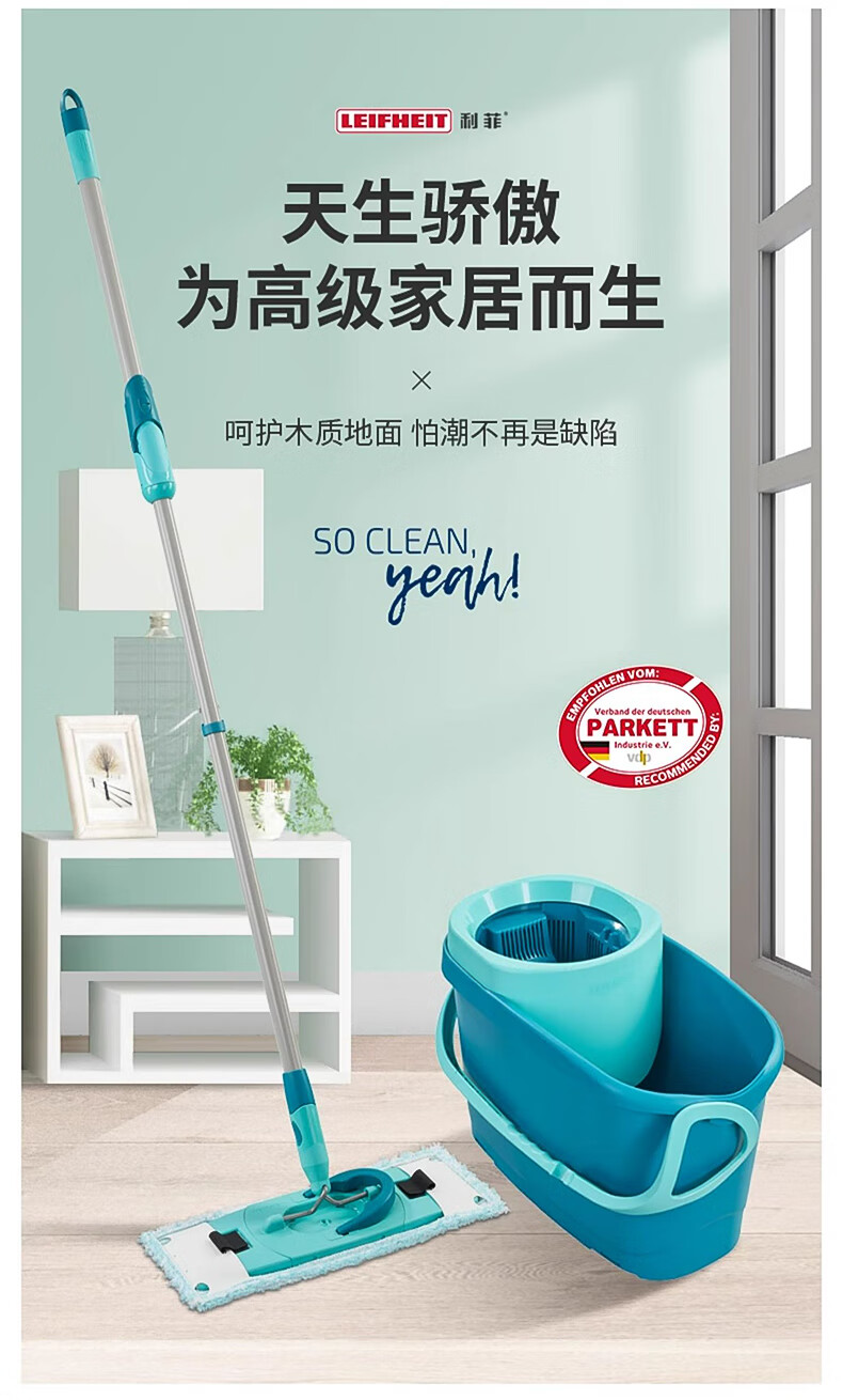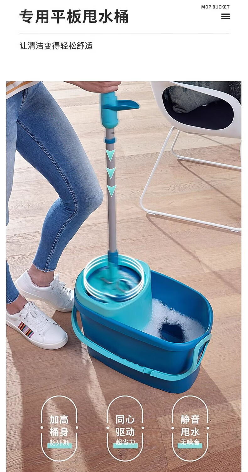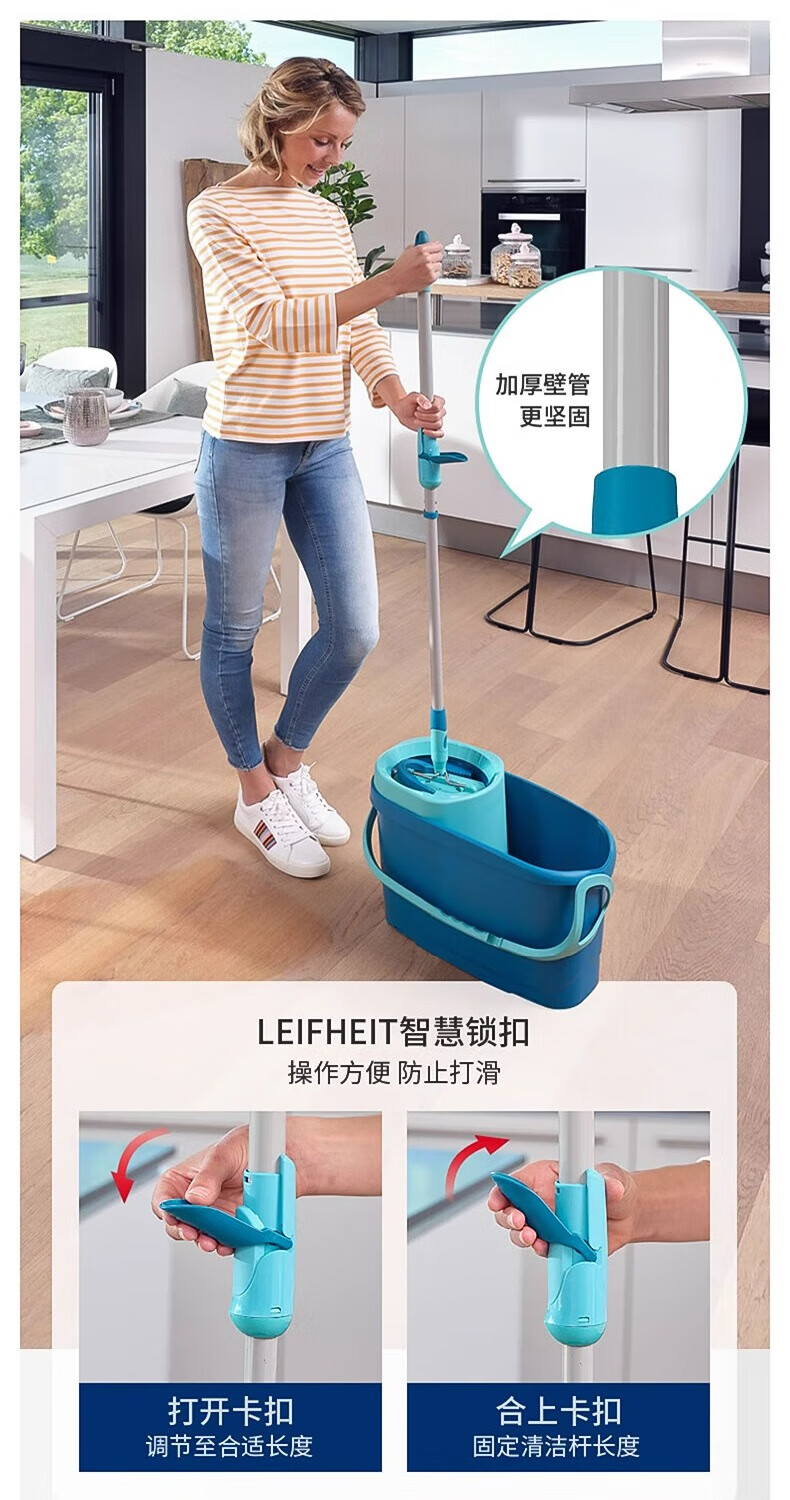 Leifheit利菲旋转平板拖把套装家用一拖净懒人洗拖布洗脱一体带桶德国进口 Twist-旋转平板拖把套装52120