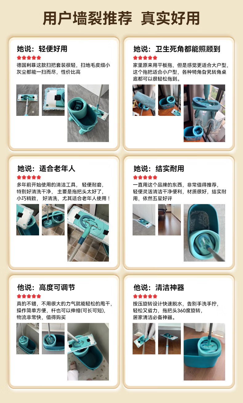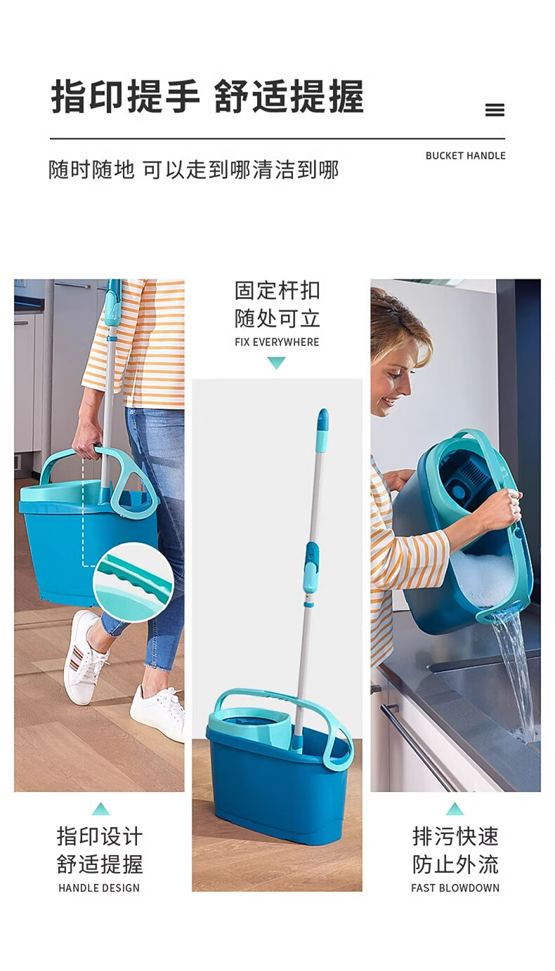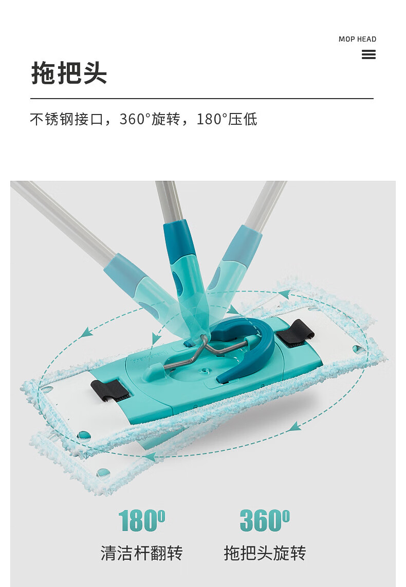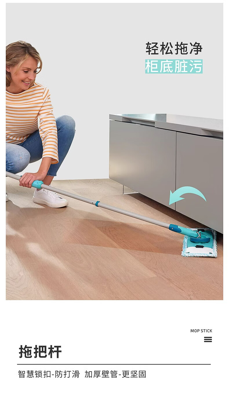 Leifheit利菲旋转平板拖把套装家用一拖净懒人洗拖布洗脱一体带桶德国进口 Twist-旋转平板拖把套装52120