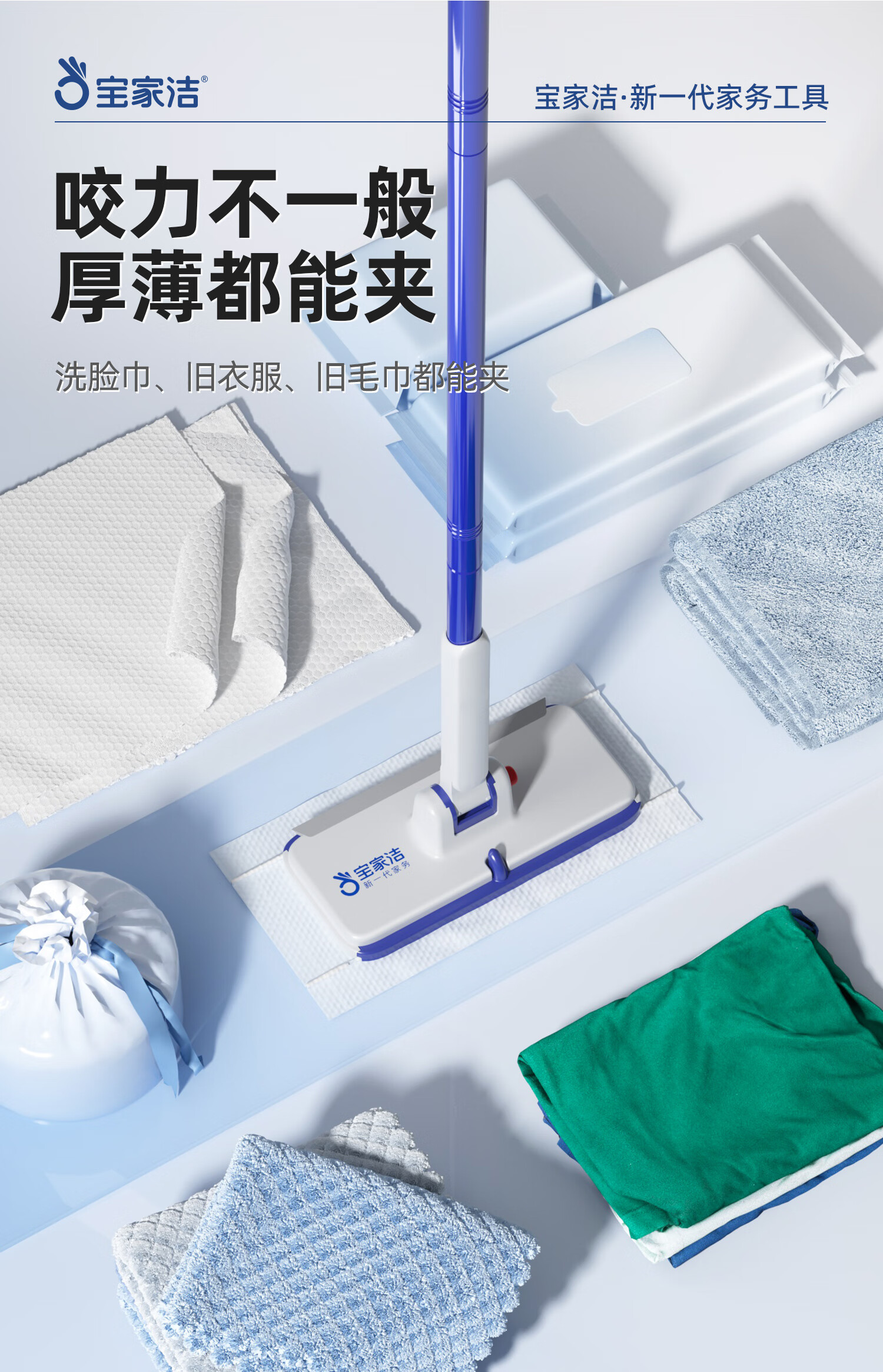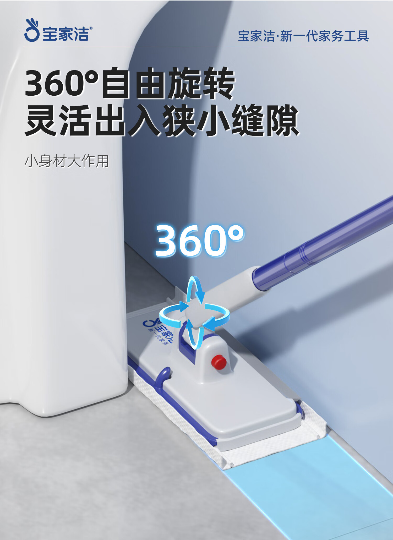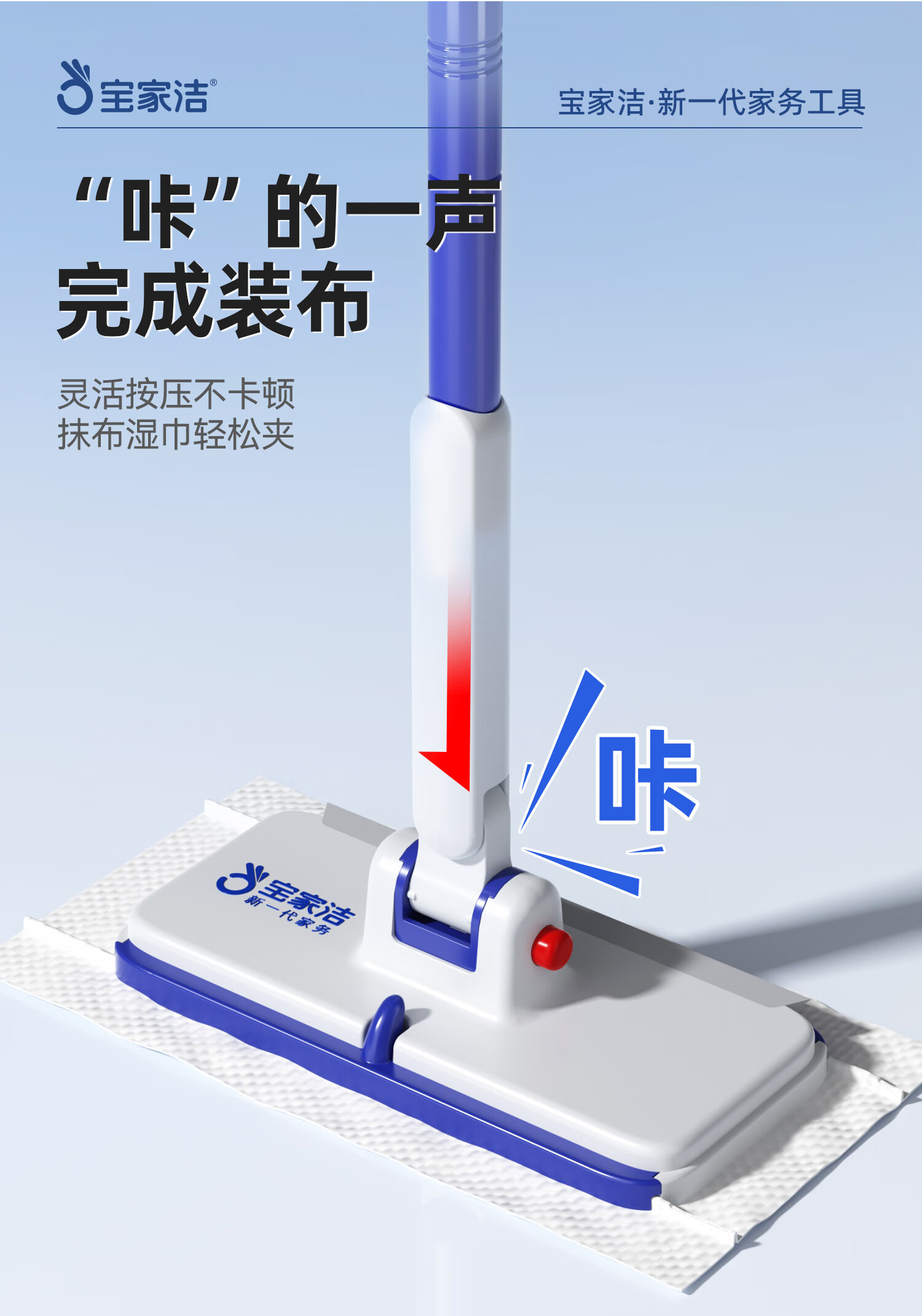 宝家洁【杨幂同款】夹布平板拖把家用一拖净免手洗2025洗脸巾拖把XE05 洗脸巾夹布小拖把+绒绒布*1