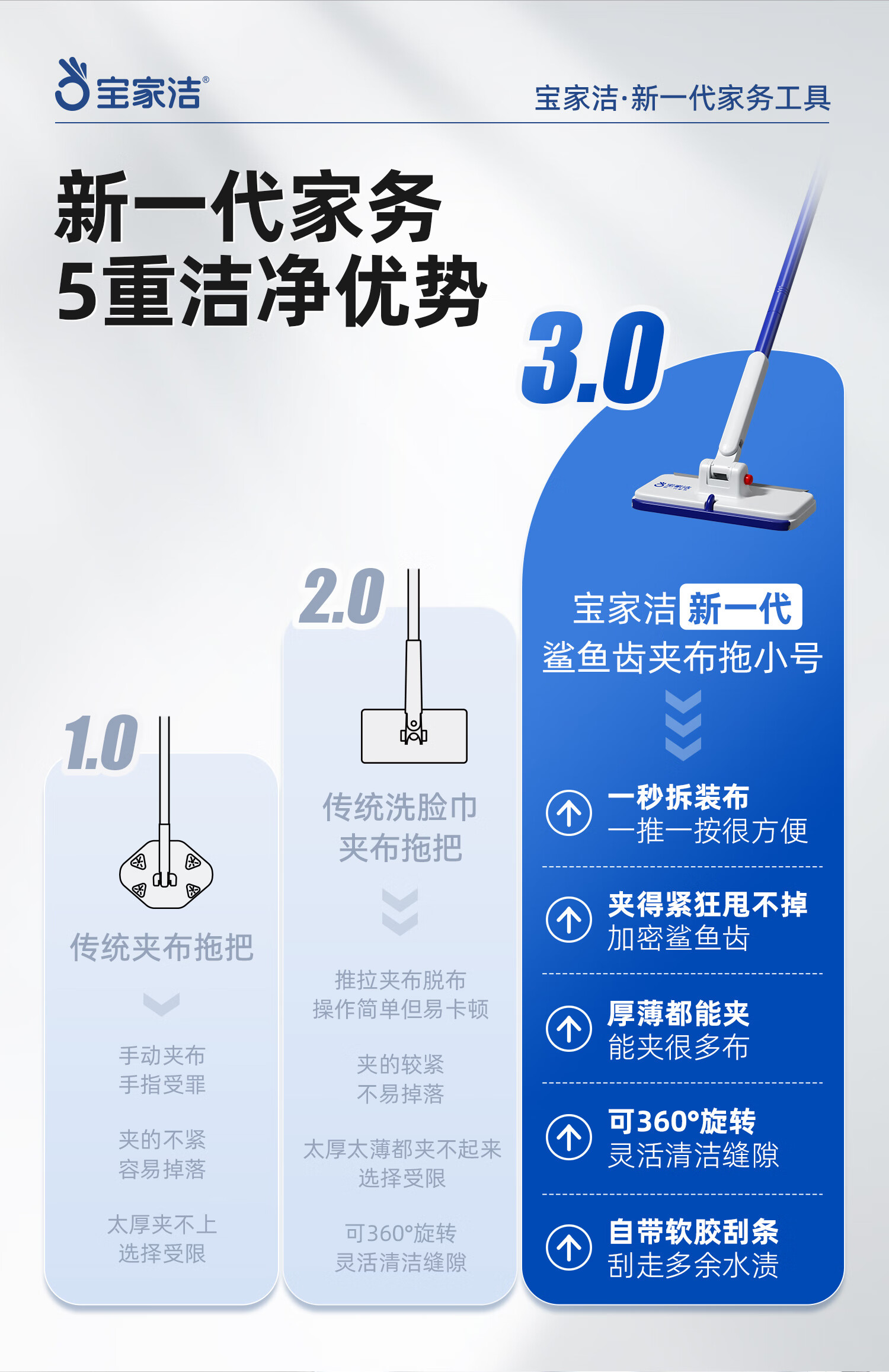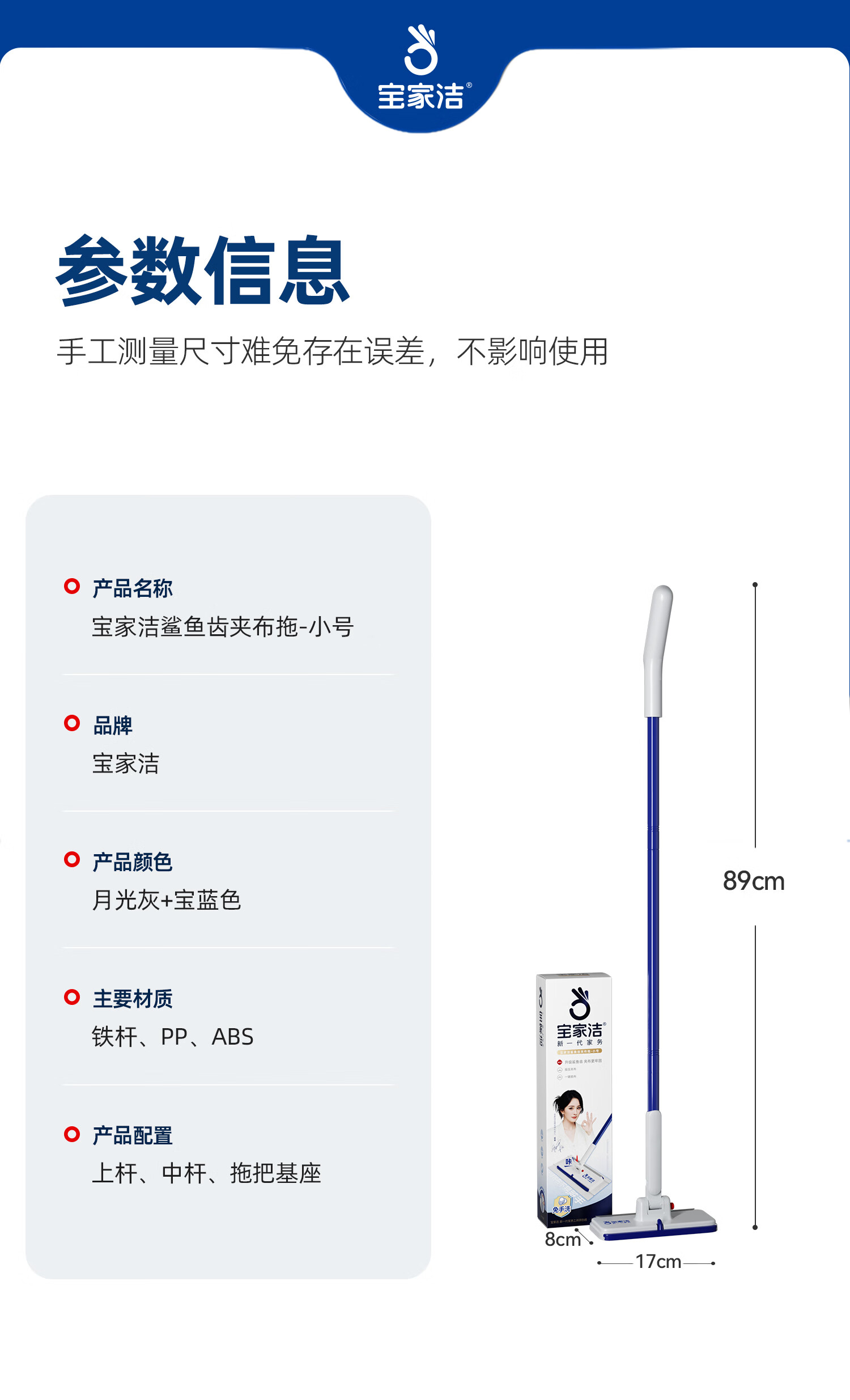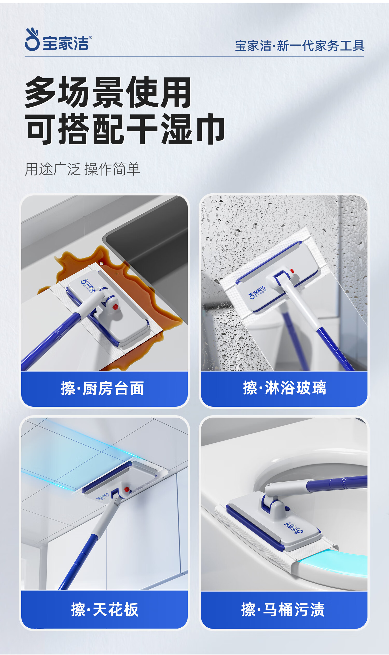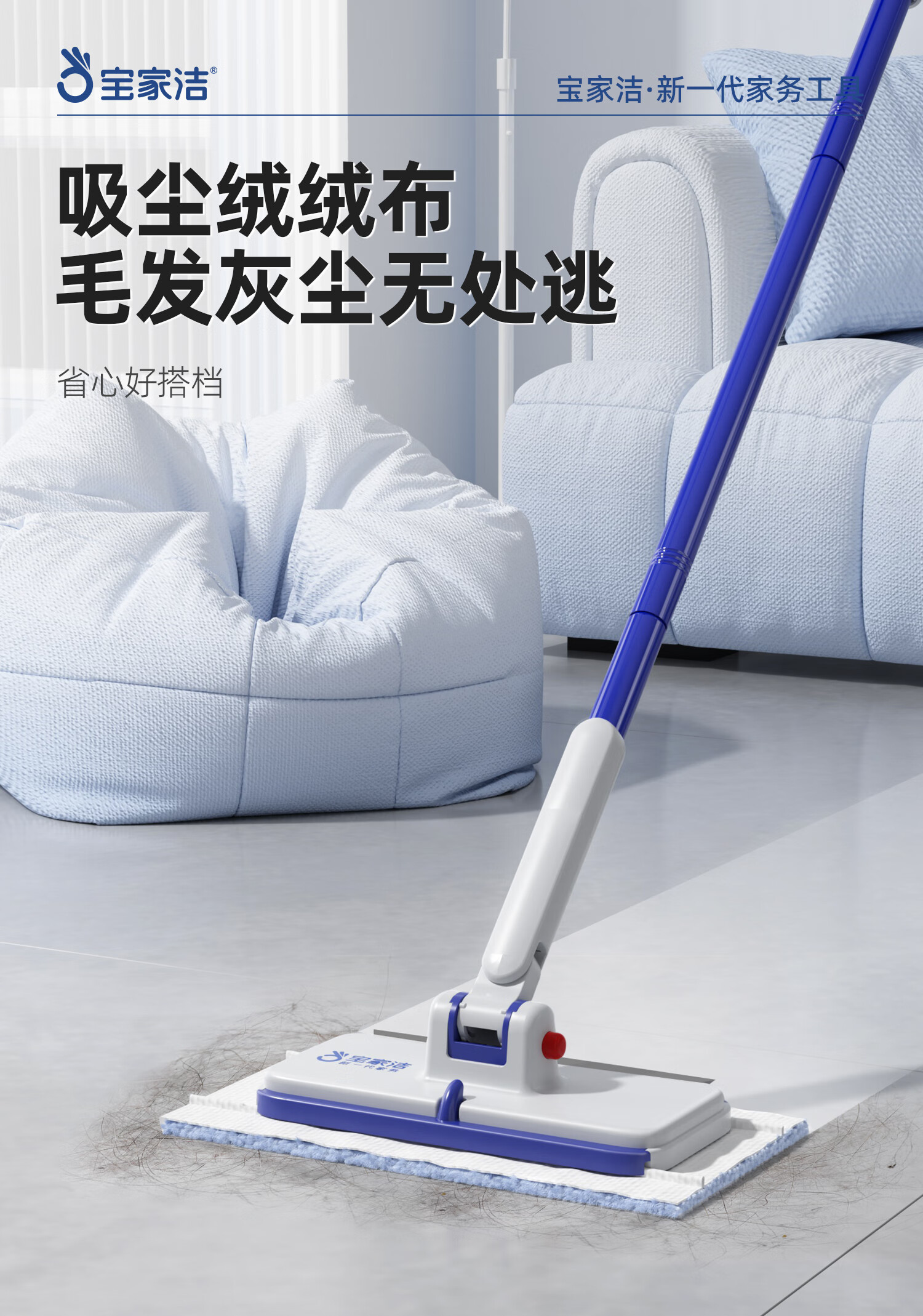 宝家洁【杨幂同款】夹布平板拖把家用一拖净免手洗2025洗脸巾拖把XE05 洗脸巾夹布小拖把+绒绒布*1
