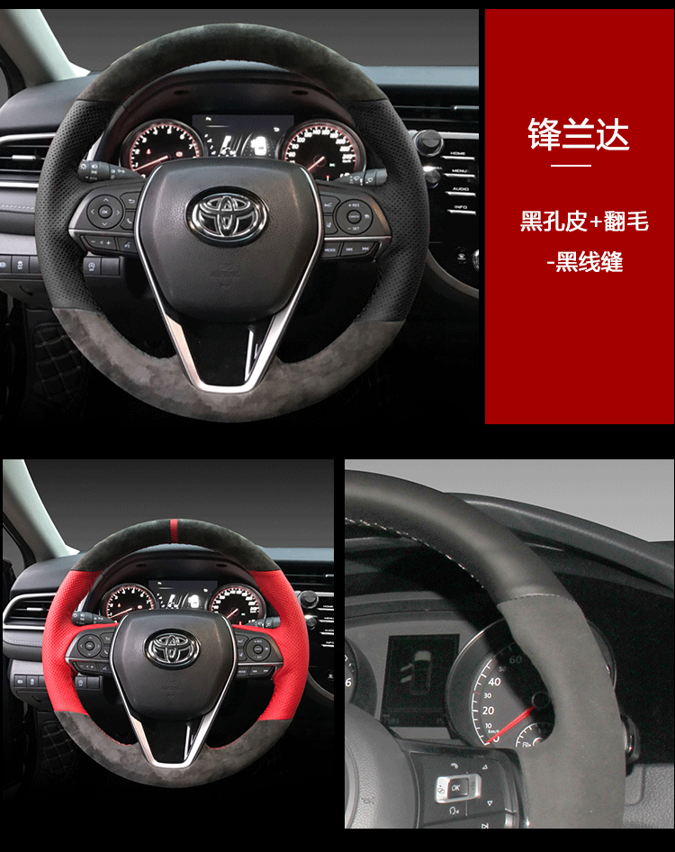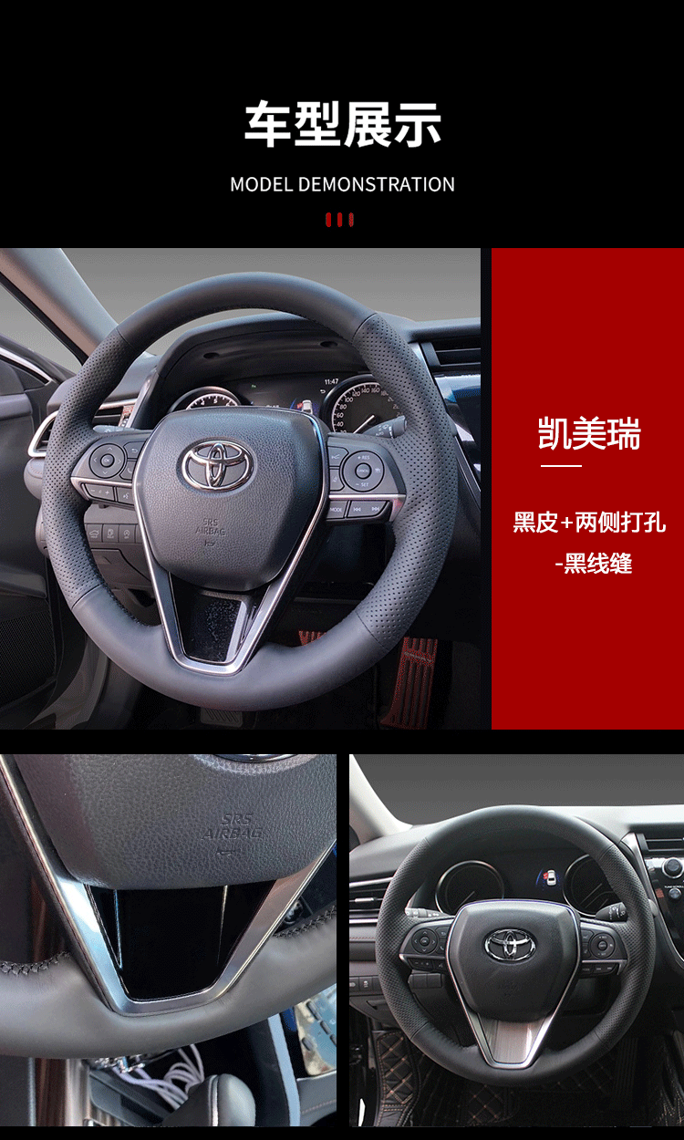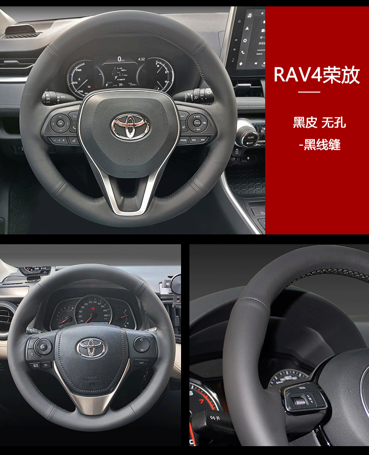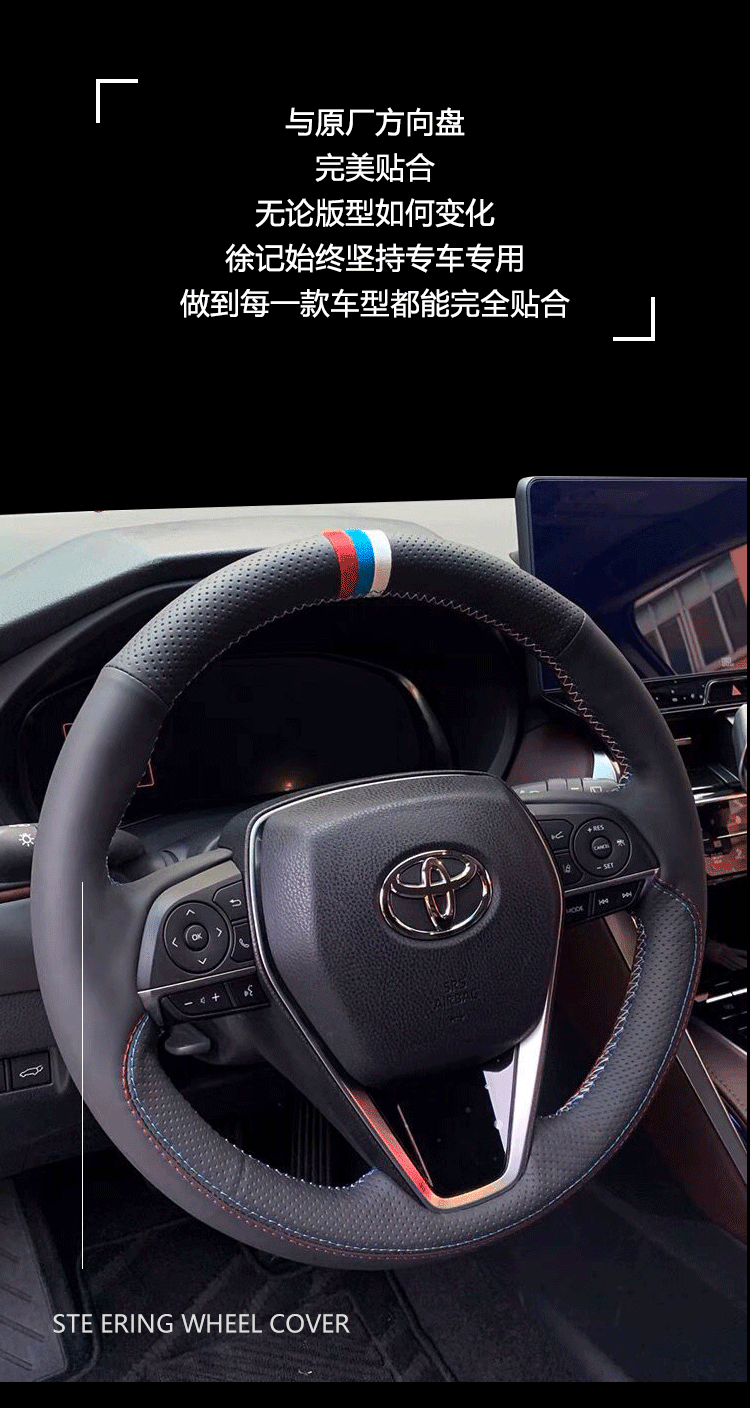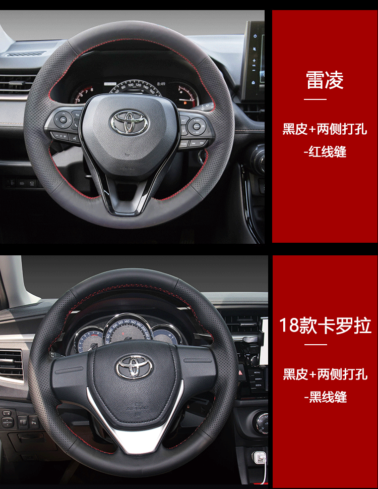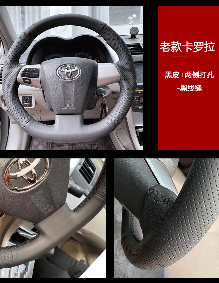 徐记手缝真皮方向盘套适用丰田雷凌卡罗拉凌放威锋兰达凯美瑞威飒凌尚 黑皮侧孔-黑线 所有车型可定制