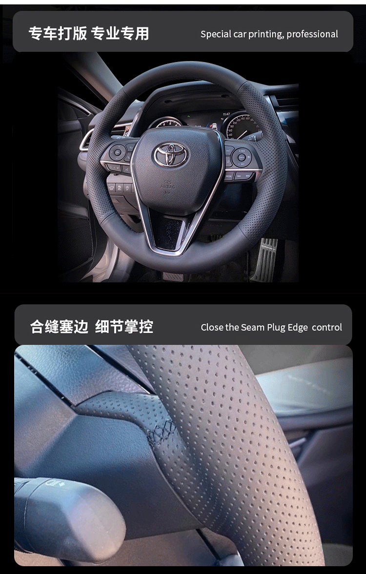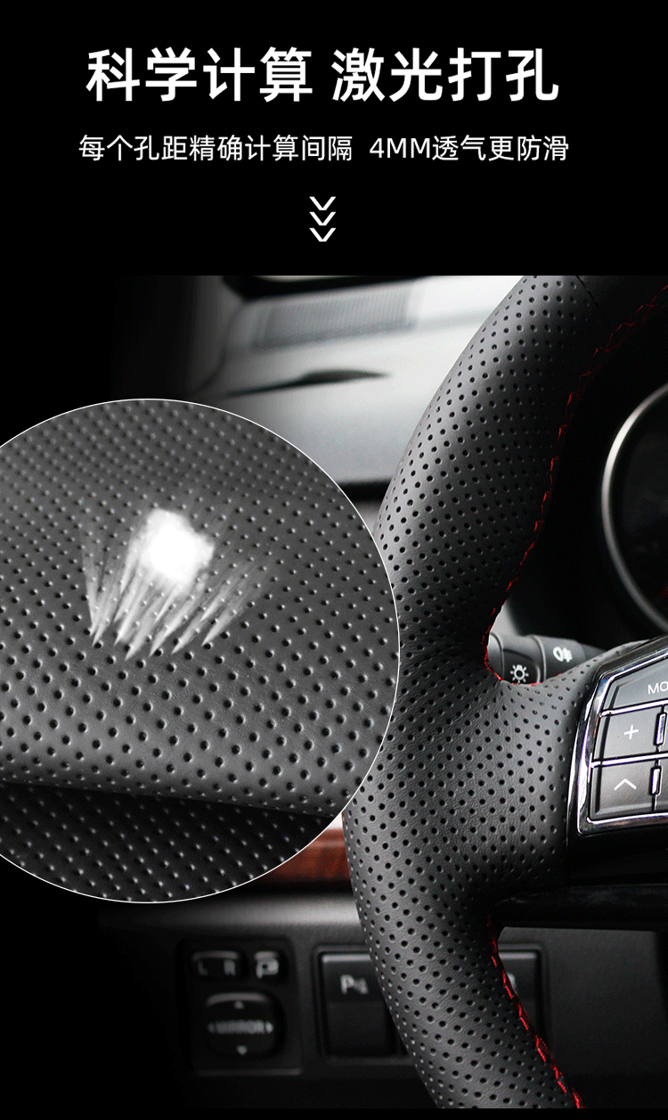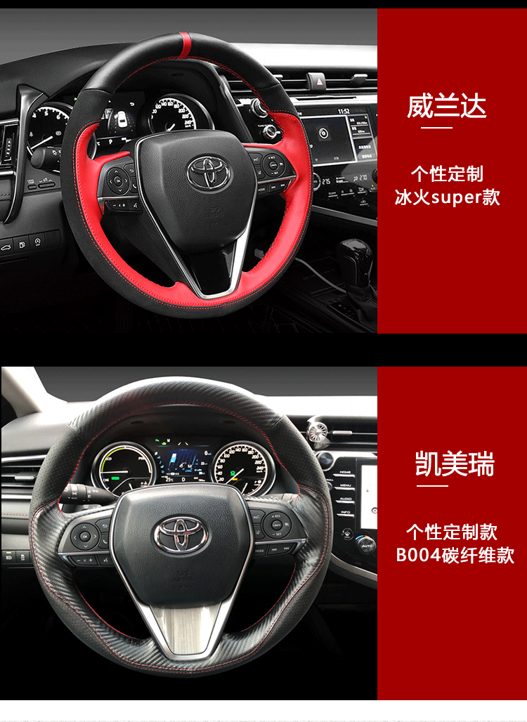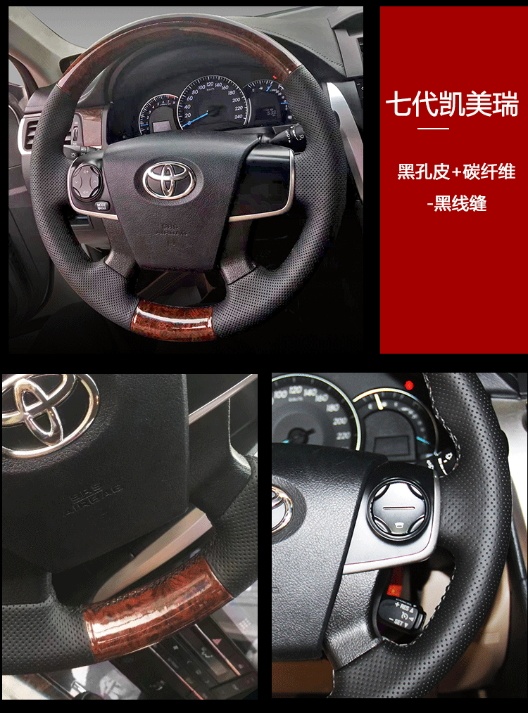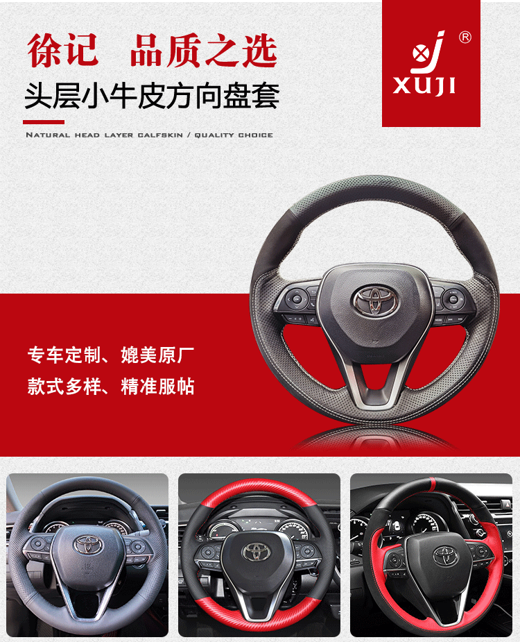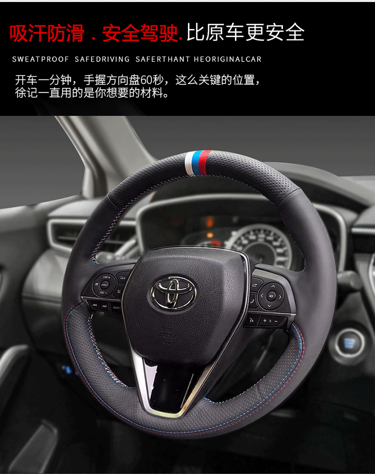 徐记手缝真皮方向盘套适用丰田雷凌卡罗拉凌放威锋兰达凯美瑞威飒凌尚 黑皮侧孔-黑线 所有车型可定制