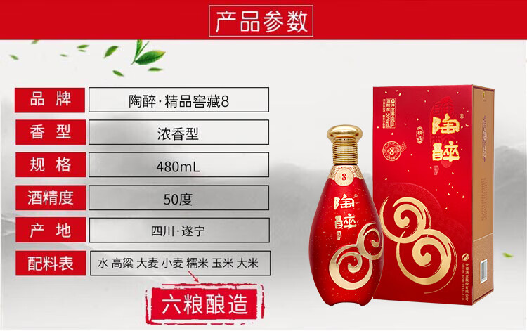 沱牌陶醉8 浓香型白酒 舍得陶醉38度 舍得酒 粮食酒 精品窖藏送礼 50度 480mL 2瓶 双瓶装(含礼袋)