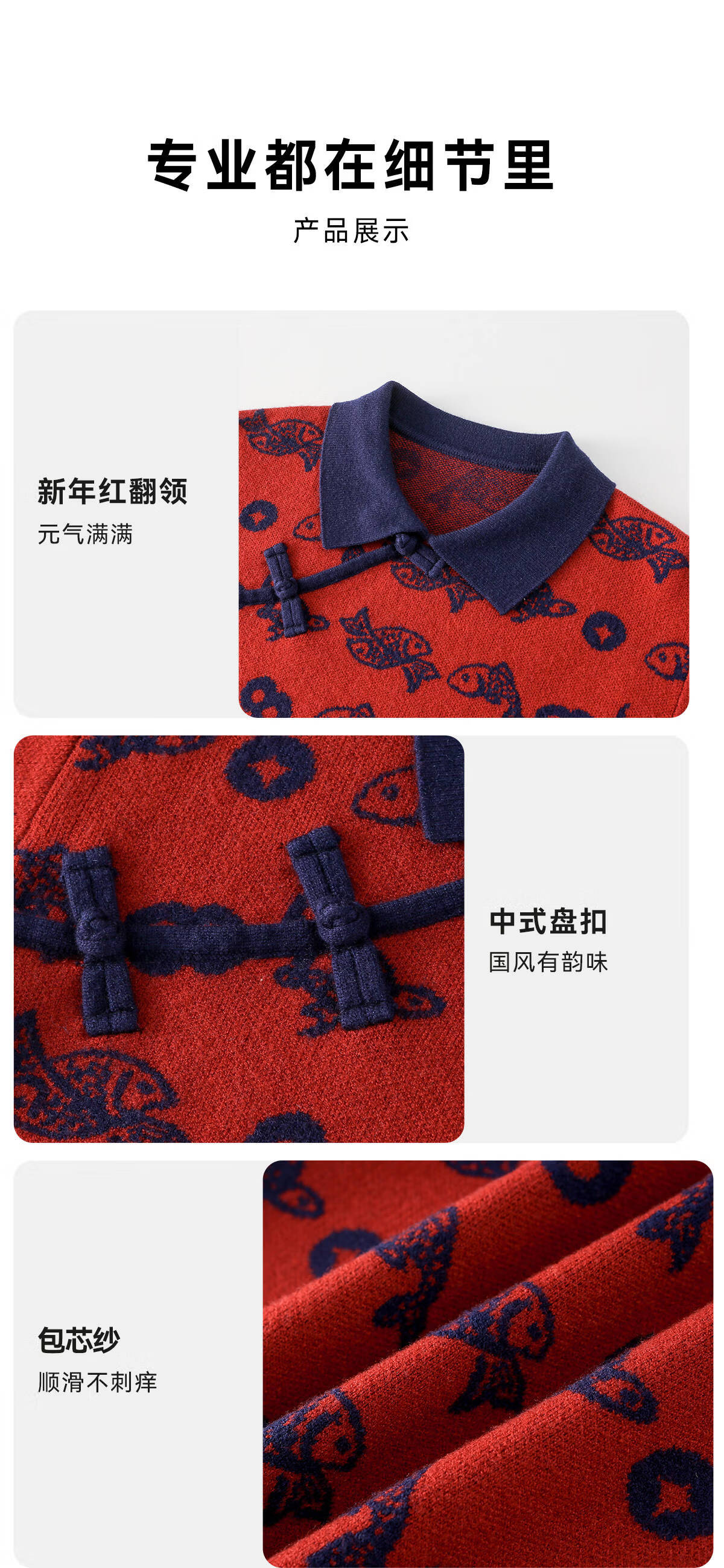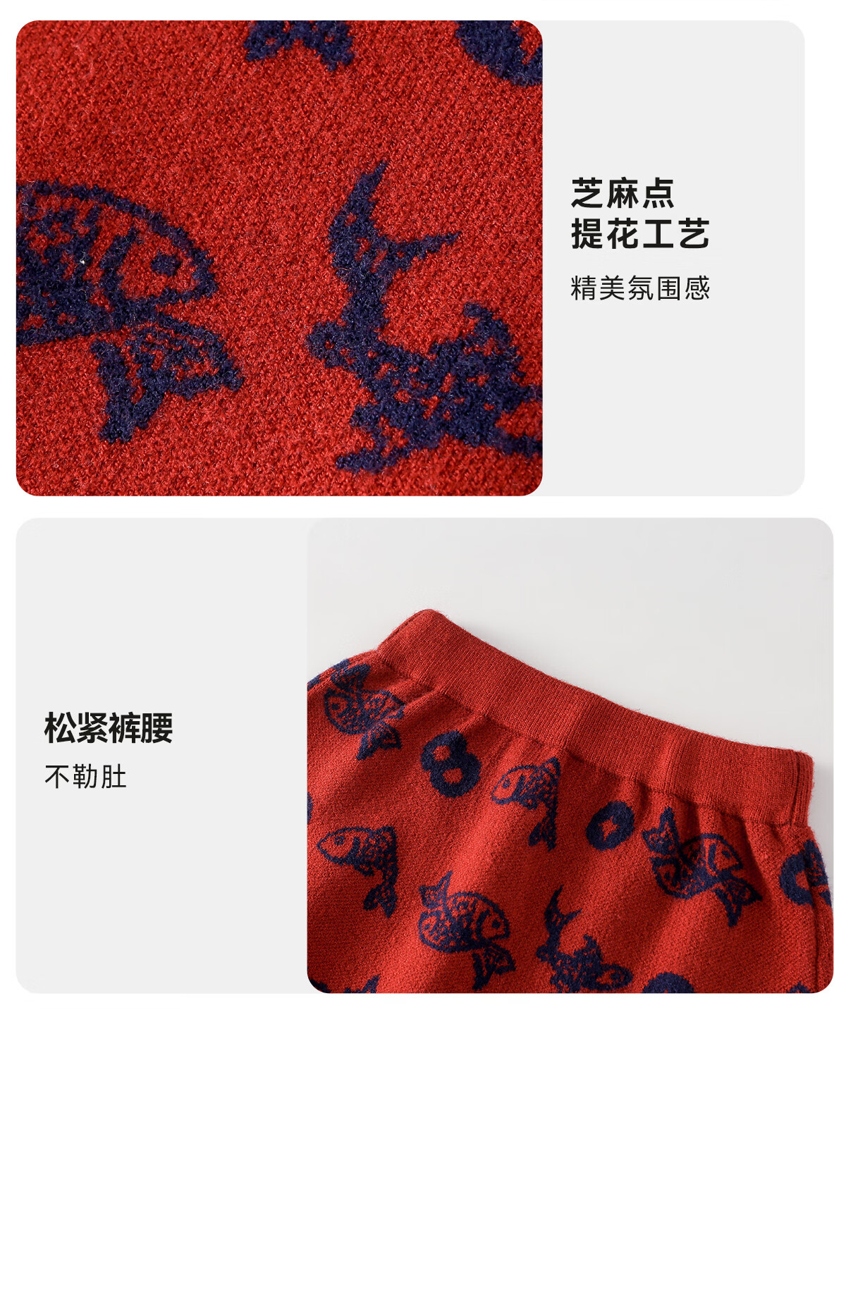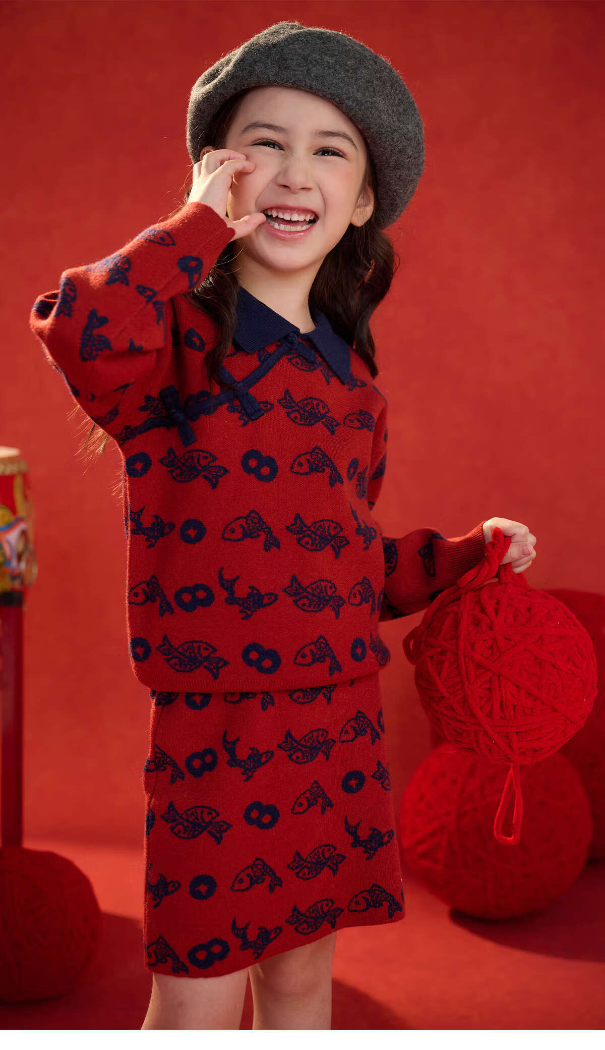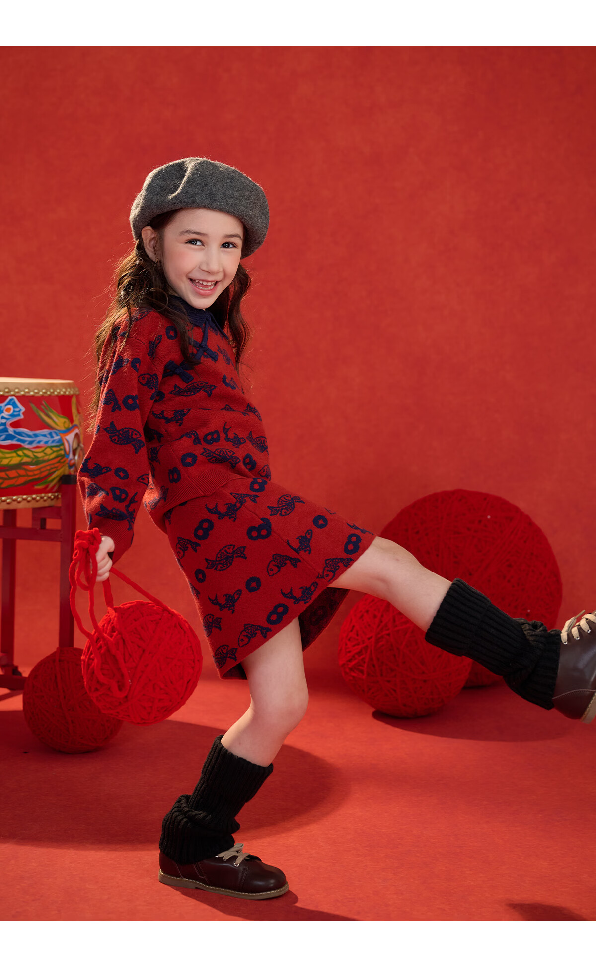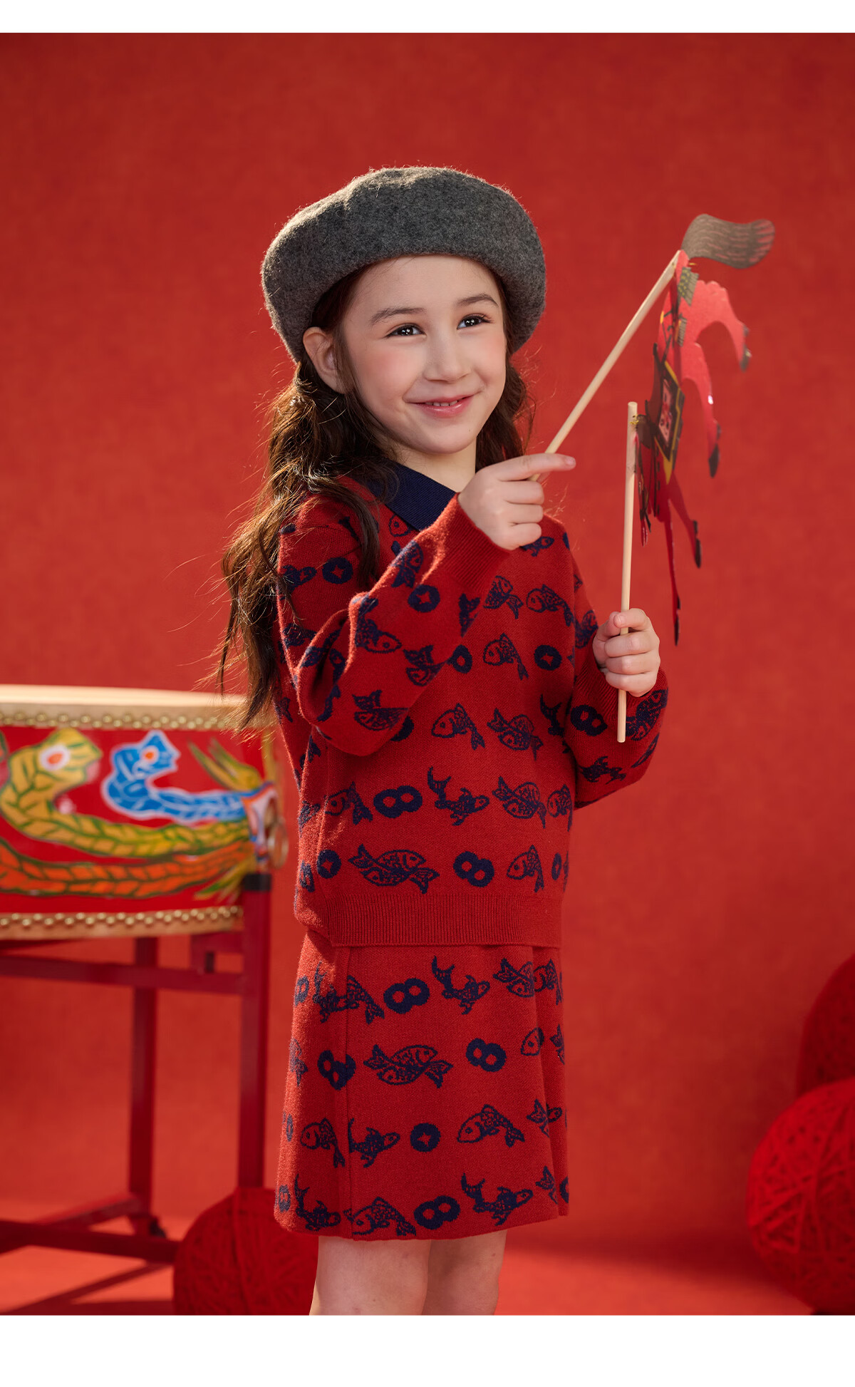 棉花堂(cottontown)【新年】棉花堂拜年服女童冬裙套装洋气红色毛衣儿童过年裙子衣服 暗红 140 140/68