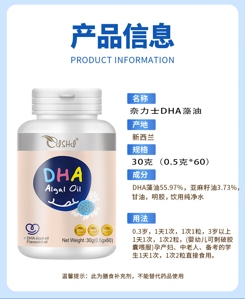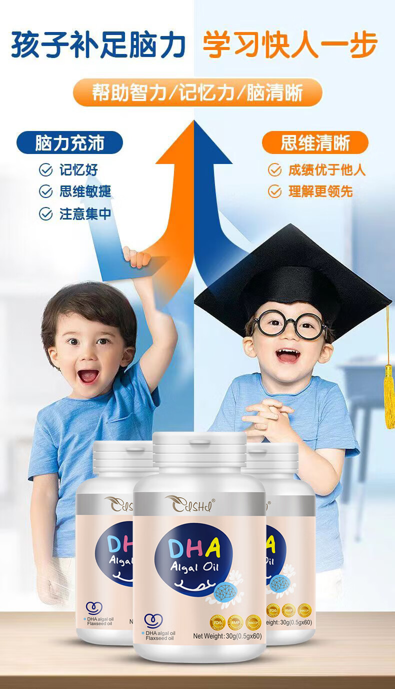 奈力士进口儿童dha学生青少年6-18岁高中生搭补脑提神增强加记孕妇忆力 1瓶装【买3瓶送1瓶,超划算】