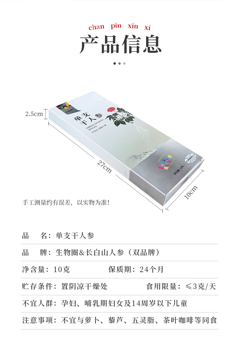 长白山人参 活性冻干人参盒装送手提袋 健康煲汤泡水泡酒节日礼品盒 活性冻干人参4盒赠2个礼袋