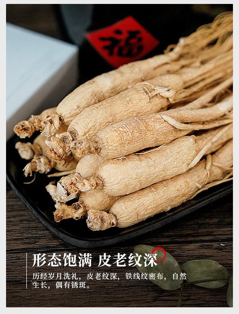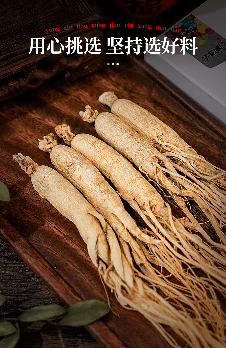 长白山人参正宗生晒参东北特产干人参 富含人参皂苷泡酒煲汤节日礼品参 【精选全须生晒参4盒】另赠2个礼袋(20g/盒)