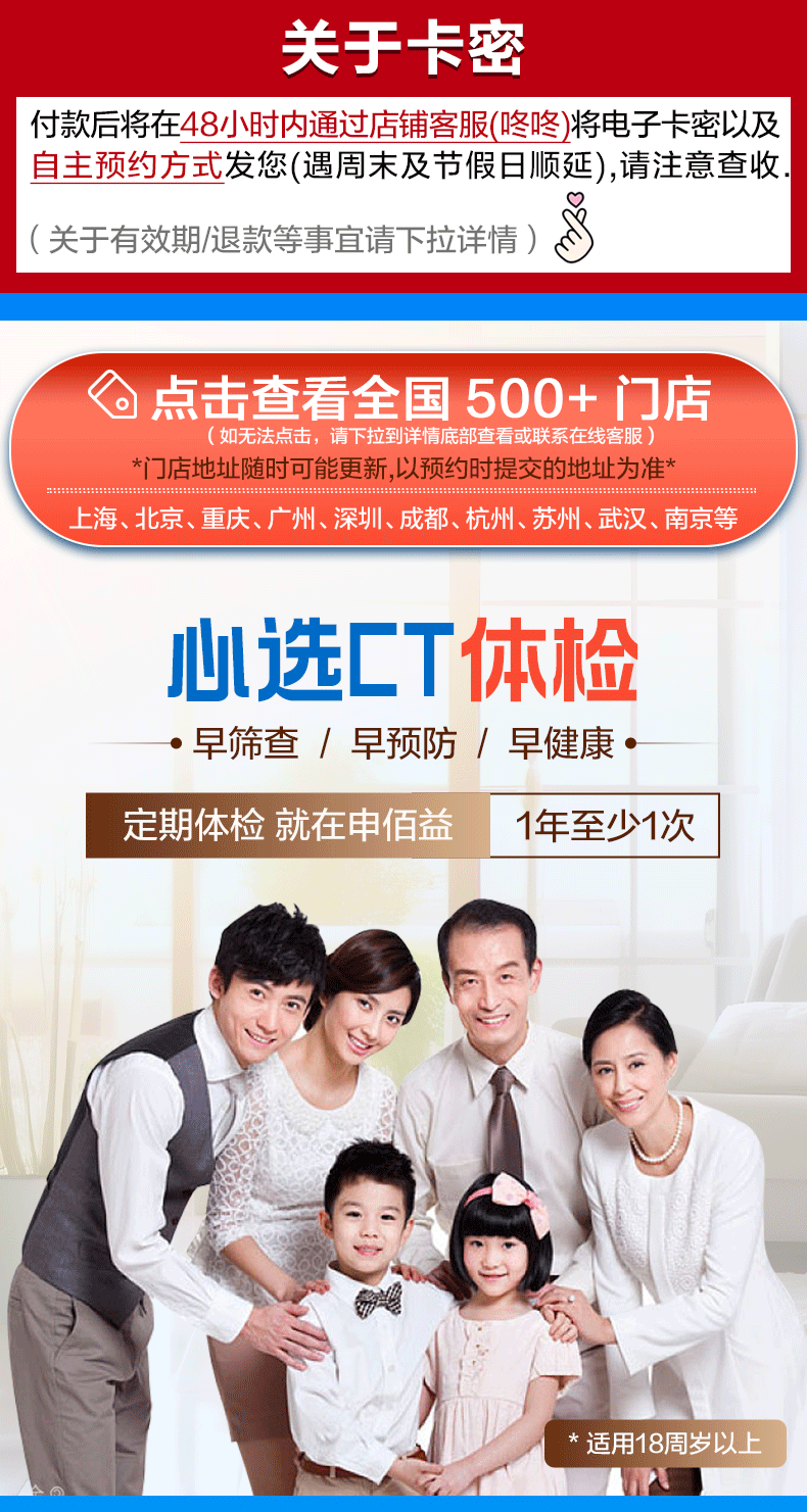 美年大健康瑞慈体检套餐中青老年父母全家通用体检套餐男女士体检卡全国体检中心上海北京成都 CT版体检套餐RY138-【美年/瑞慈】