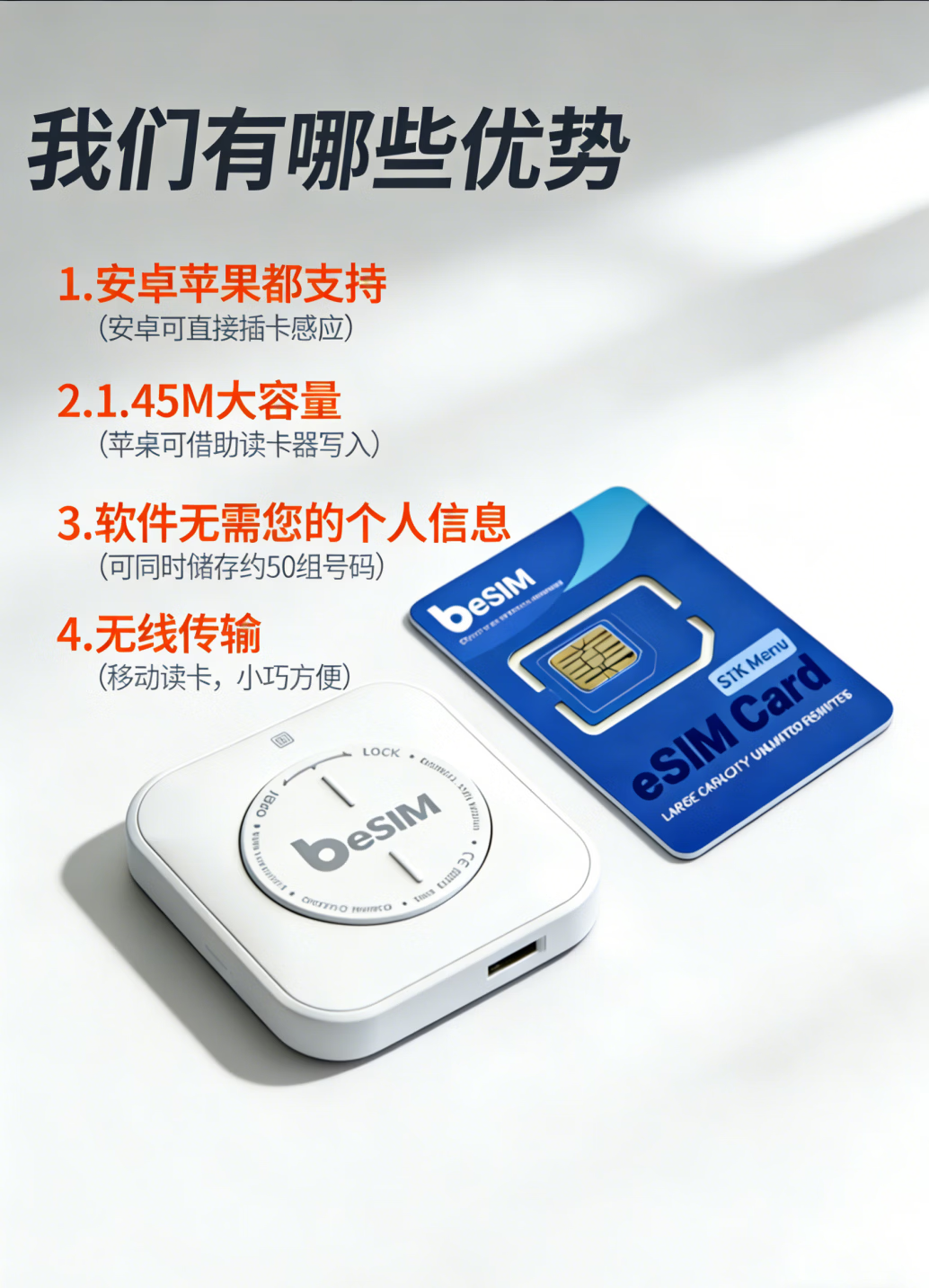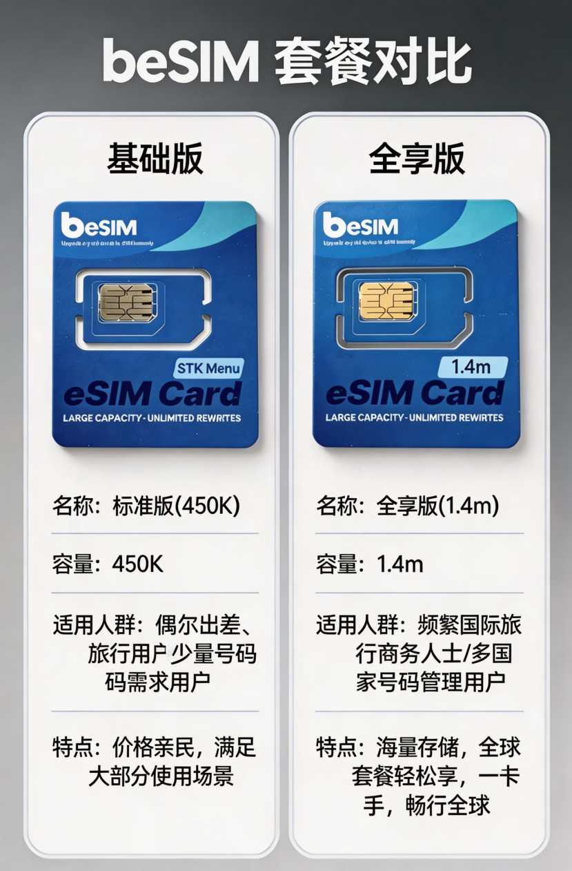 beSIM倍塔信eSIM卡套装/安卓苹果通用/高颜值eSIM卡/商务旅游必备 450K eSIM卡