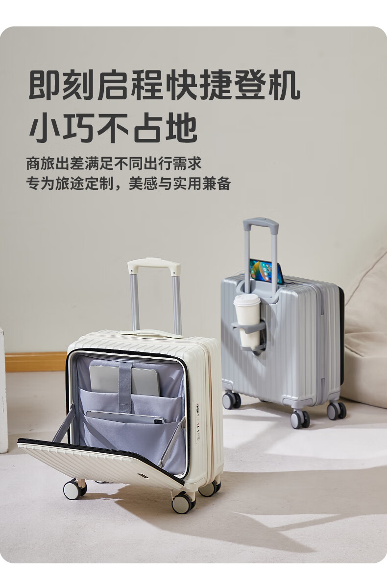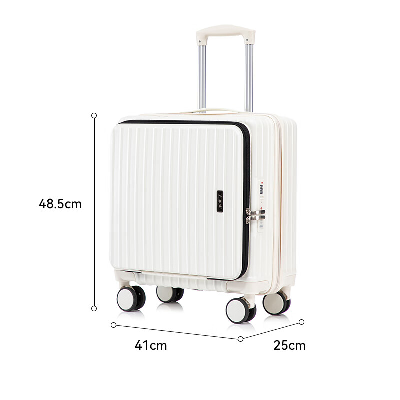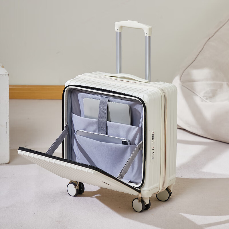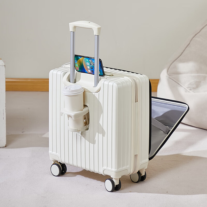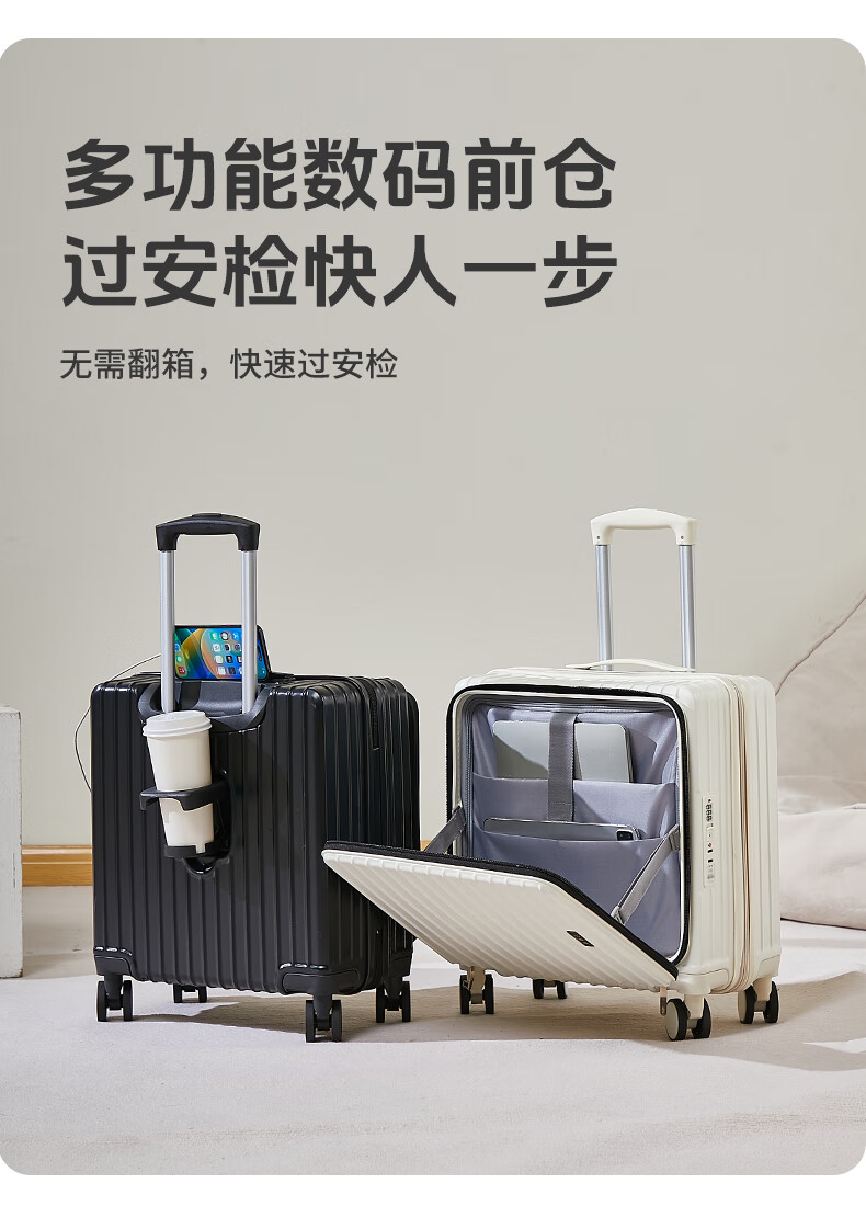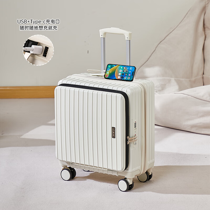 广璐迪(GUANG LU DI)前开盖深舱免托运行李箱拉杆箱小型旅行箱男大容量密码登机箱包女 一九开深舱款/米白色-加厚电脑层 18英寸 干湿分离+杯架+双充电孔