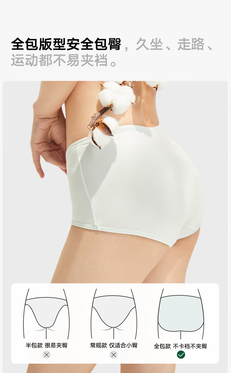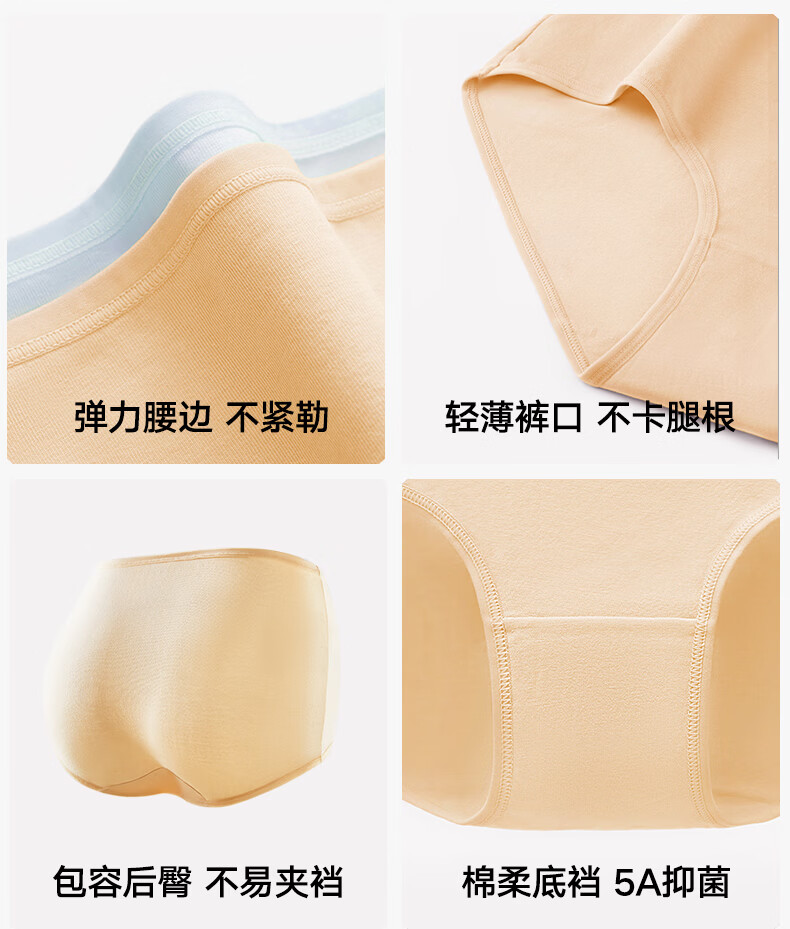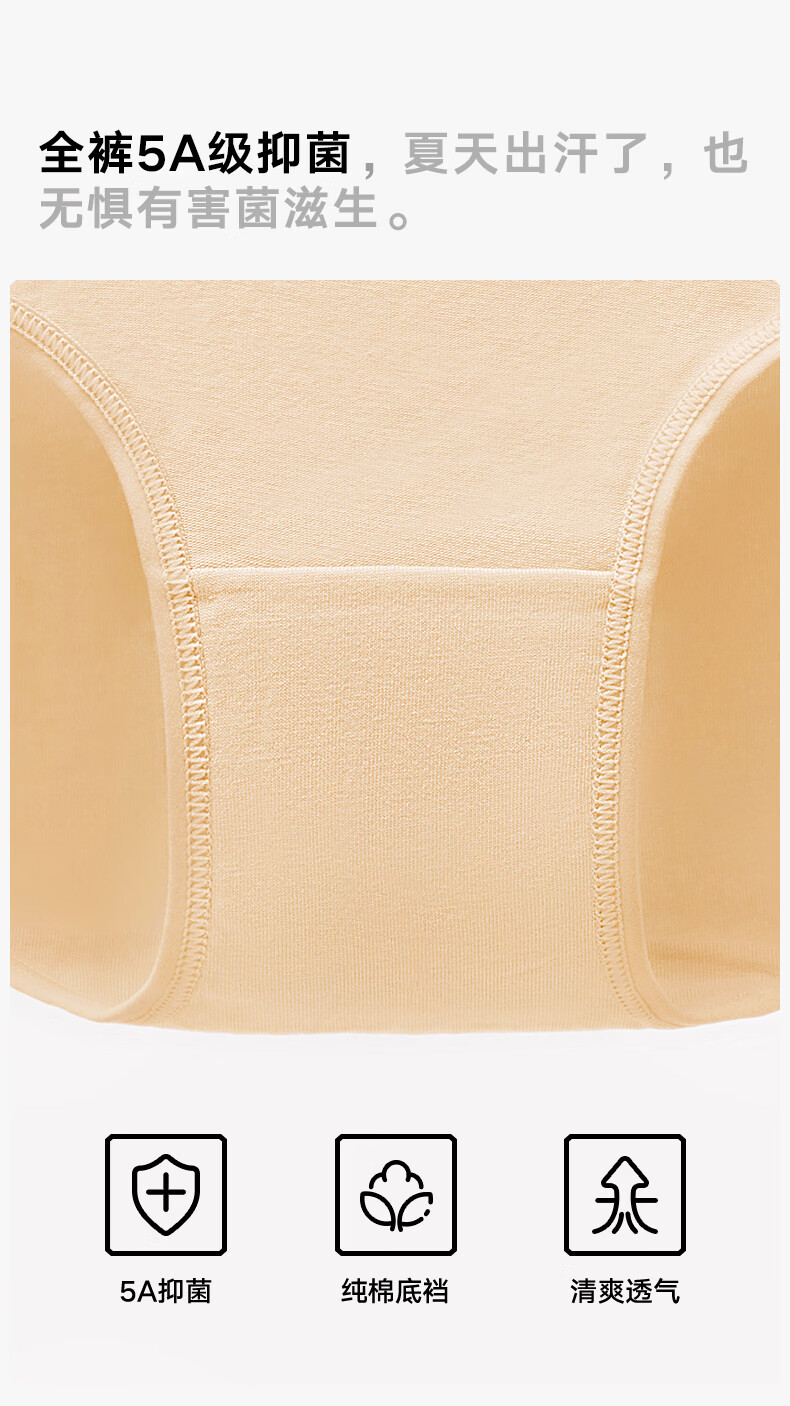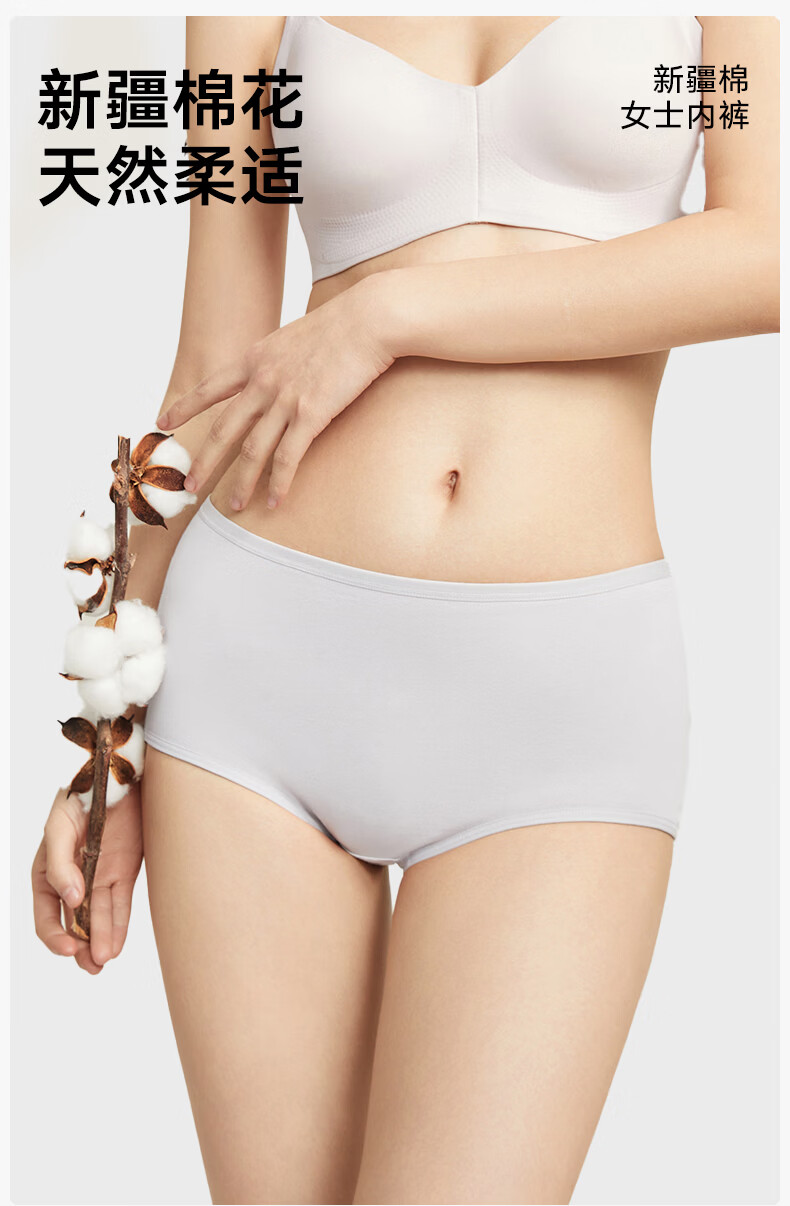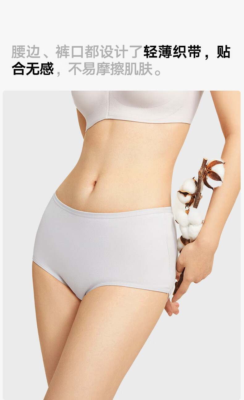 松山棉店 特护级新疆棉内裤女全棉加长底裆全裤抑菌透气不夹臀三角裤柔软 肤色+淡粉色+兰花紫 L (165)