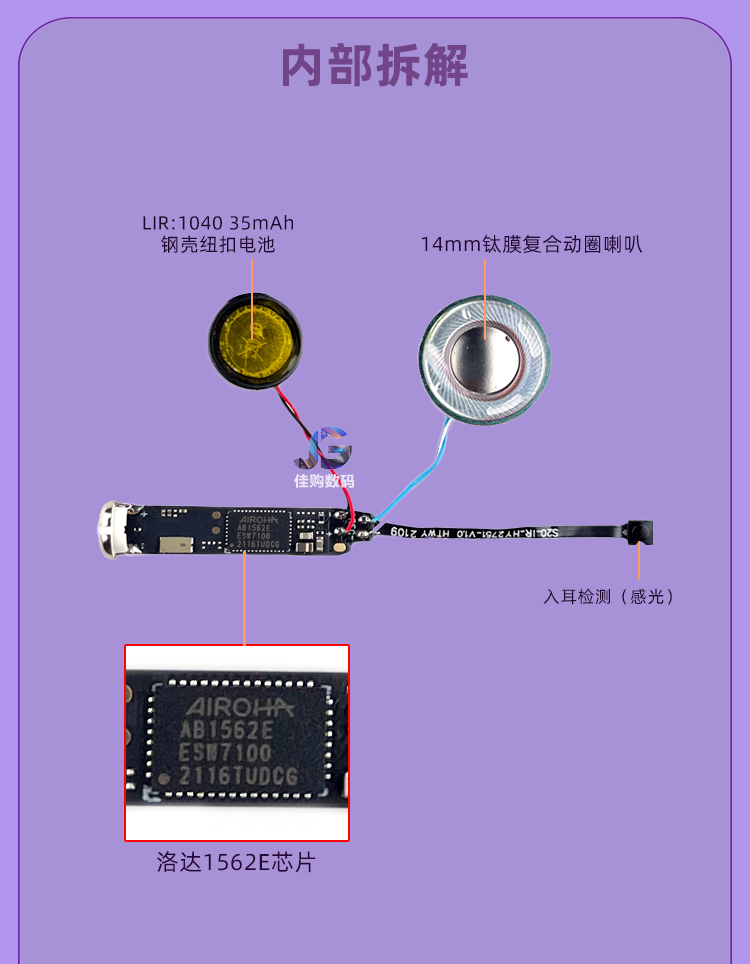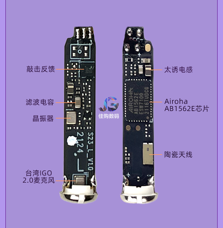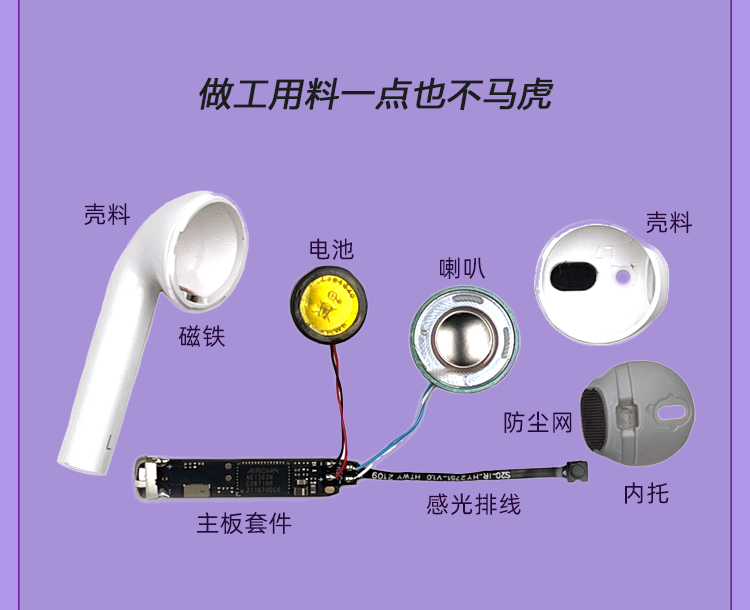 率先者蓝牙耳机适用vivos30/s20/s19/s18/s17/s16/s12手机半入耳式无线 浅紫色 适用vivo全系列手机通用降噪耳机