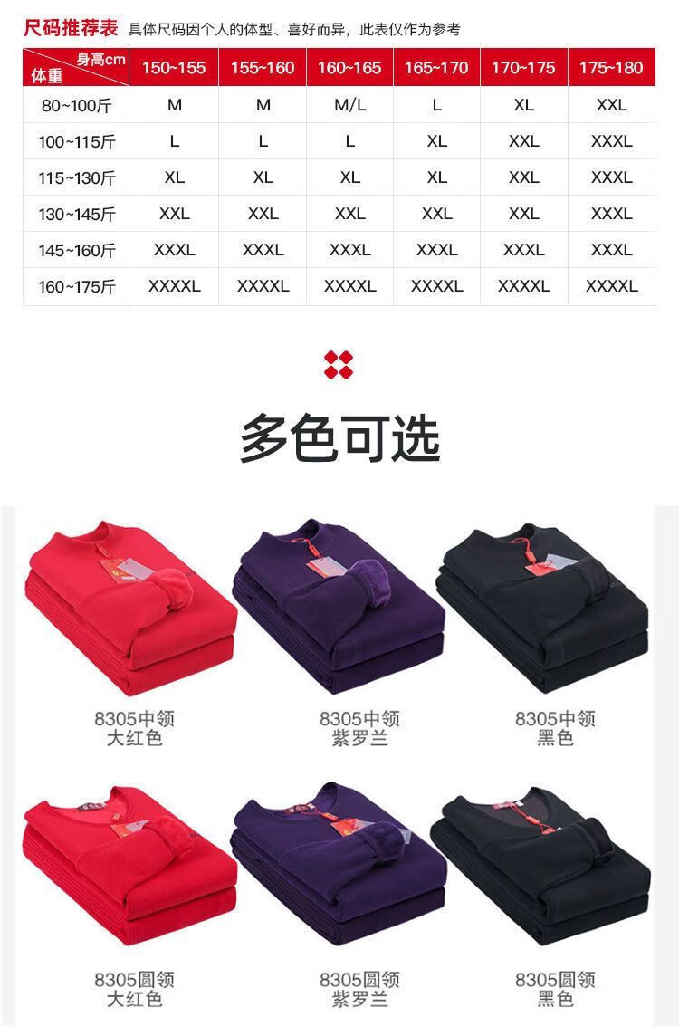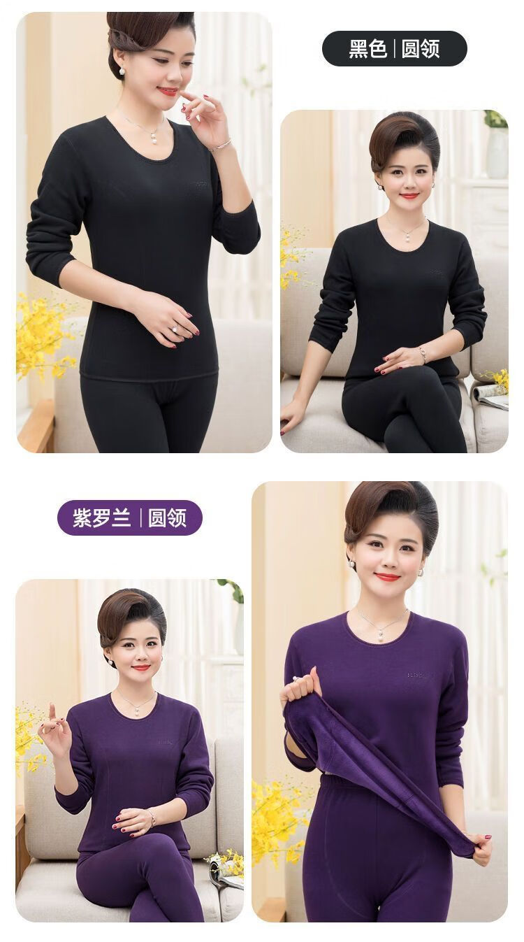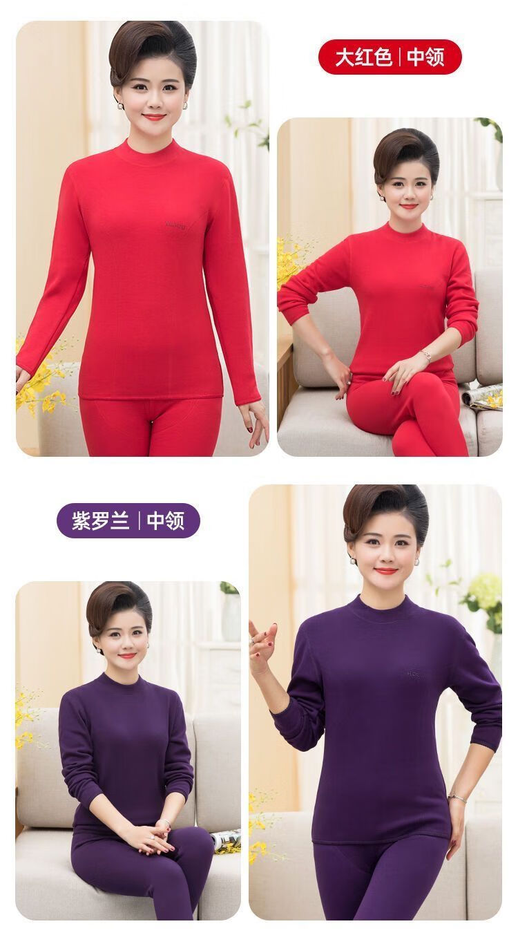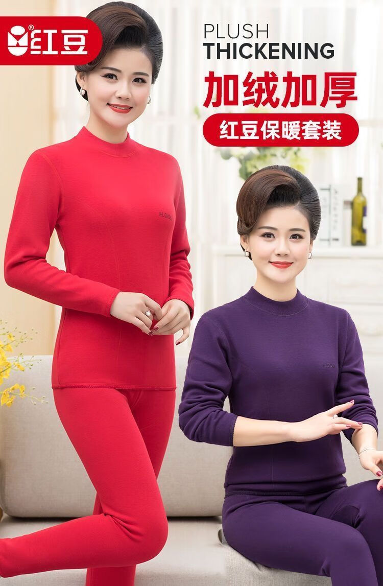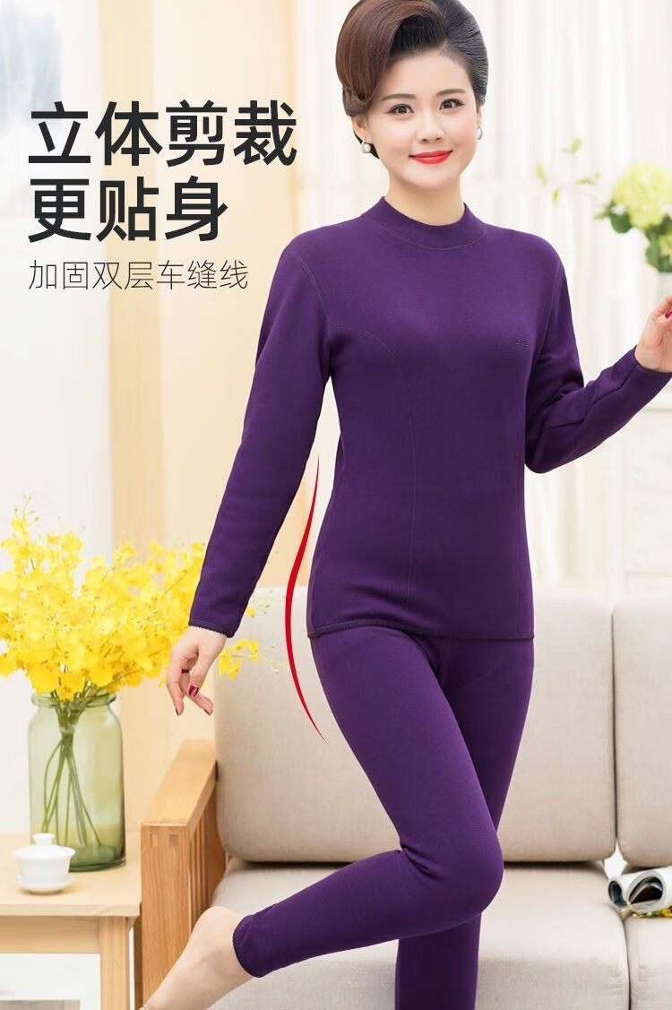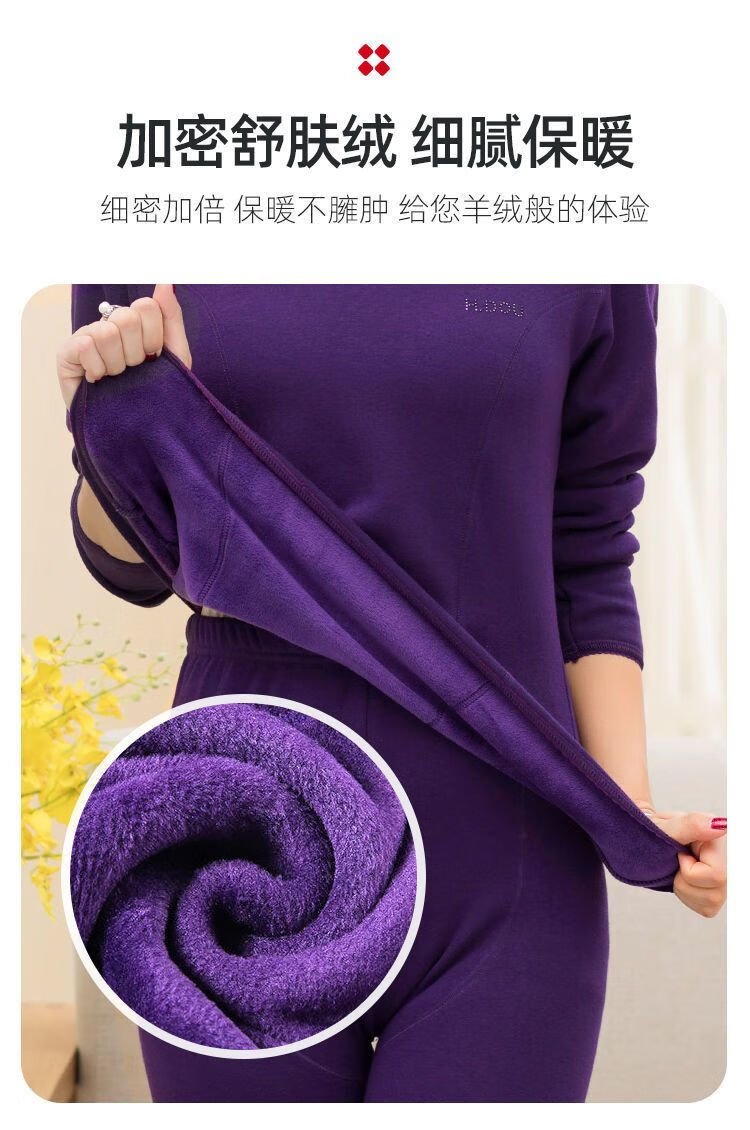 红豆加厚保暖内衣套装加绒抗寒女士中领圆领中老年棉毛衫秋衣秋裤冬季 中领-紫罗兰【加绒加厚 礼盒套装 XL /170 【115-130斤】