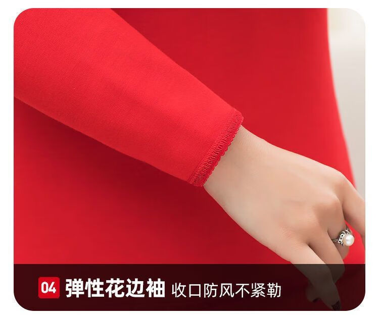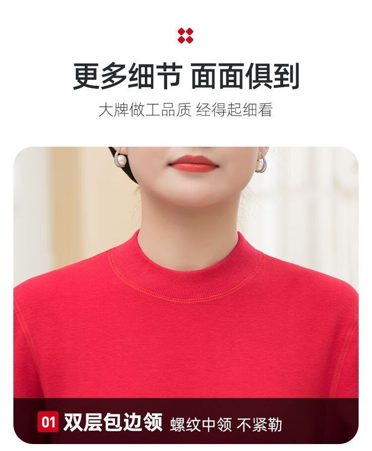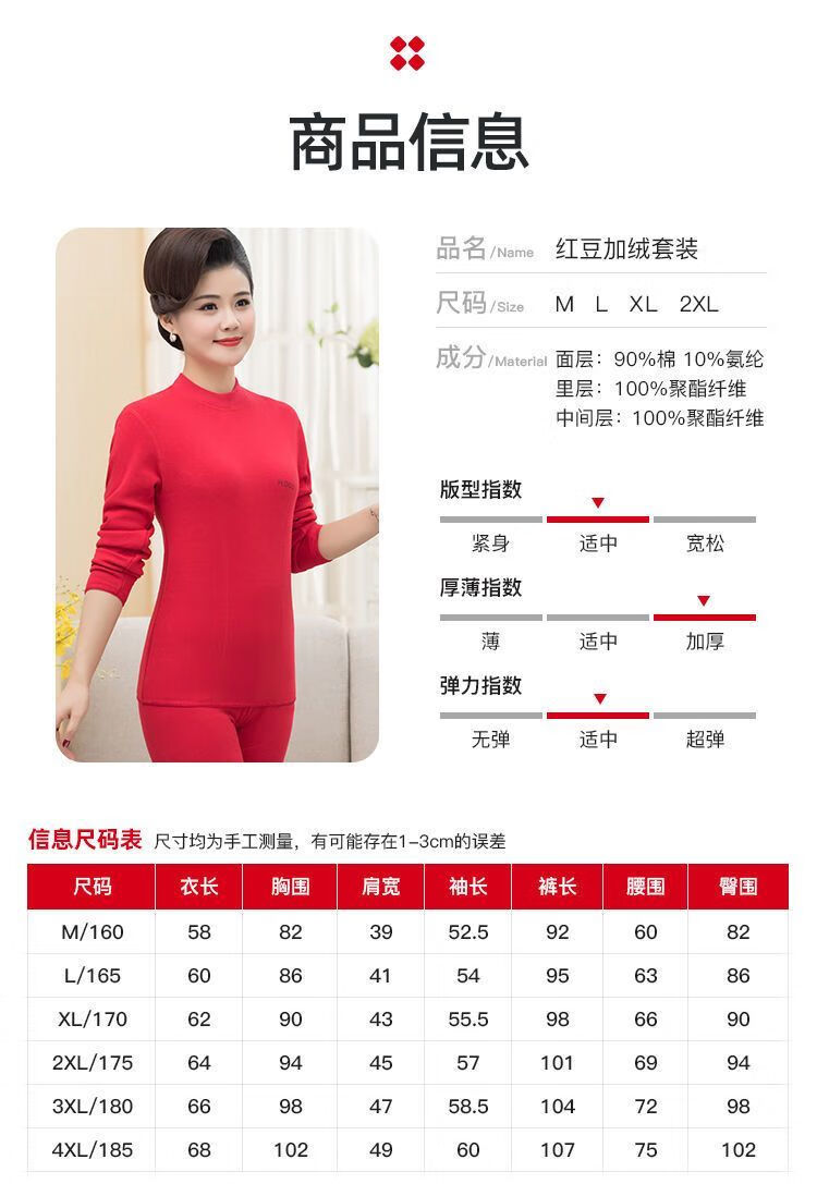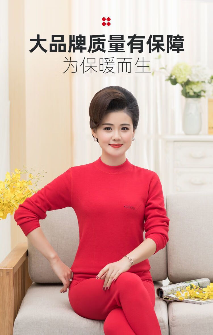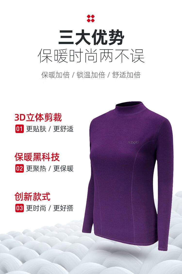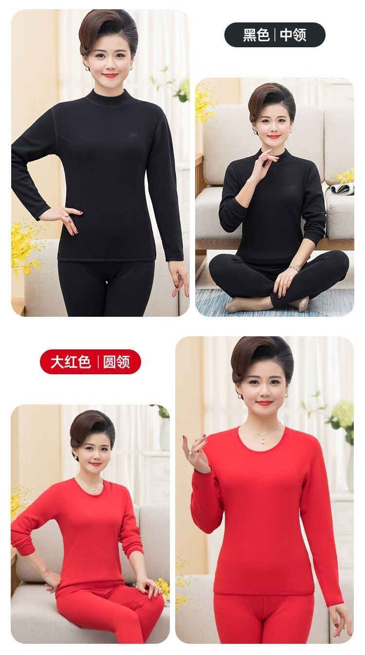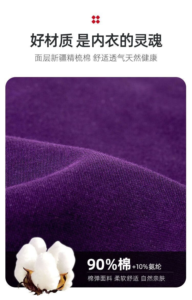 红豆加厚保暖内衣套装加绒抗寒女士中领圆领中老年棉毛衫秋衣秋裤冬季 中领-紫罗兰【加绒加厚 礼盒套装 XL /170 【115-130斤】