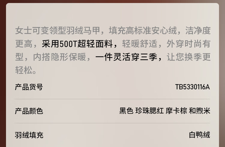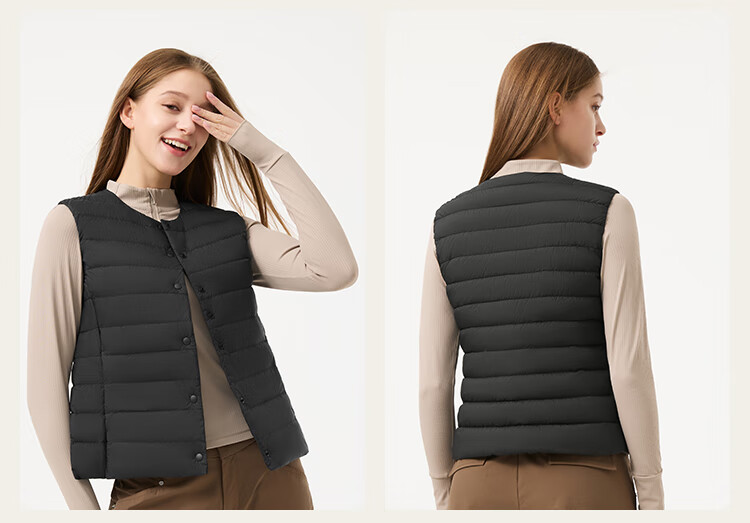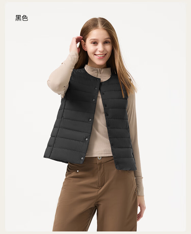 坦博尔羽绒马甲女新款2025年初秋短款轻薄百搭保暖马甲外套TB5330116A 黑色 XL (175)