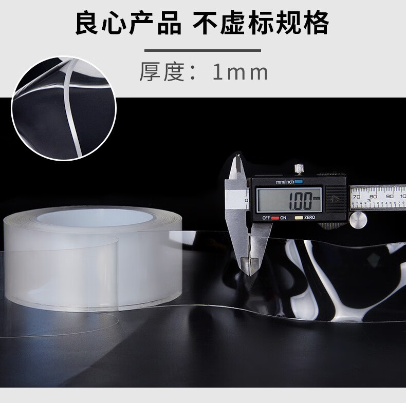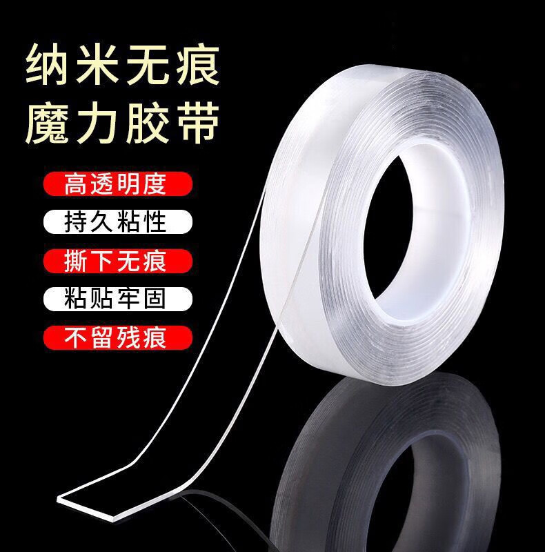格立特(gelite)纳米胶带透明双面胶强力高粘度无痕胶不伤墙面不留痕2cm*3m爆款粘胶贴胶条无痕贴片不留胶两面胶布