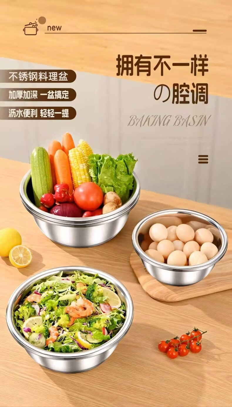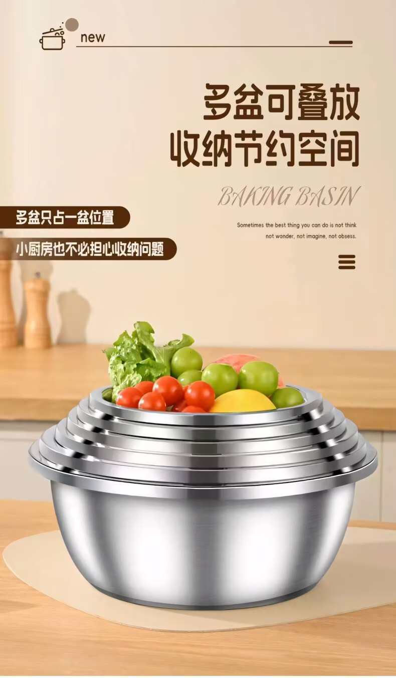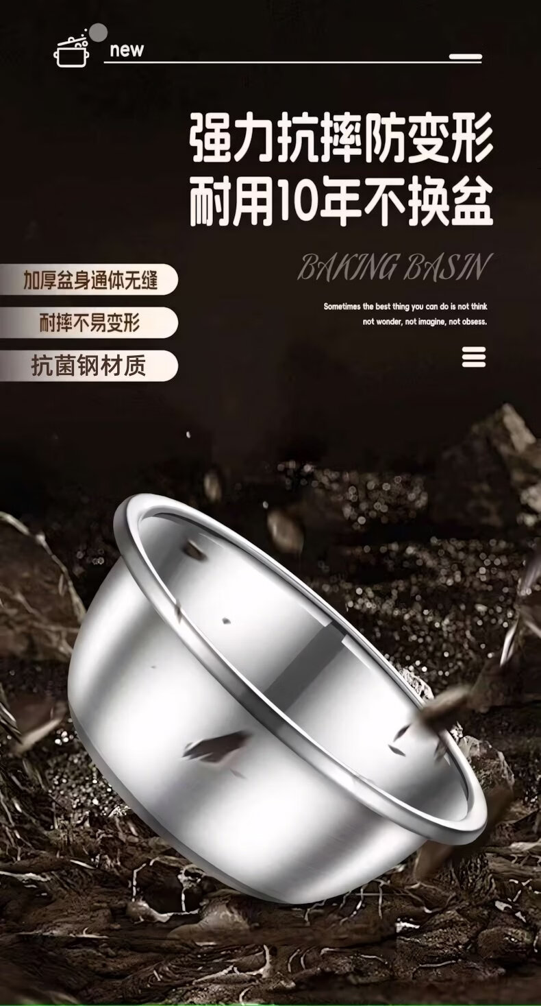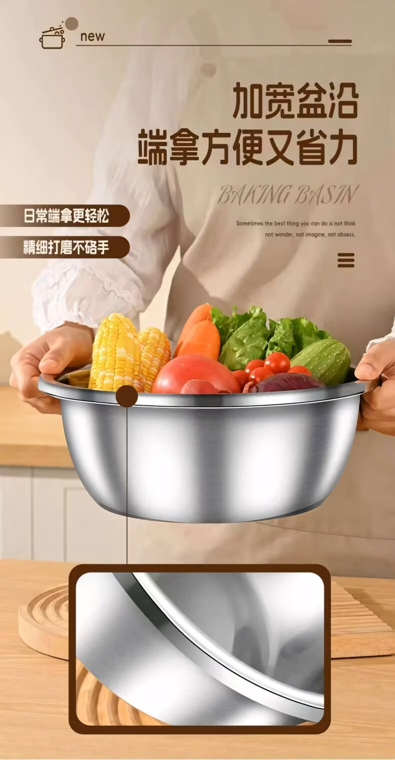 简漾食品级加厚不锈钢盆和面盆不锈钢沥水篮洗菜盆打蛋盆厨房家用盆子 20CM【实盆】耐摔不变形 一盆用十年