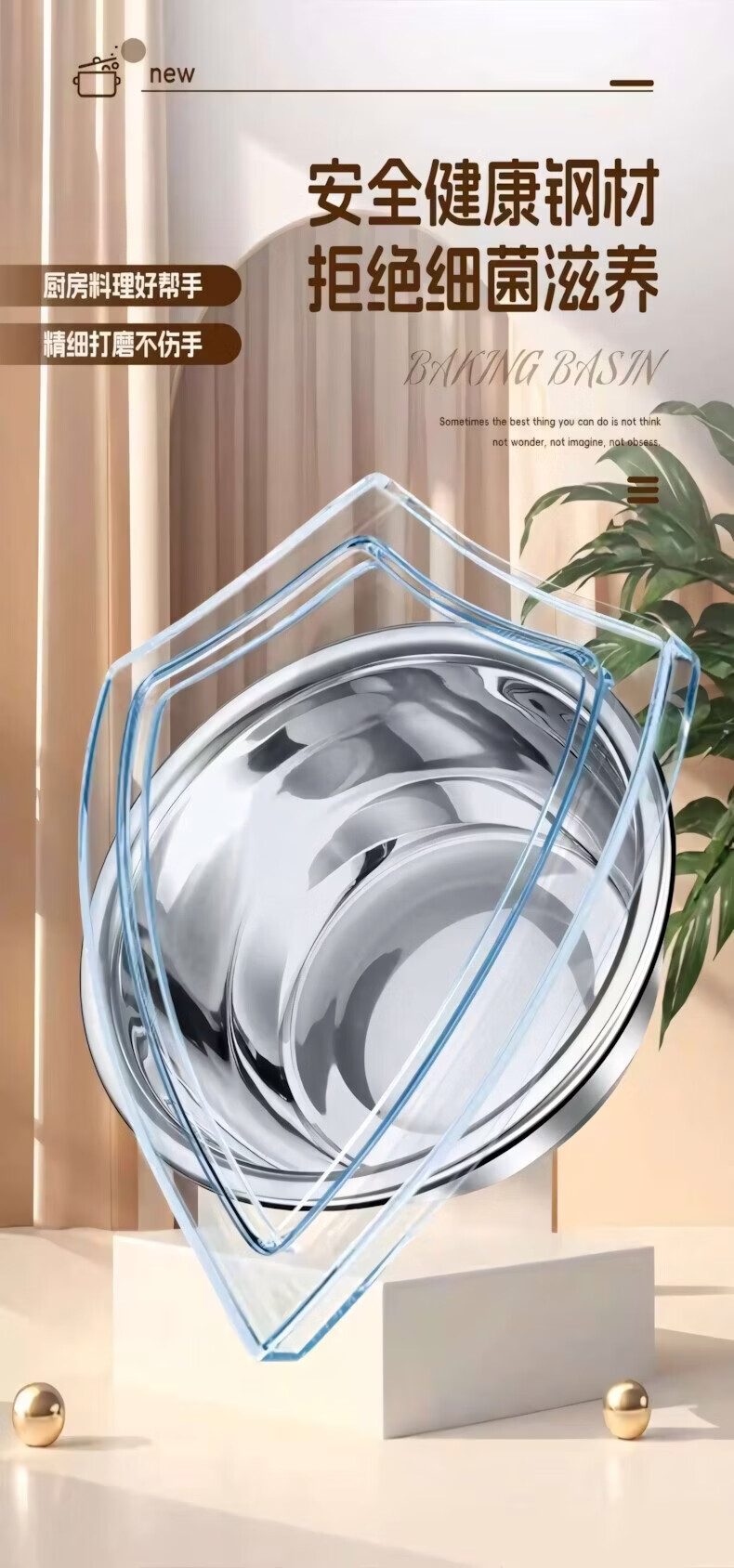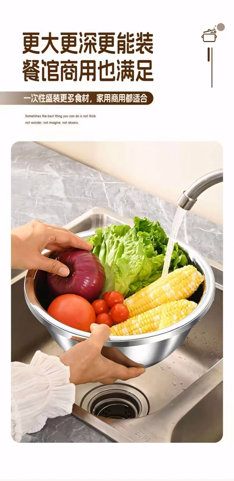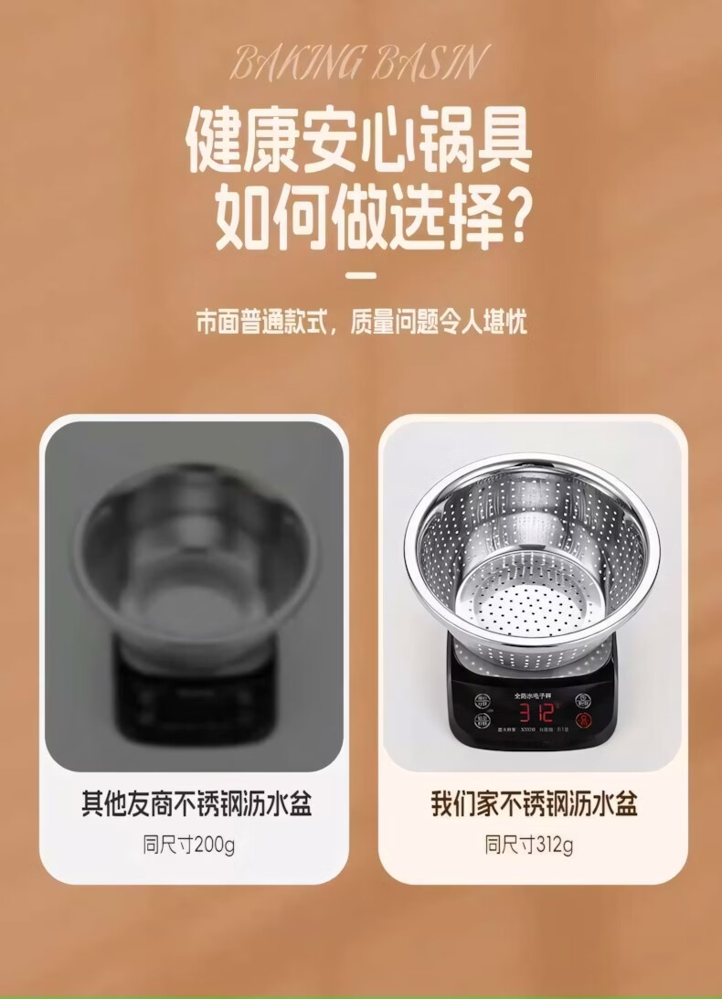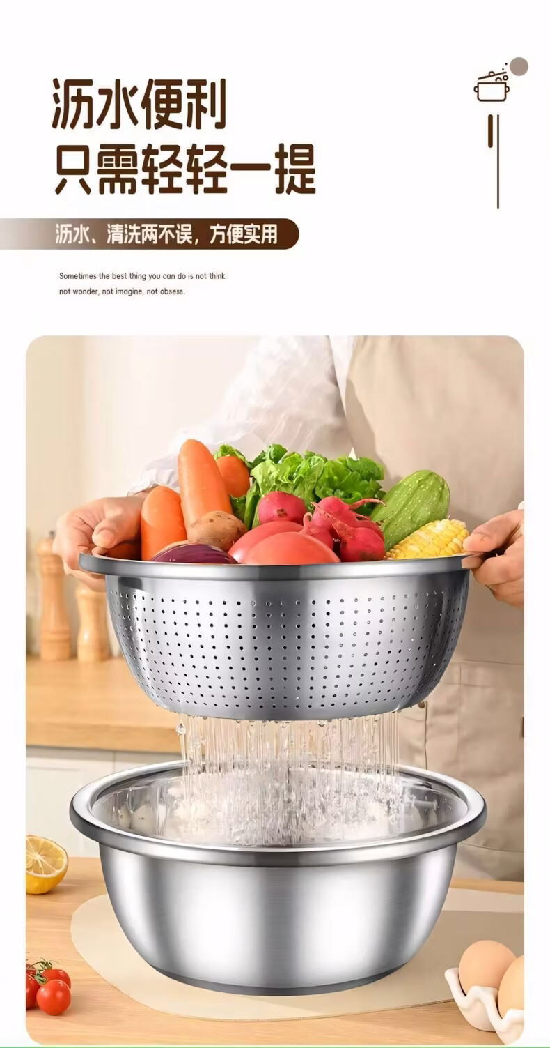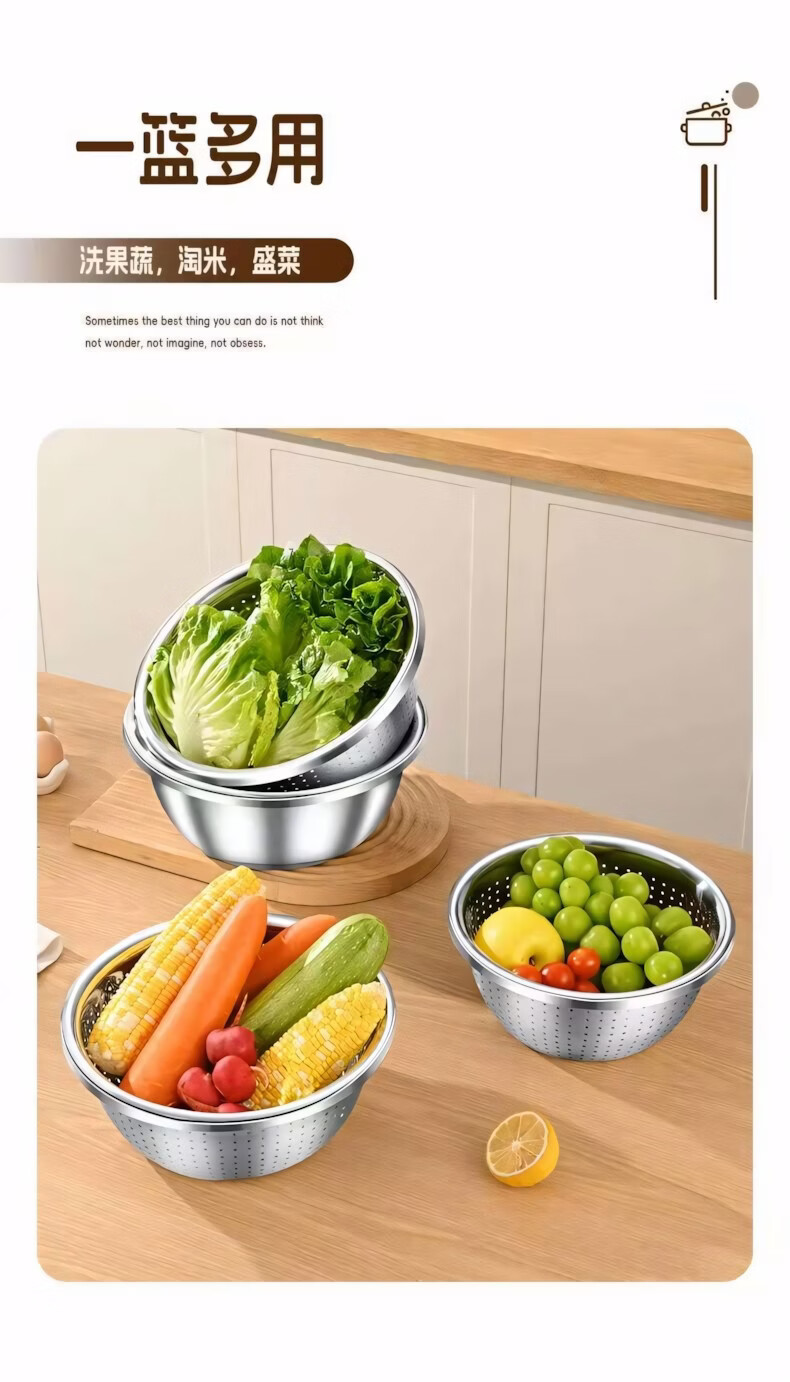 简漾食品级加厚不锈钢盆和面盆不锈钢沥水篮洗菜盆打蛋盆厨房家用盆子 20CM【实盆】耐摔不变形 一盆用十年