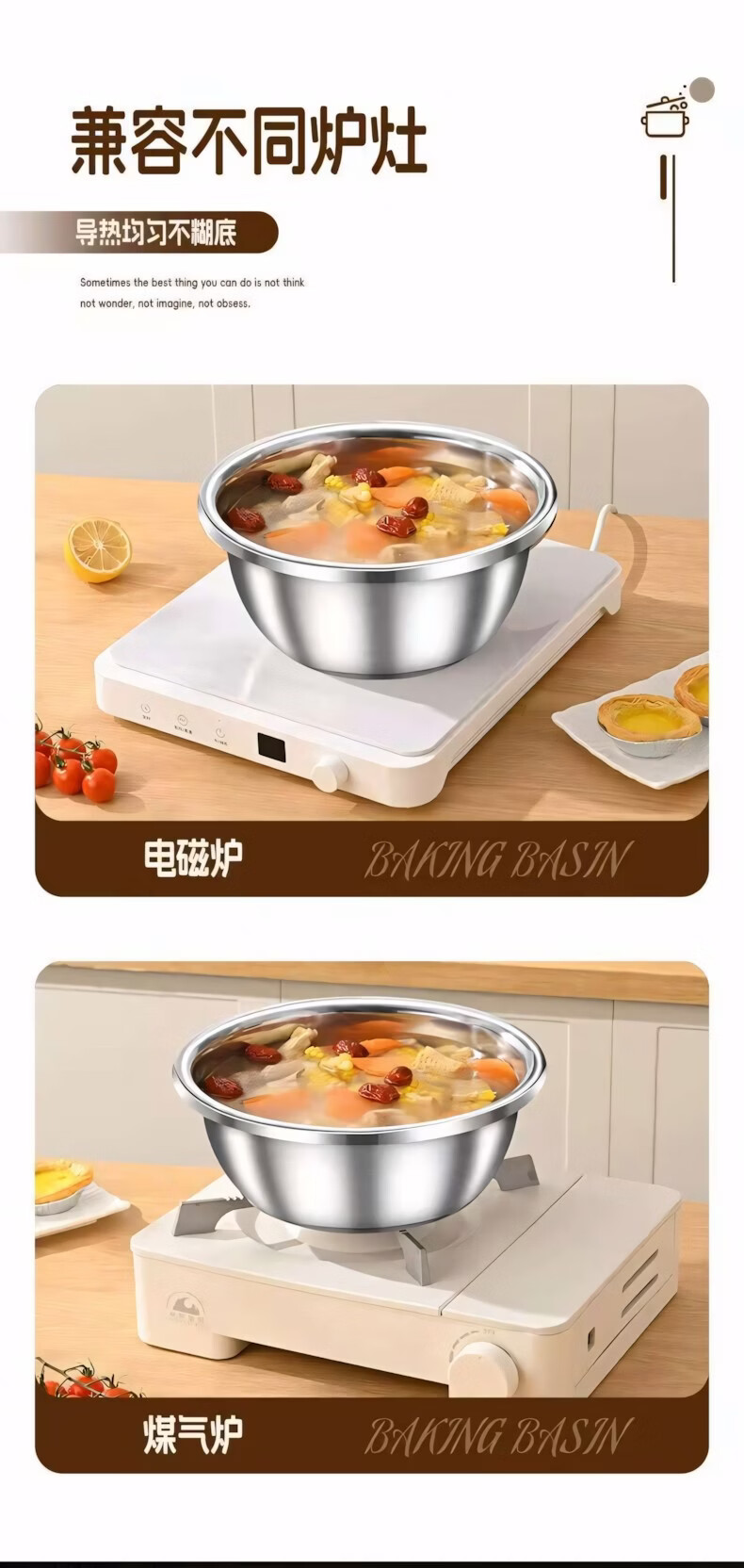 溥畔鸡蛋羹专用蒸蛋碗不锈钢蒸菜带盖炖盅耐高温婴儿蒸碗 中号+大号2个装带盖