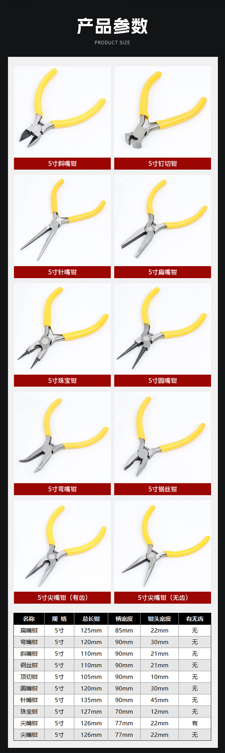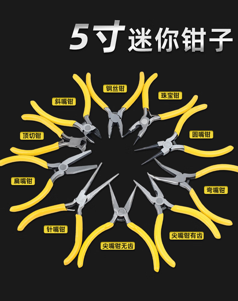 固万基(GUWANJI)尖嘴钳迷你钳子5寸电工剥线老虎钳手工DIY多功能钢丝钳弯嘴珠宝钳 5寸迷你扁嘴钳