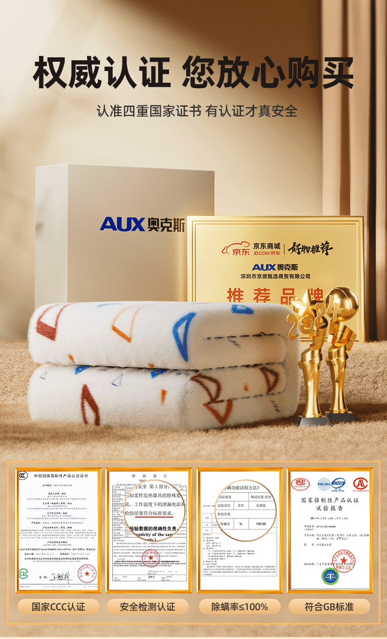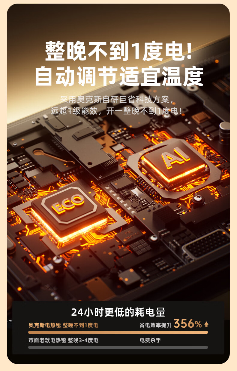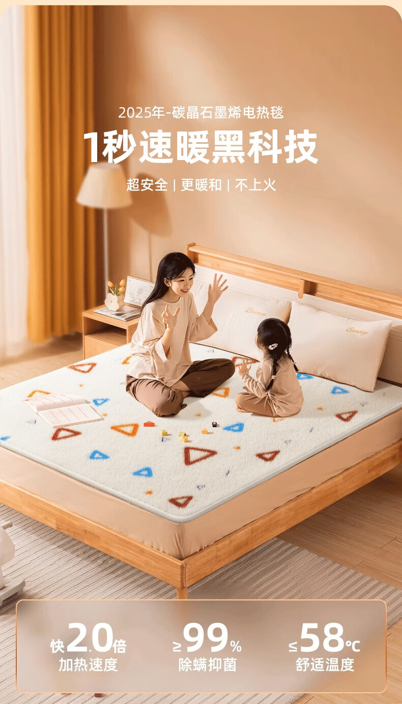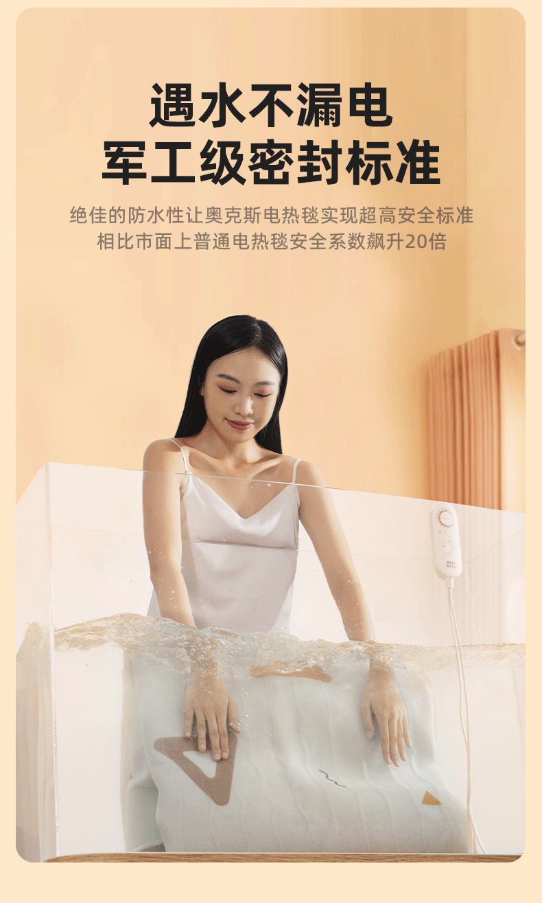 奥克斯【高温断电】电热毯单双人电褥子1.5x1.8x2米双温双控自动断电 加厚暖绒三角款【2.0*1.8m】双人双控恒温定时除螨 恒温整晚丨暖透全身丨除螨抑菌