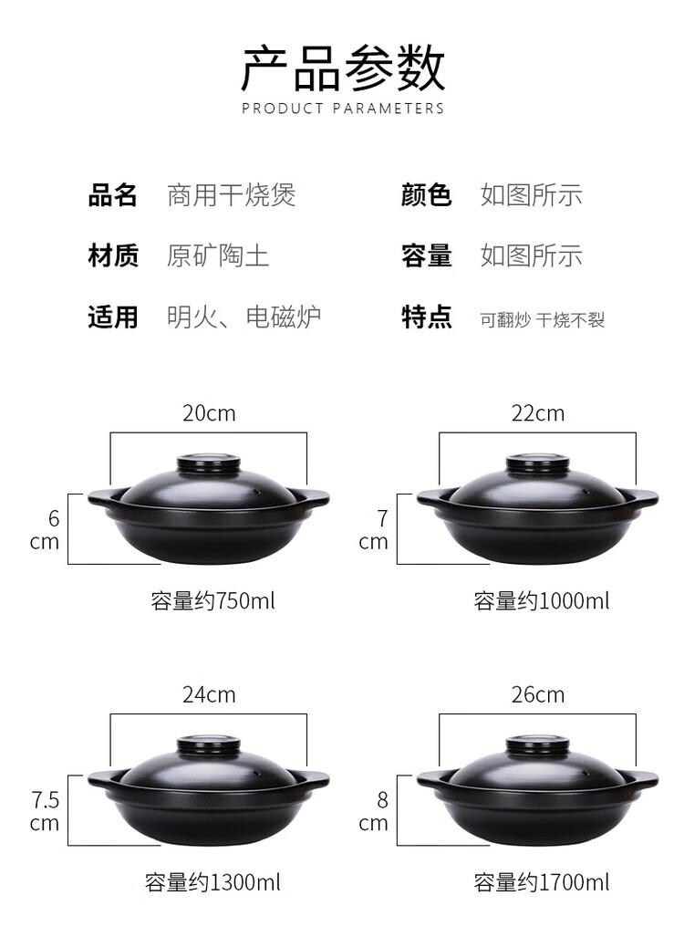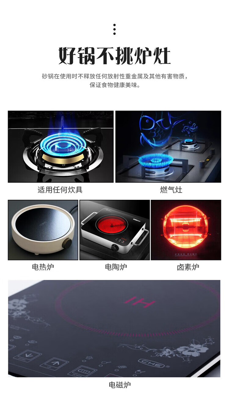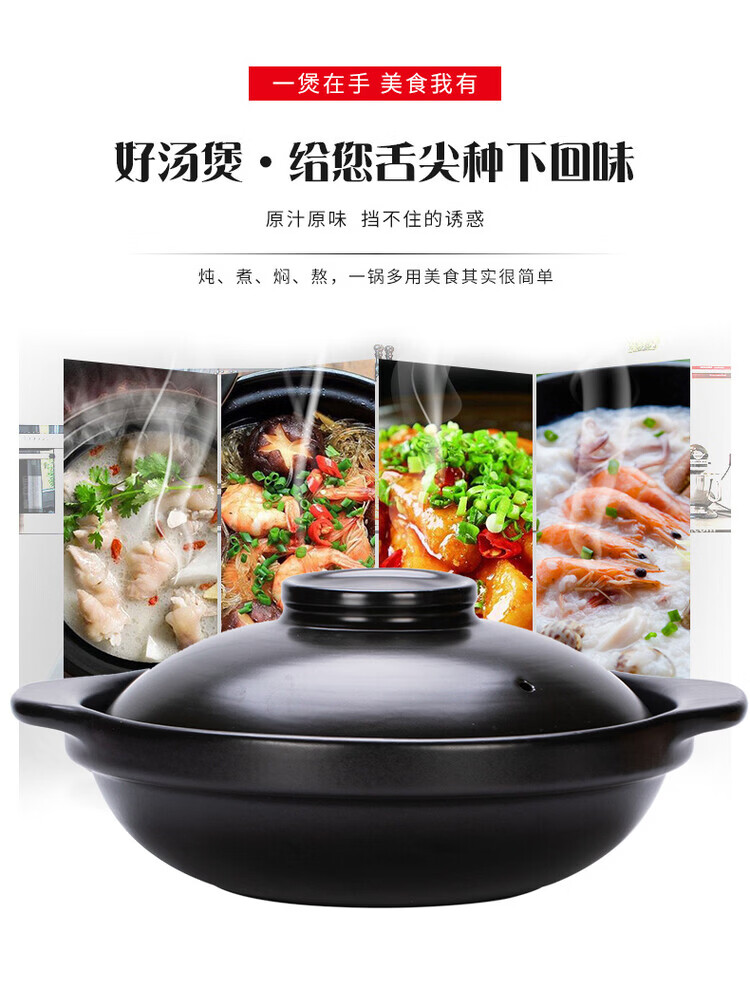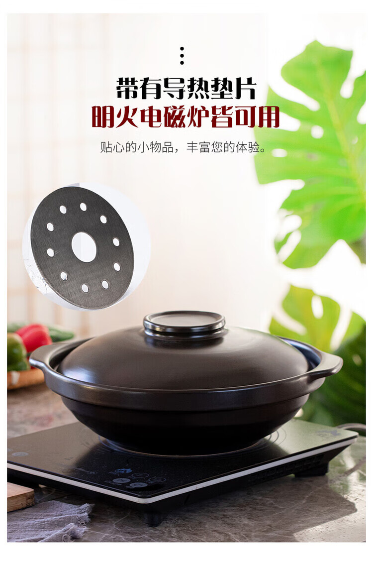 简漾砂锅电磁炉专用商用火锅电陶炉煤燃气灶两用耐高温陶瓷汤煲小沙锅 电磁炉明火两用【有盖】6-7人份 3300ml