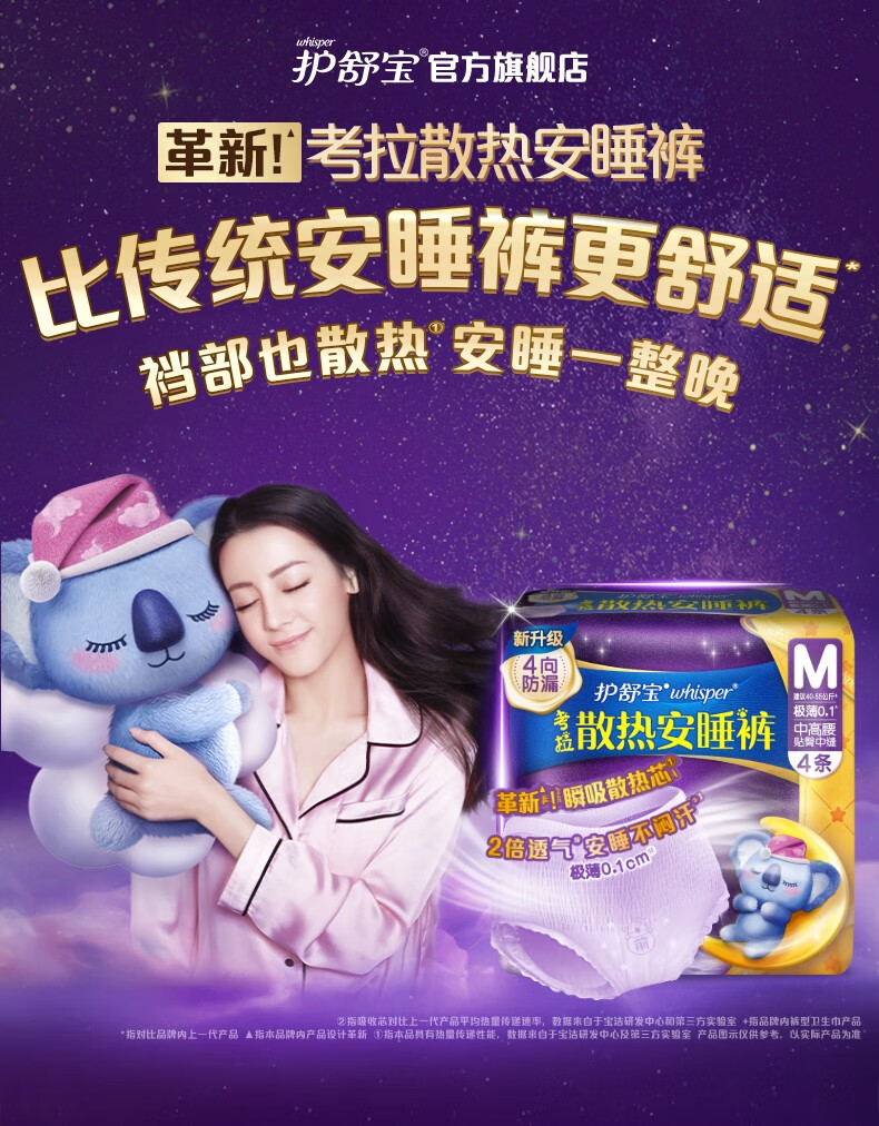 护舒宝考拉散热安睡裤M大码4条裤型卫生巾安心裤姨妈巾夜安裤自营密封