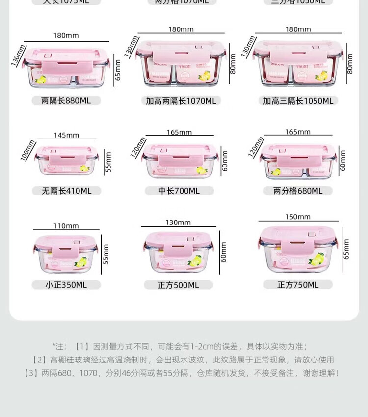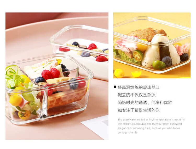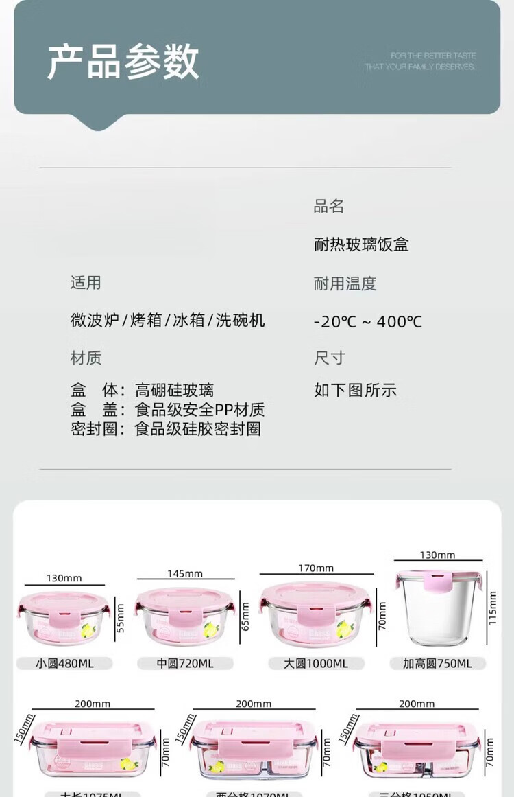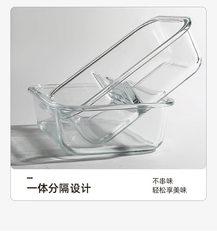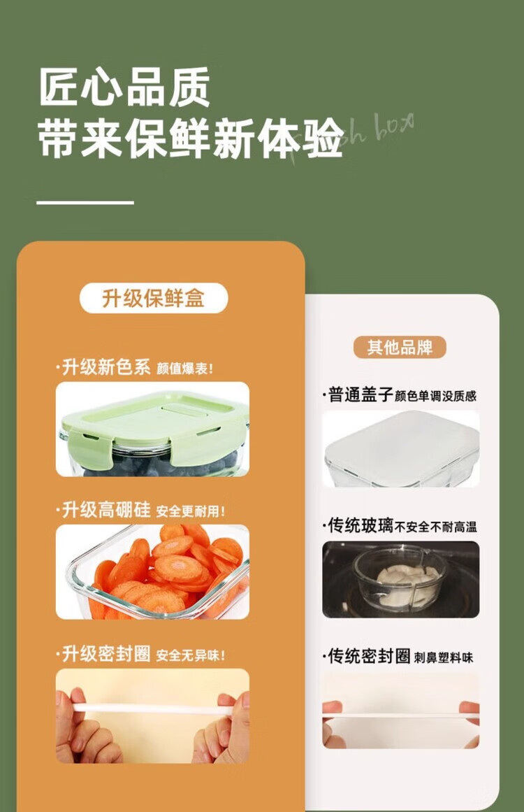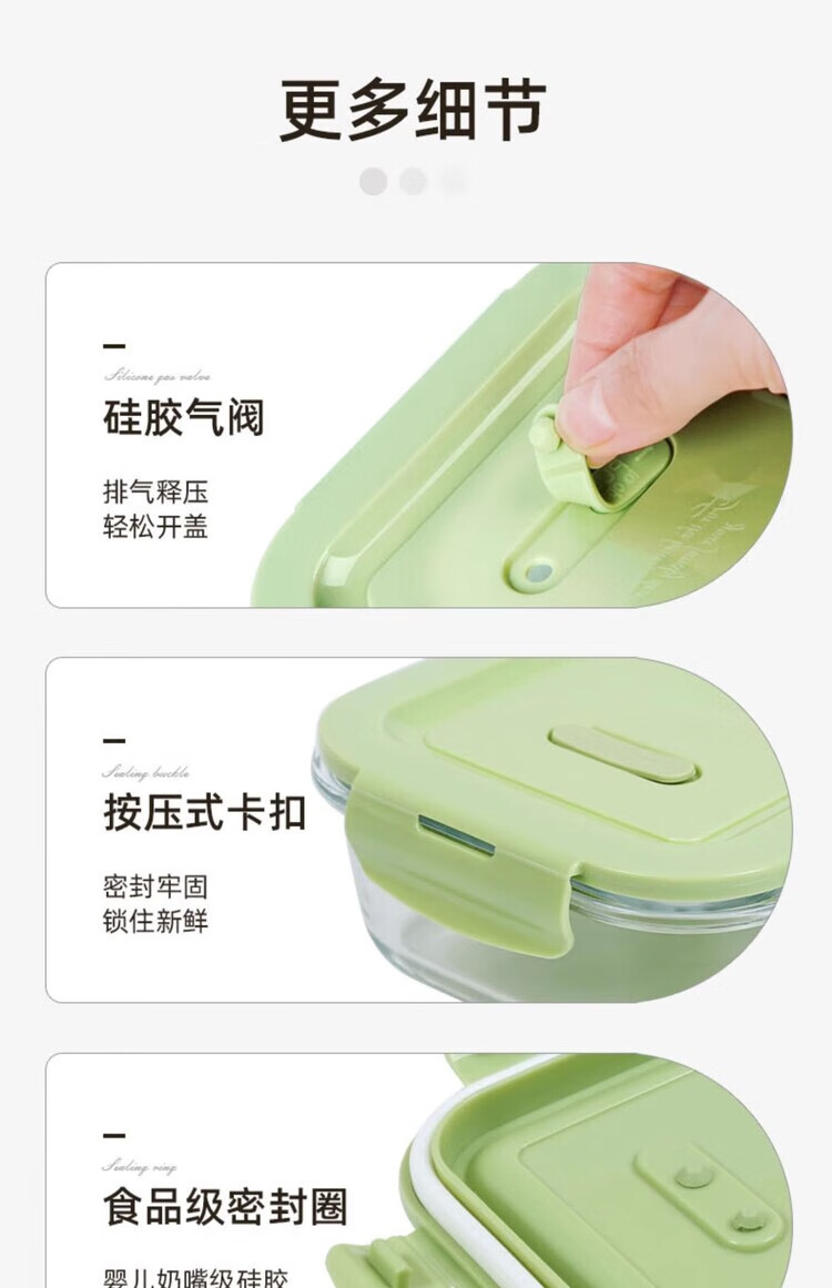 AILUKI日本玻璃饭盒可微波炉加热专用带饭装汤餐碗保鲜分隔型便当带盖 北欧绿-大长三隔1050ml+圆汤碗480ml+包+餐具